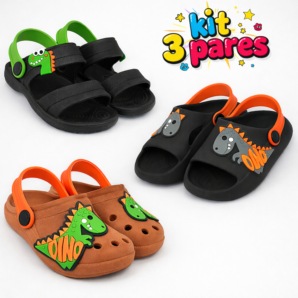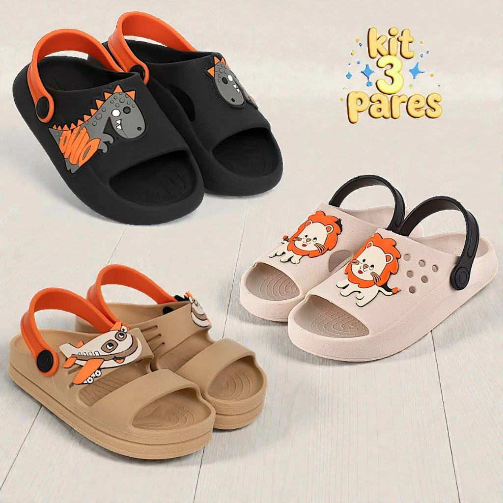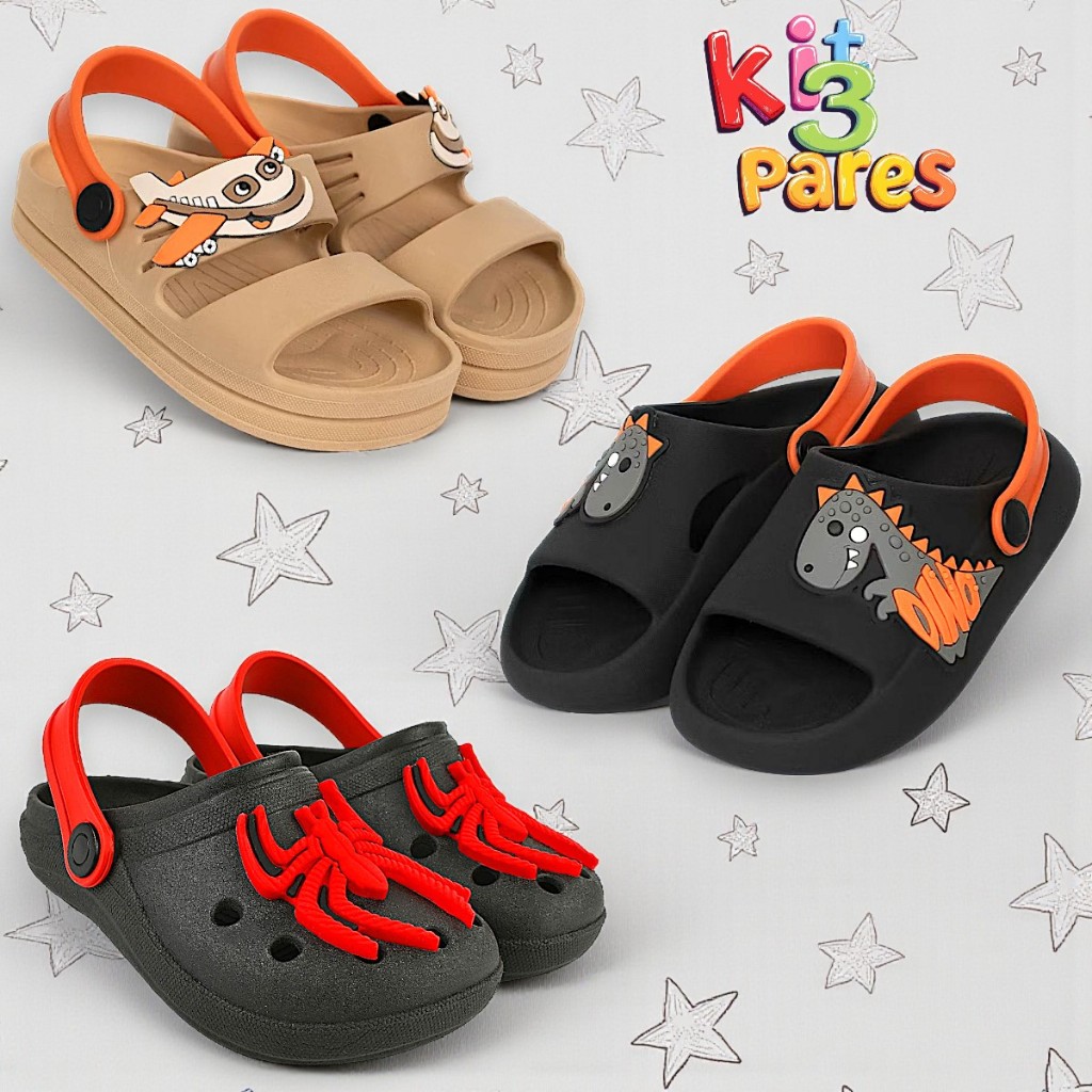 Kit 3 Pares Sandália Babuche Infantil Menino Papete Leve Anatômica Confortável