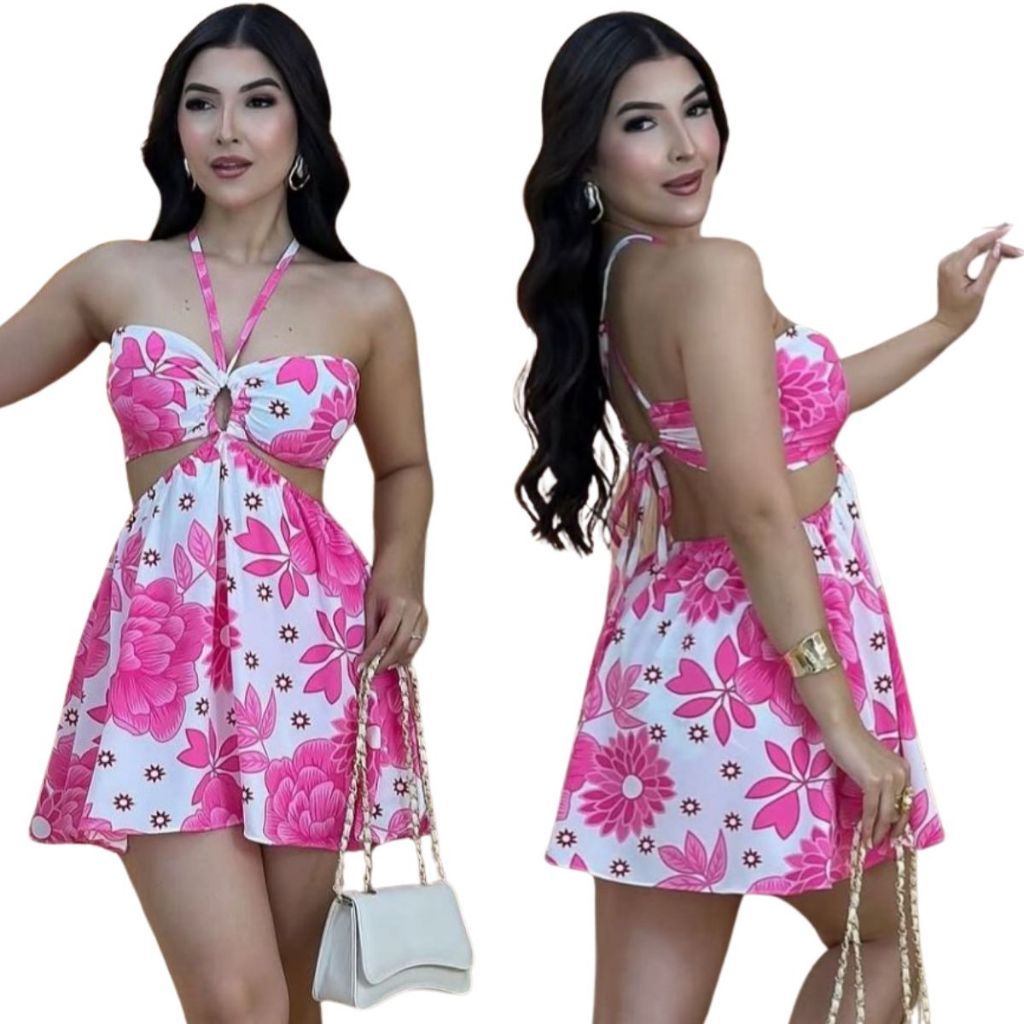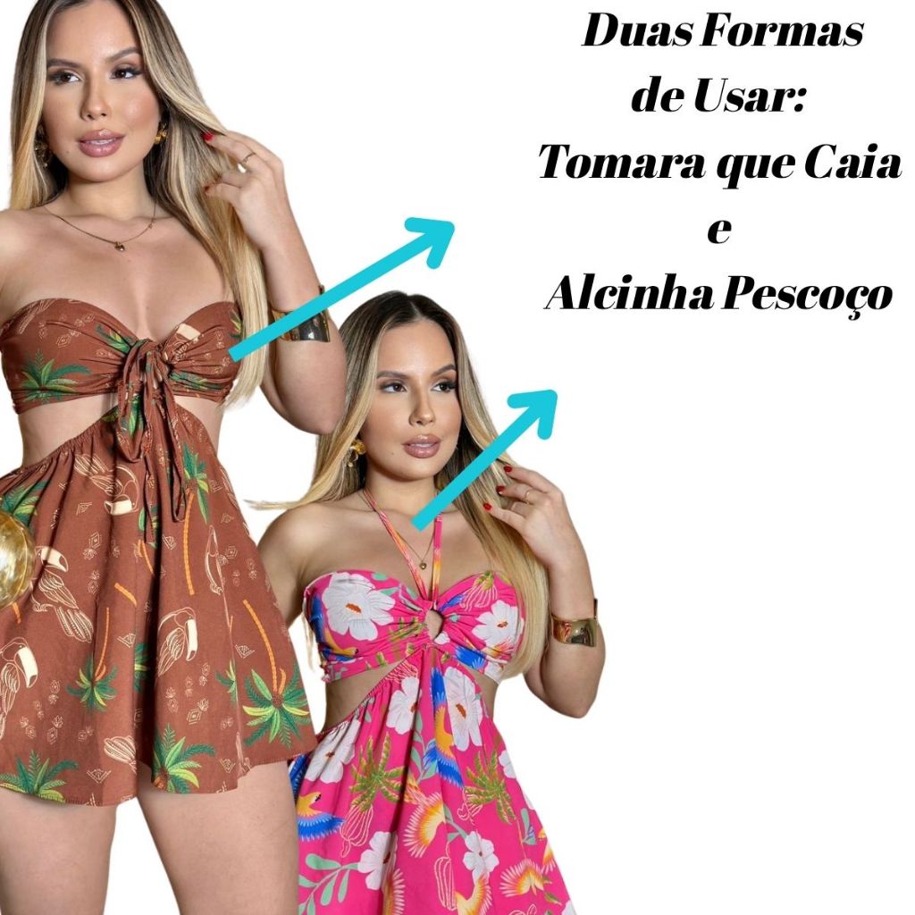 Macaquinho Sofia short saia com amarração no pescoço estampas exclusivas lançamento