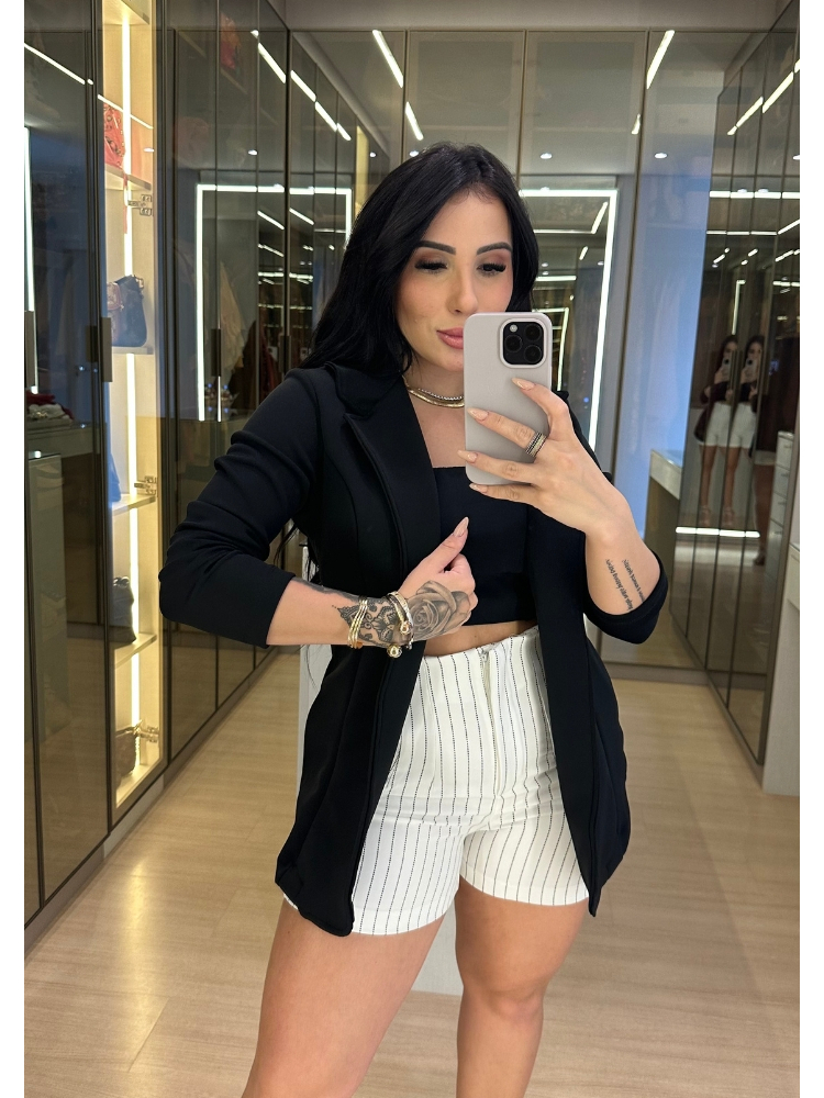 Blazer Feminino Alongado de Neoprene - Elegância e Conforto em Alfaiataria Moderna