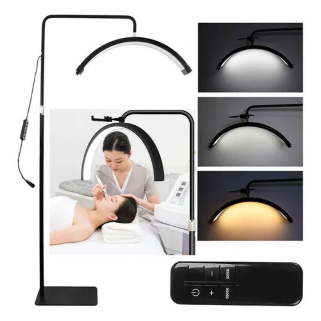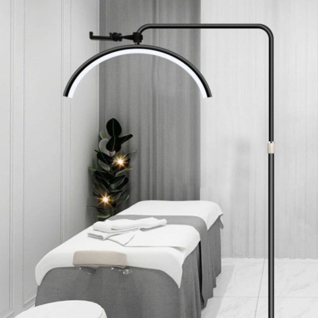 Luminária LED Arco Meia Lua Com Suporte Celular Base de Chão Profissional Multifuncional