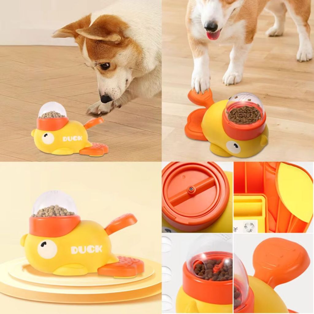 Dispensador Interativo De Comida Para Pets Em Forma De Pato Amarelo, Tigela Lenta para Pets