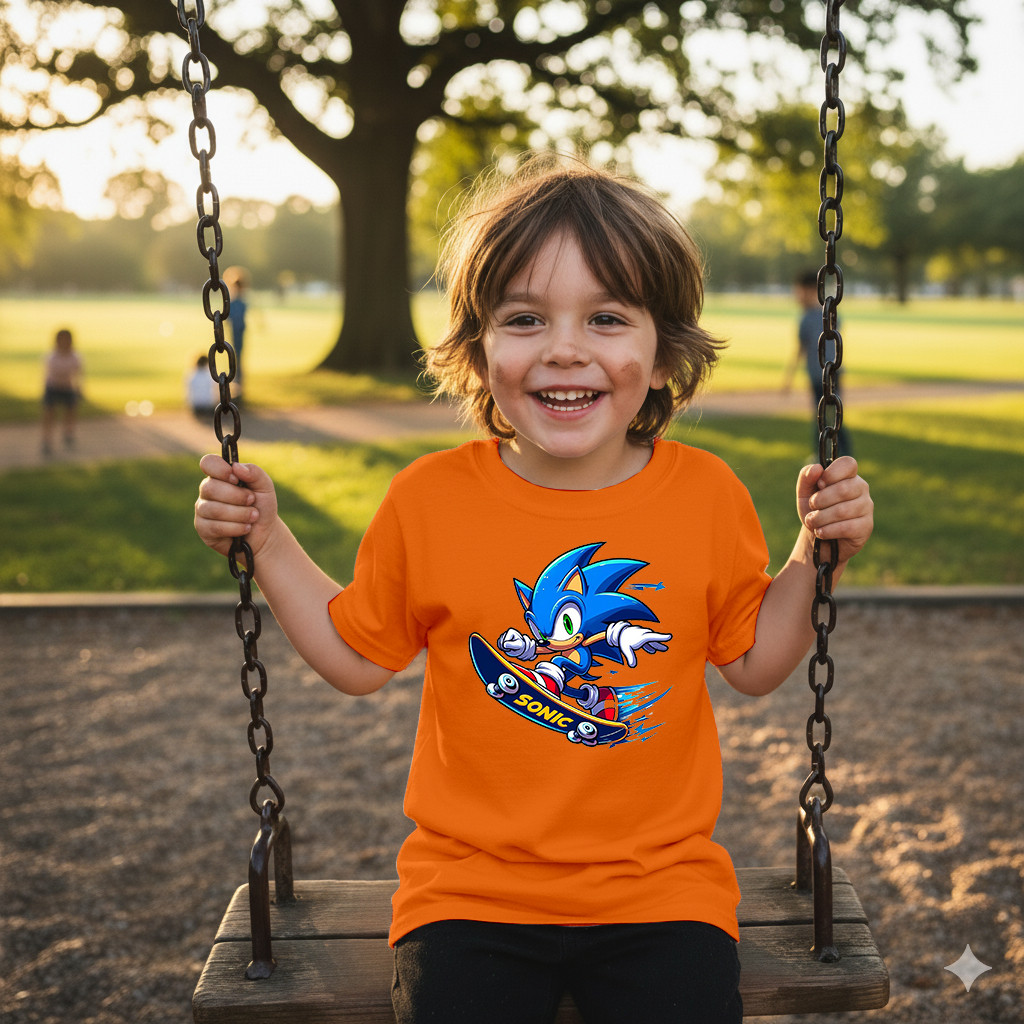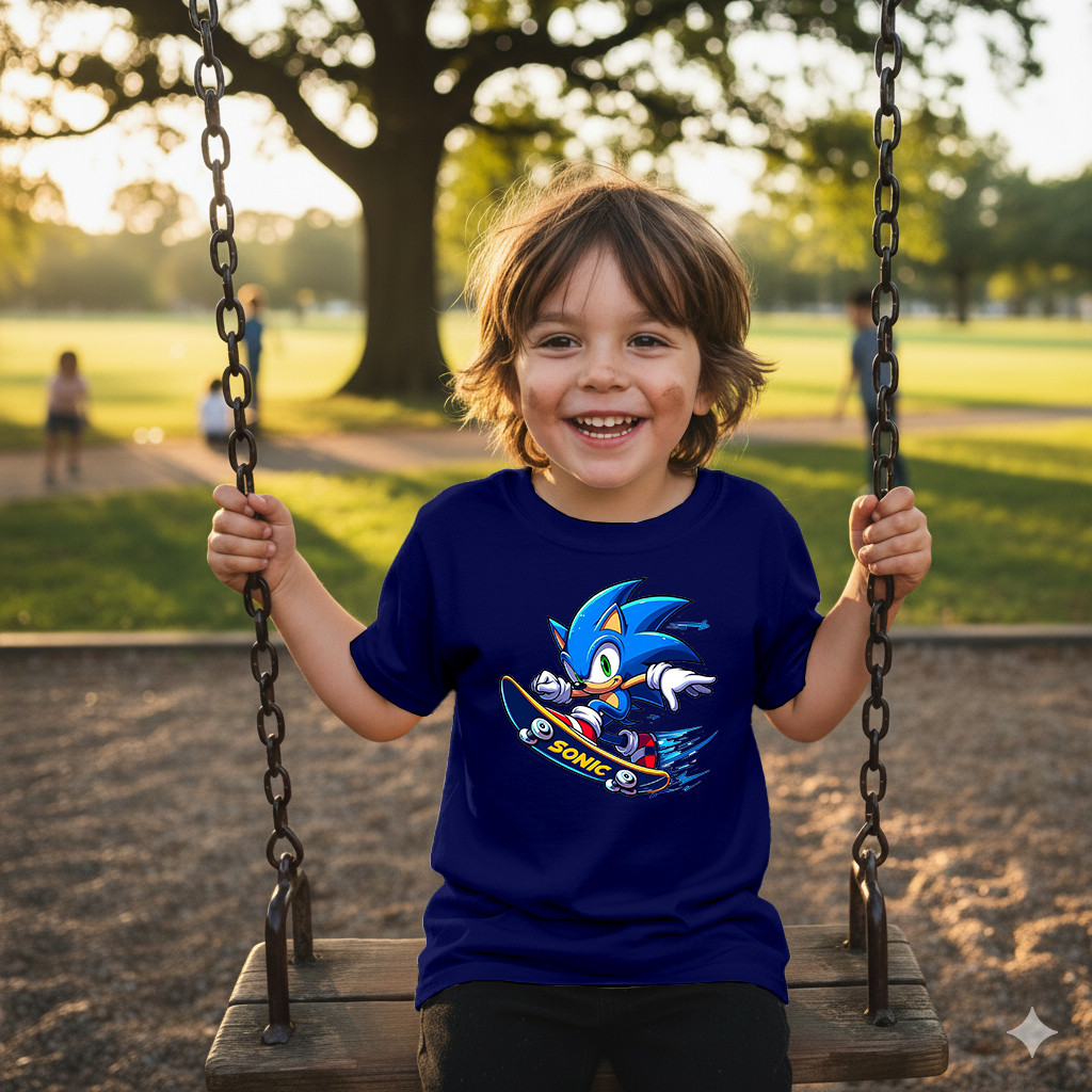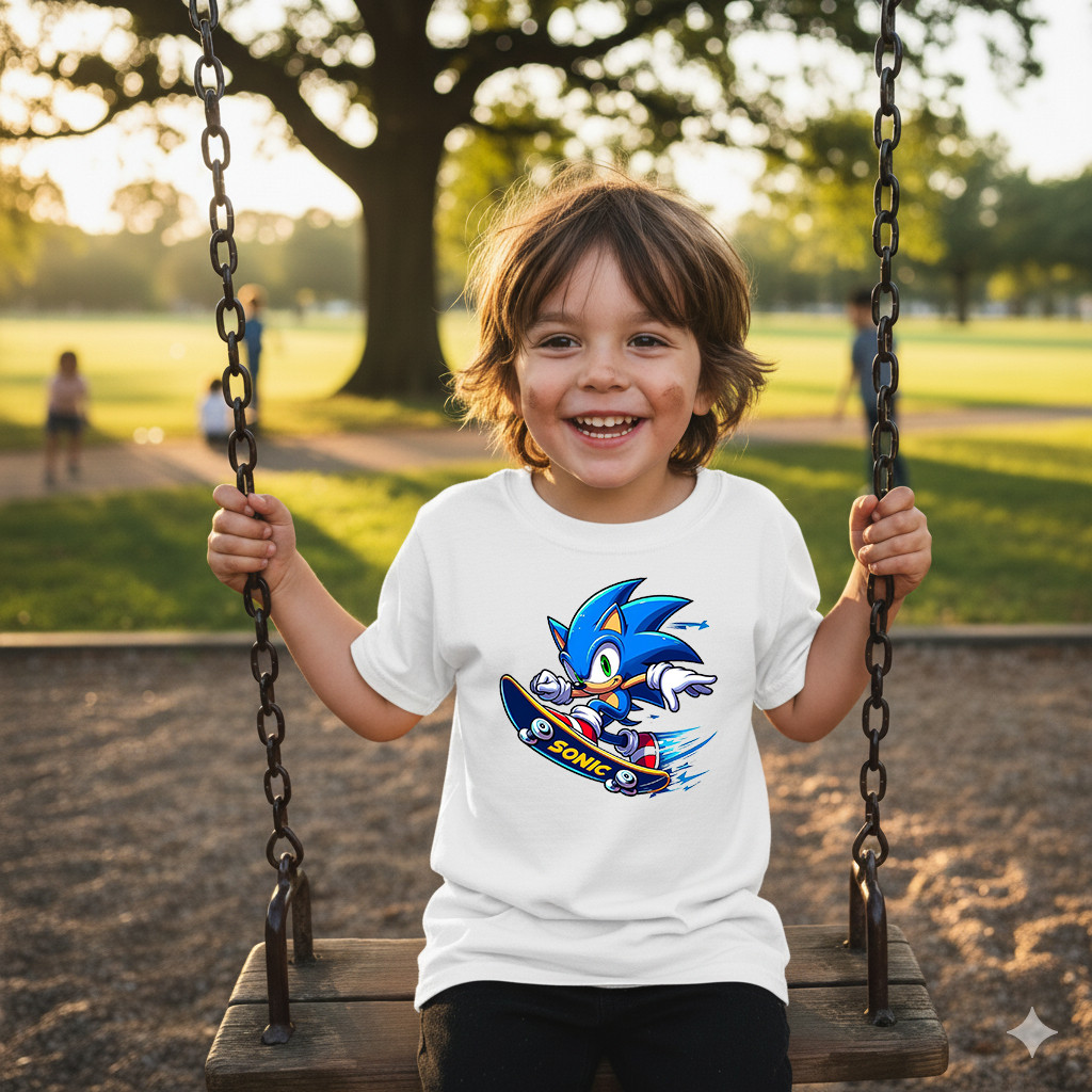 Camisa Sonic Skate Camiseta Casual Infantil 100% Algodão