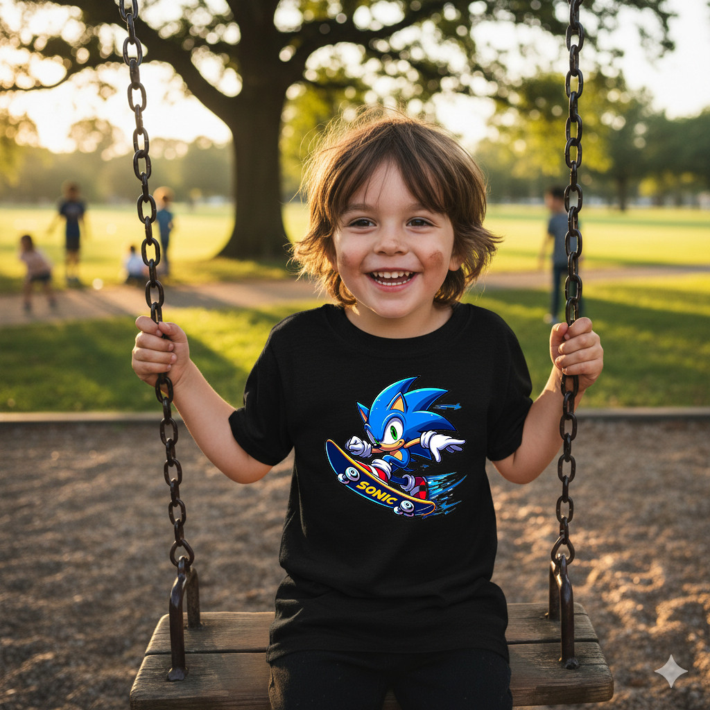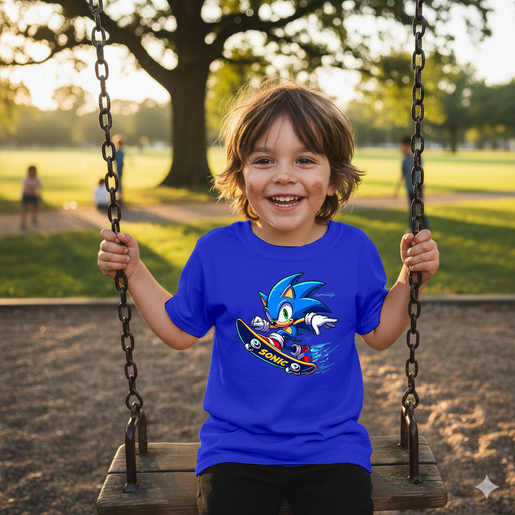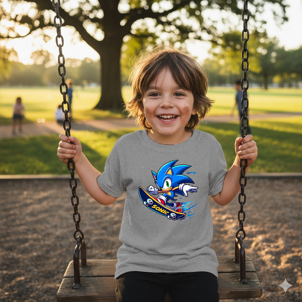 Camisa Sonic Skate Camiseta Casual Infantil 100% Algodão