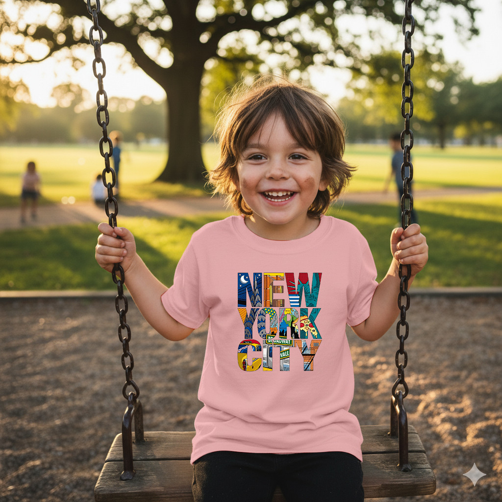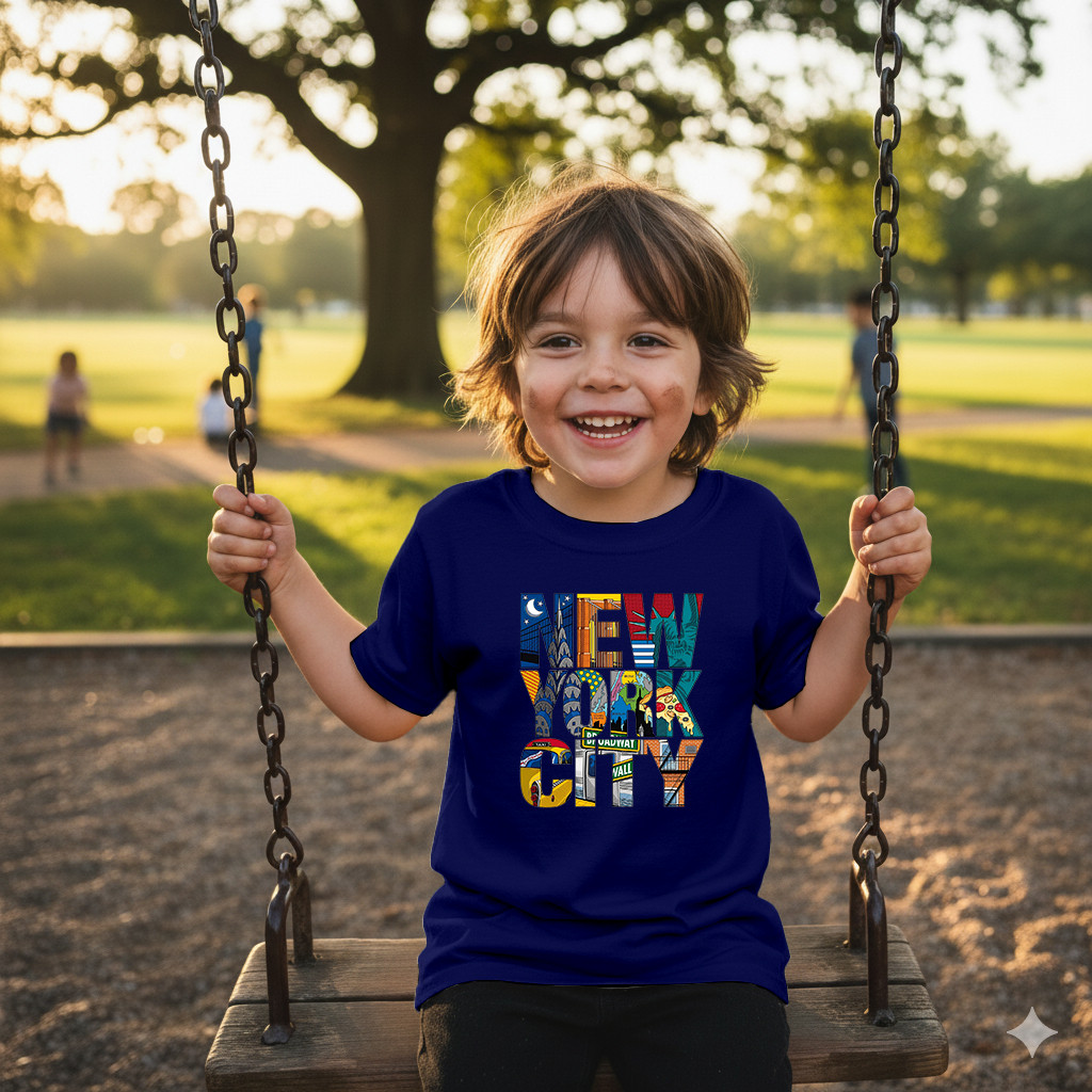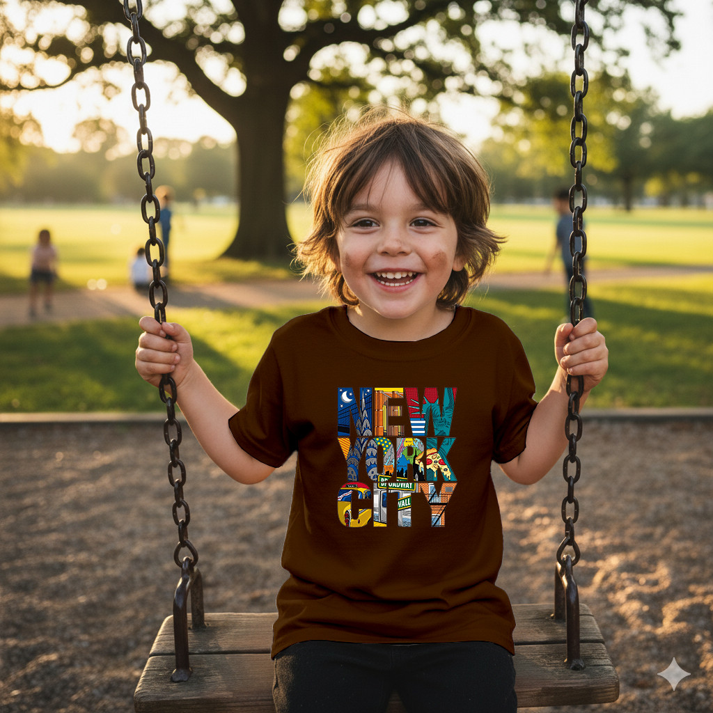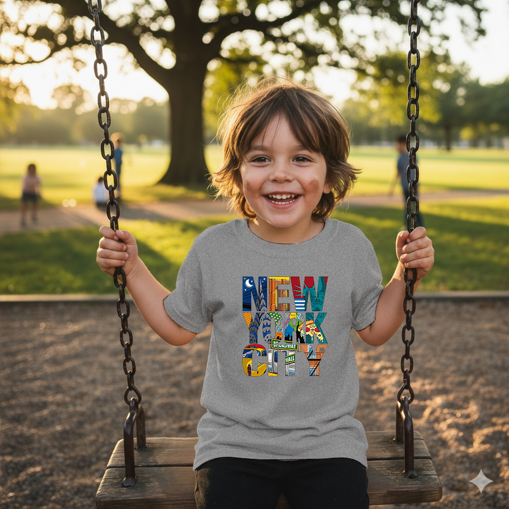 Camiseta Infantil Estampa New York City Desenho Camisa 100% Algodão