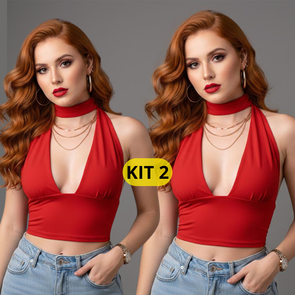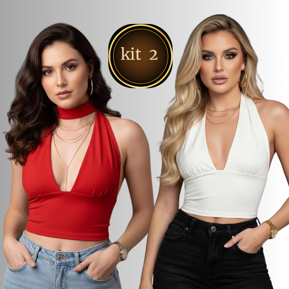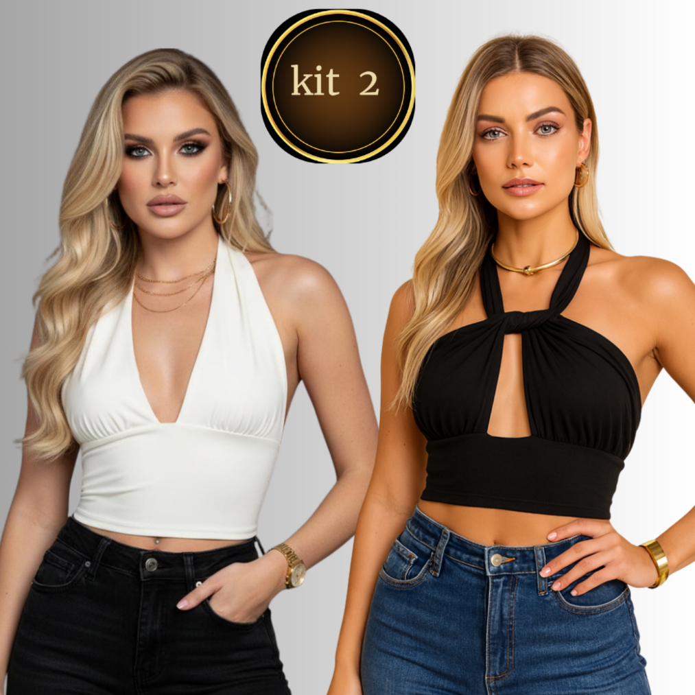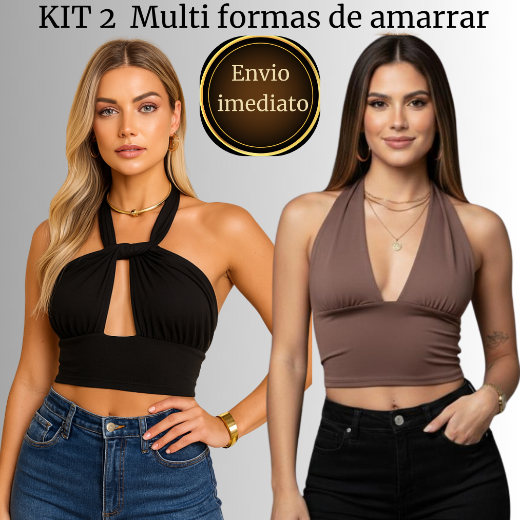KIT 2 Top Cropped Frente Única com Amarração Multi Formas de usar Decote Moda Gringa, Suplex Premium, Sexy e Elegante 01