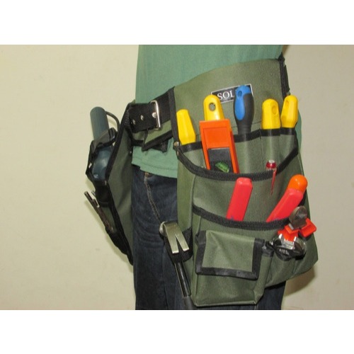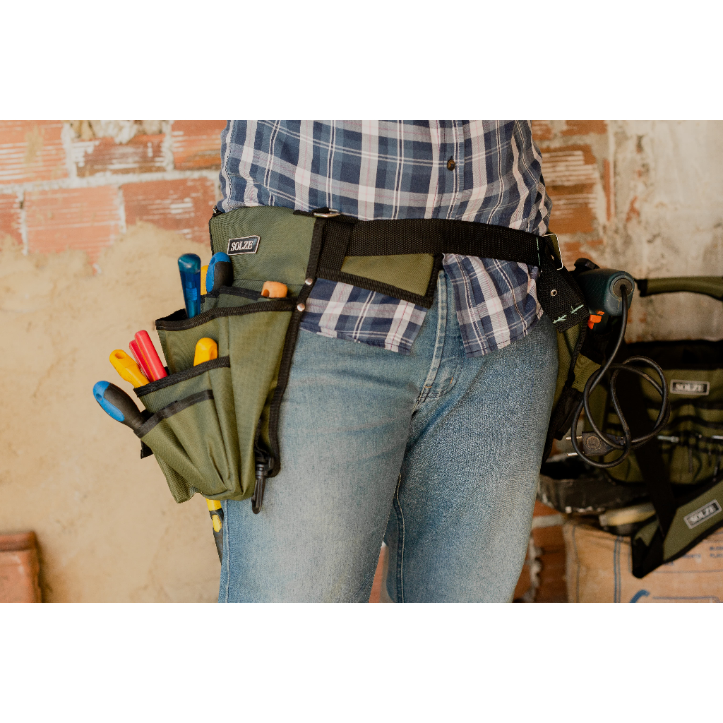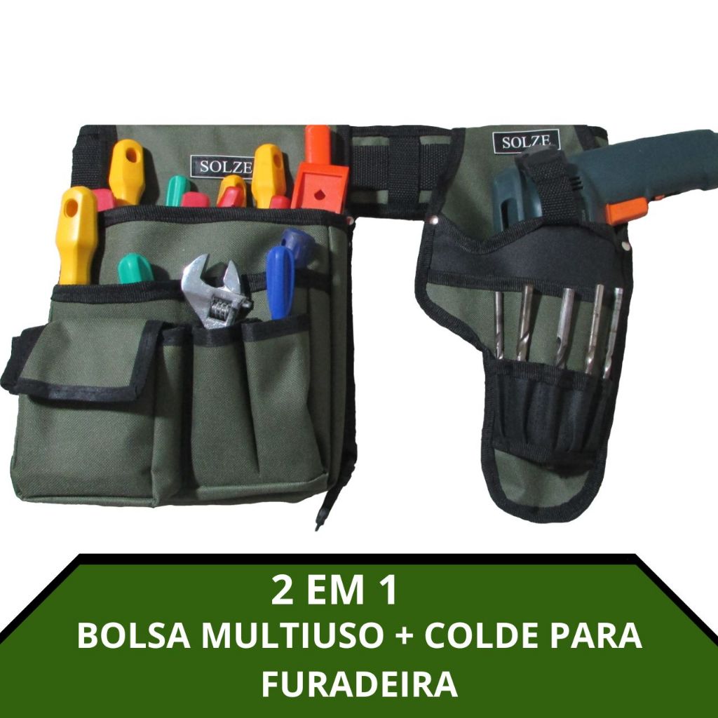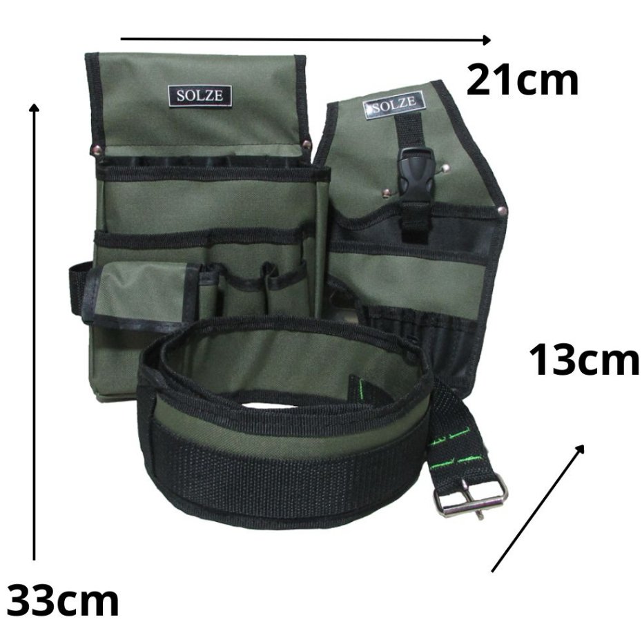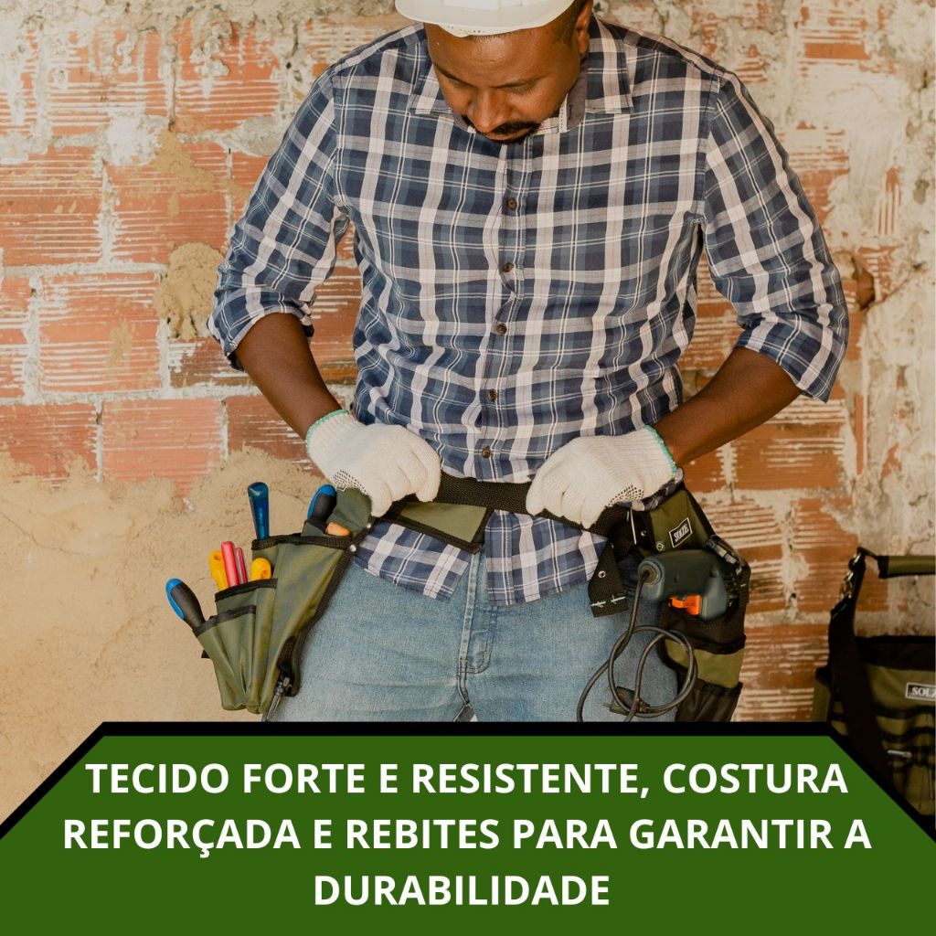 Cinto Duplo Solze Verde Militar para ferramentas. Bolsa Multiuso + Coldre para parafusadeira + cinto acolchoado e fivela