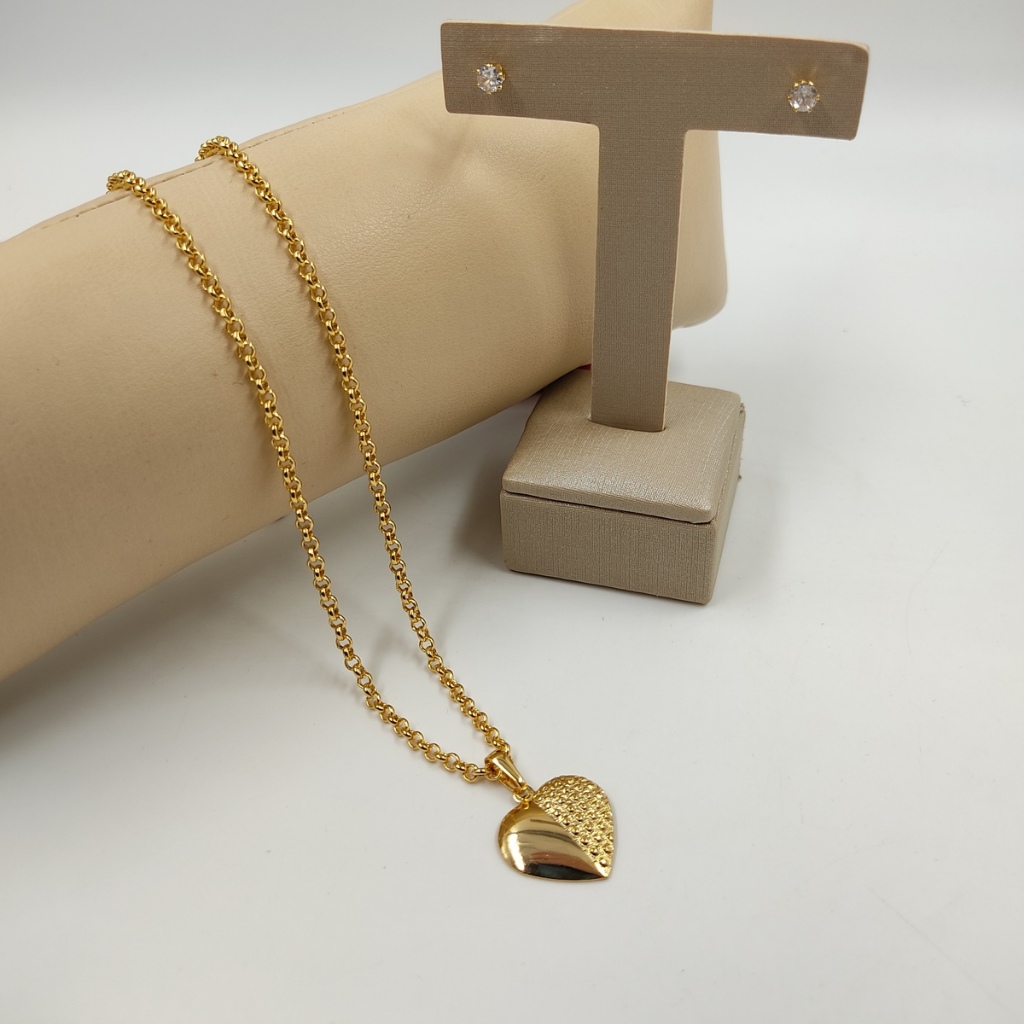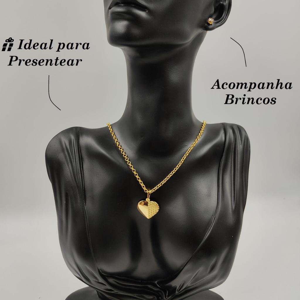 Colar Cordão Feminino 3mm Elo Português Moeda Antiga + Pingente + Par de Brincos