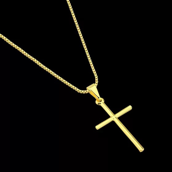 Corrente Veneziana mais Pingente Cruz Palito Masculino em Moeda Antiga