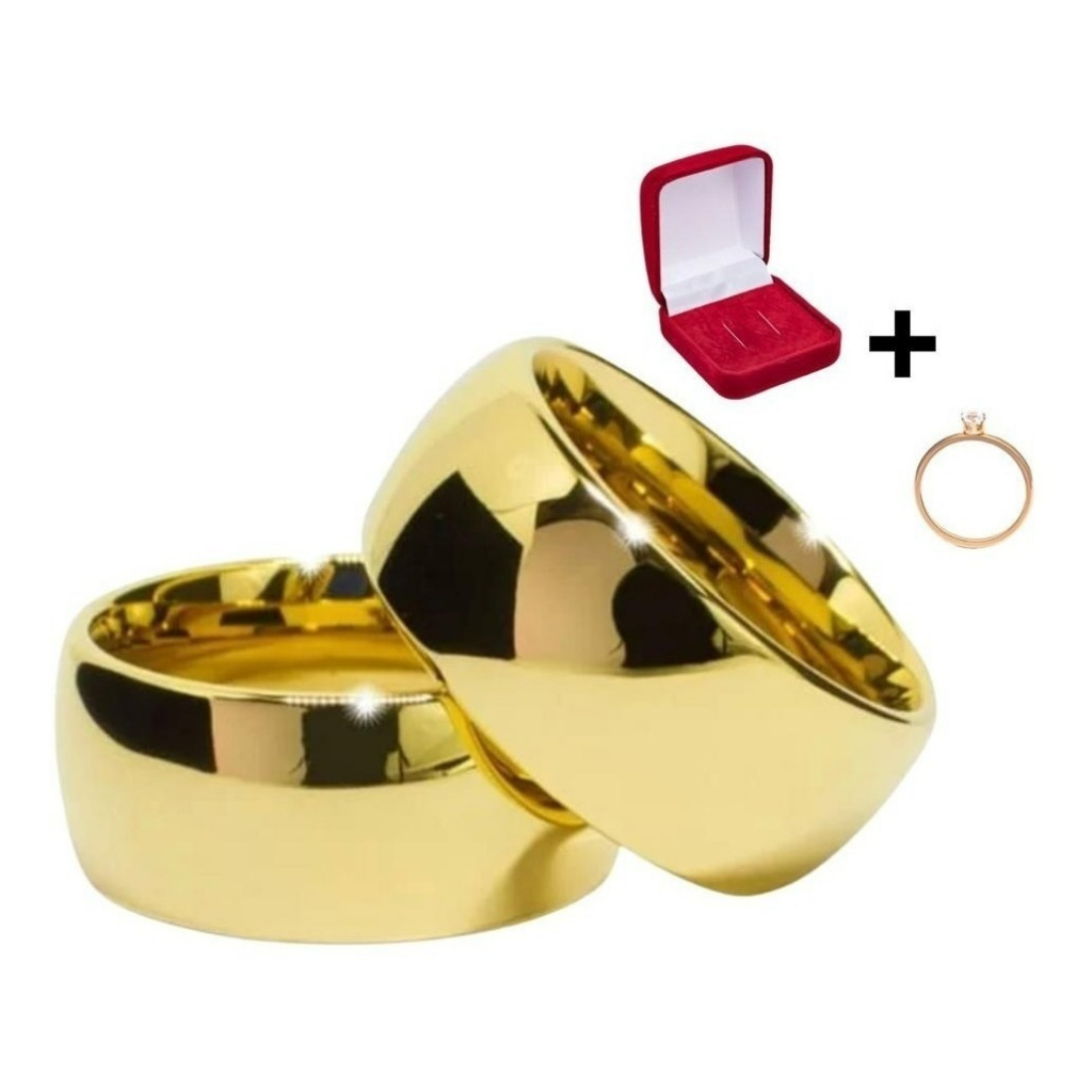 Par De Alianças Tungstênio 8mm Folheada Banhada Ouro 18k