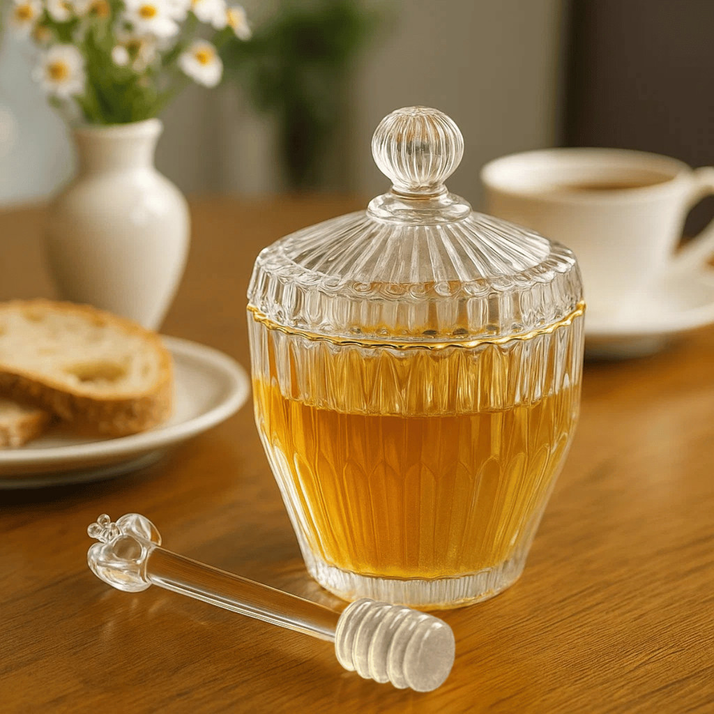 Meleira com Pegador Fio de Ouro - WOLFF / Imperatriz / Pote Mel / Cristal Decorado / Mesa Luxo