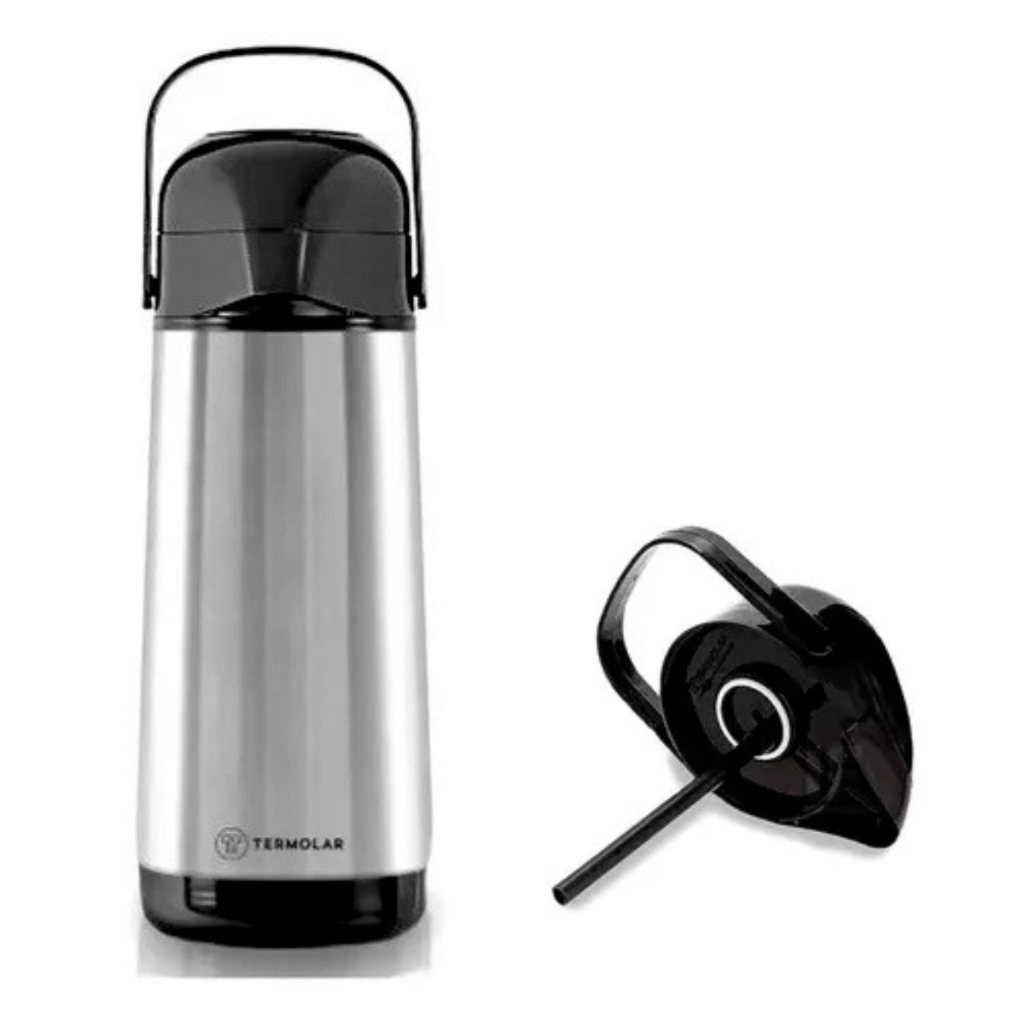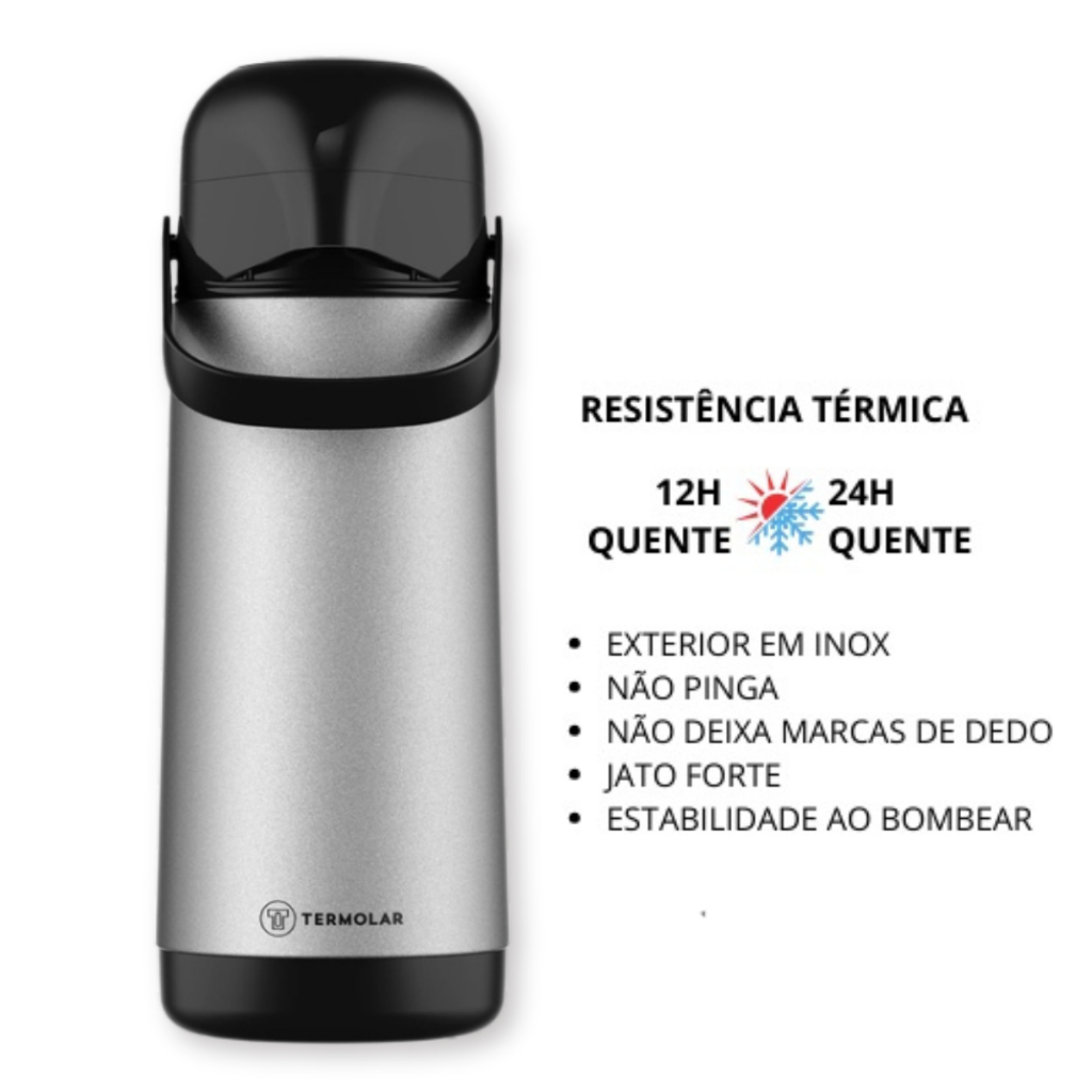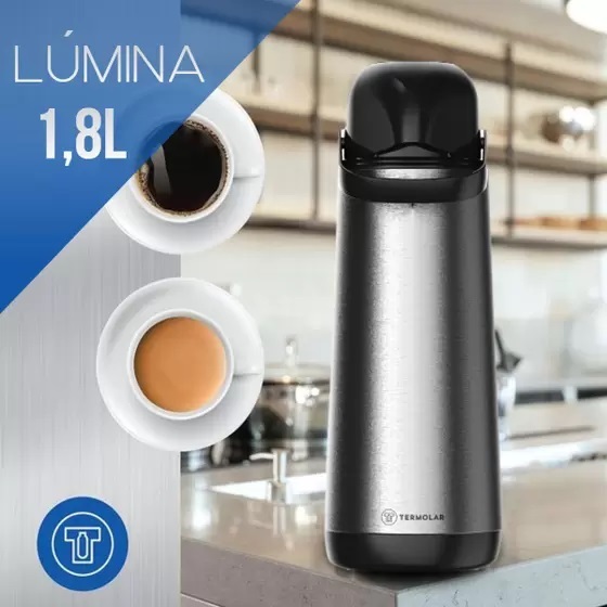 Garrafa Térmica Termolar INOX 1L / 1,8L Lumina Cinza e Preto - Tampa Hermética / Café, Chimarrão