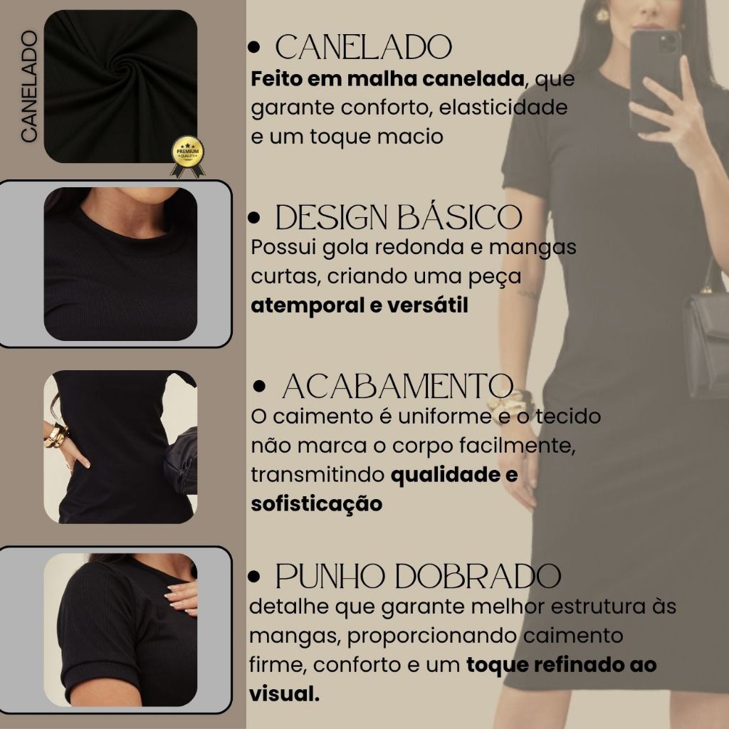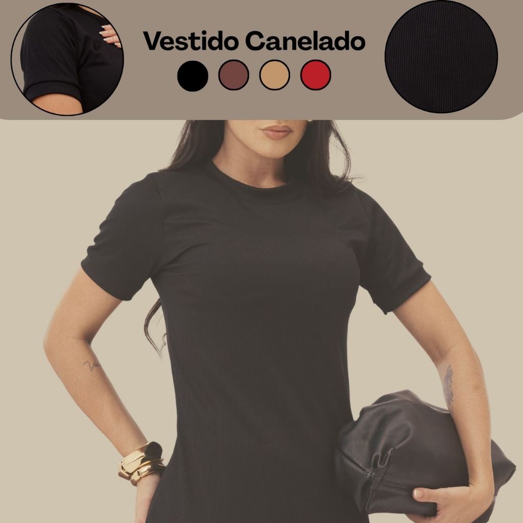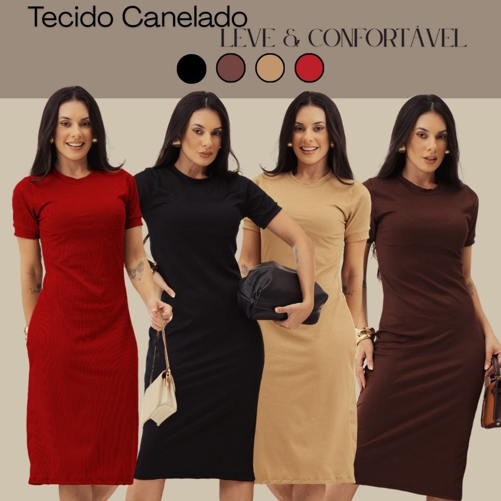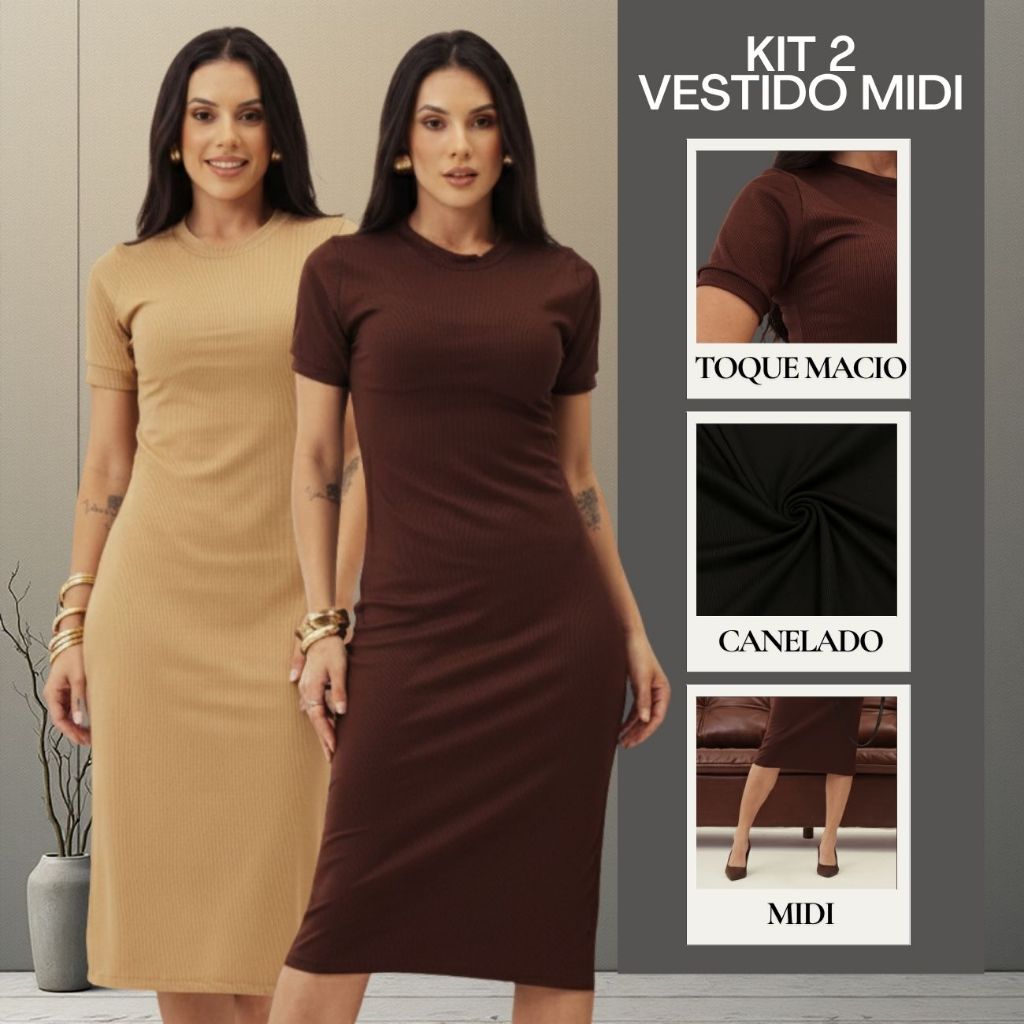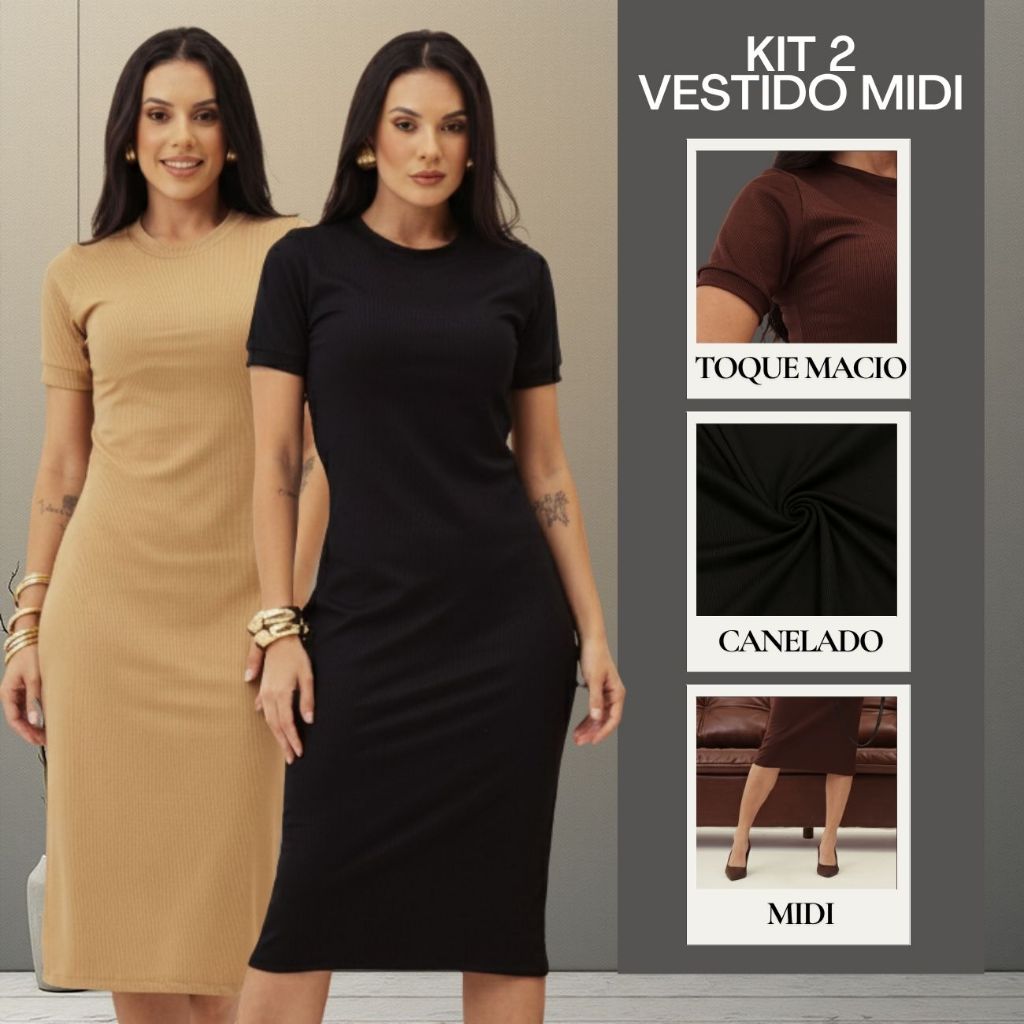 Kit 2 Vestido Canelado Midi Básico Trabalho Evangélica Casual Social Vestido Igreja Casamento