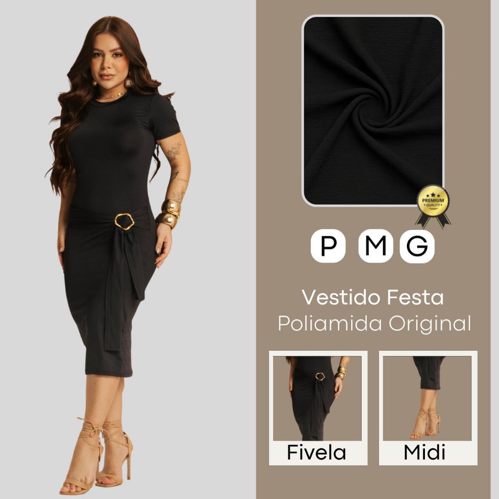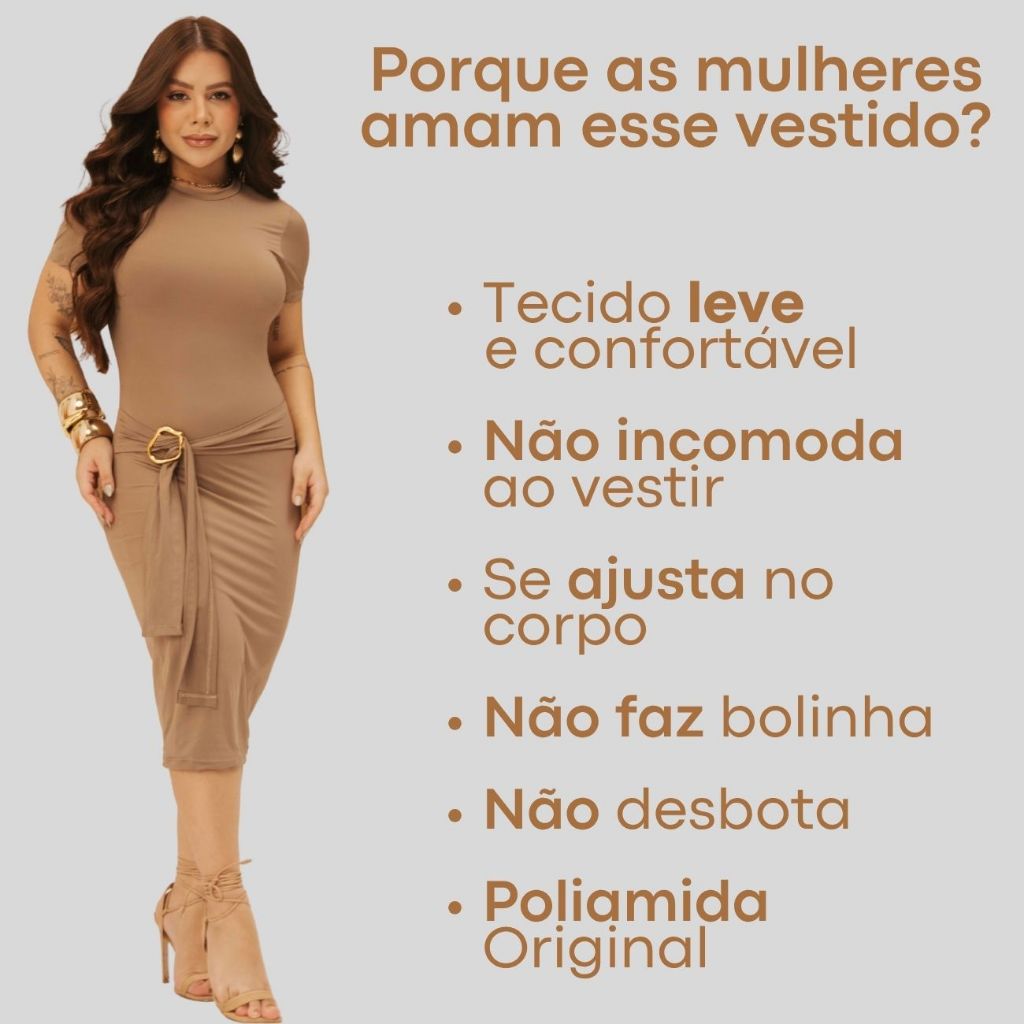 Vestido Midi Modelador Liso 100% Poliamida Original Igreja Madrinha Formatura Moda Evangélica
