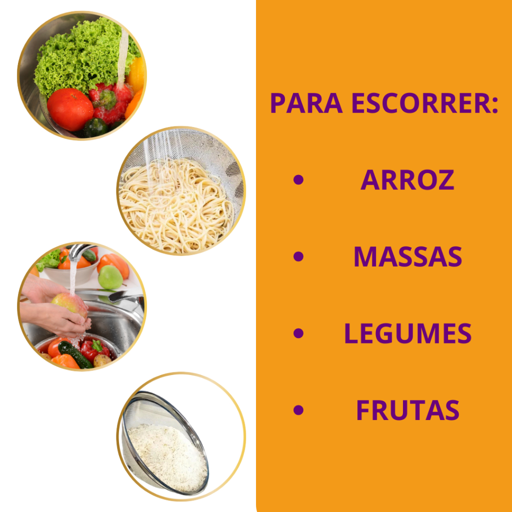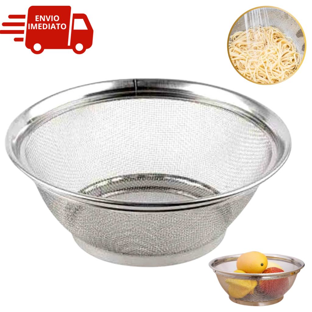 Escorredor de Macarrão Alimentos Cesta Para Frutas Aço Inox Multiuso 22cm