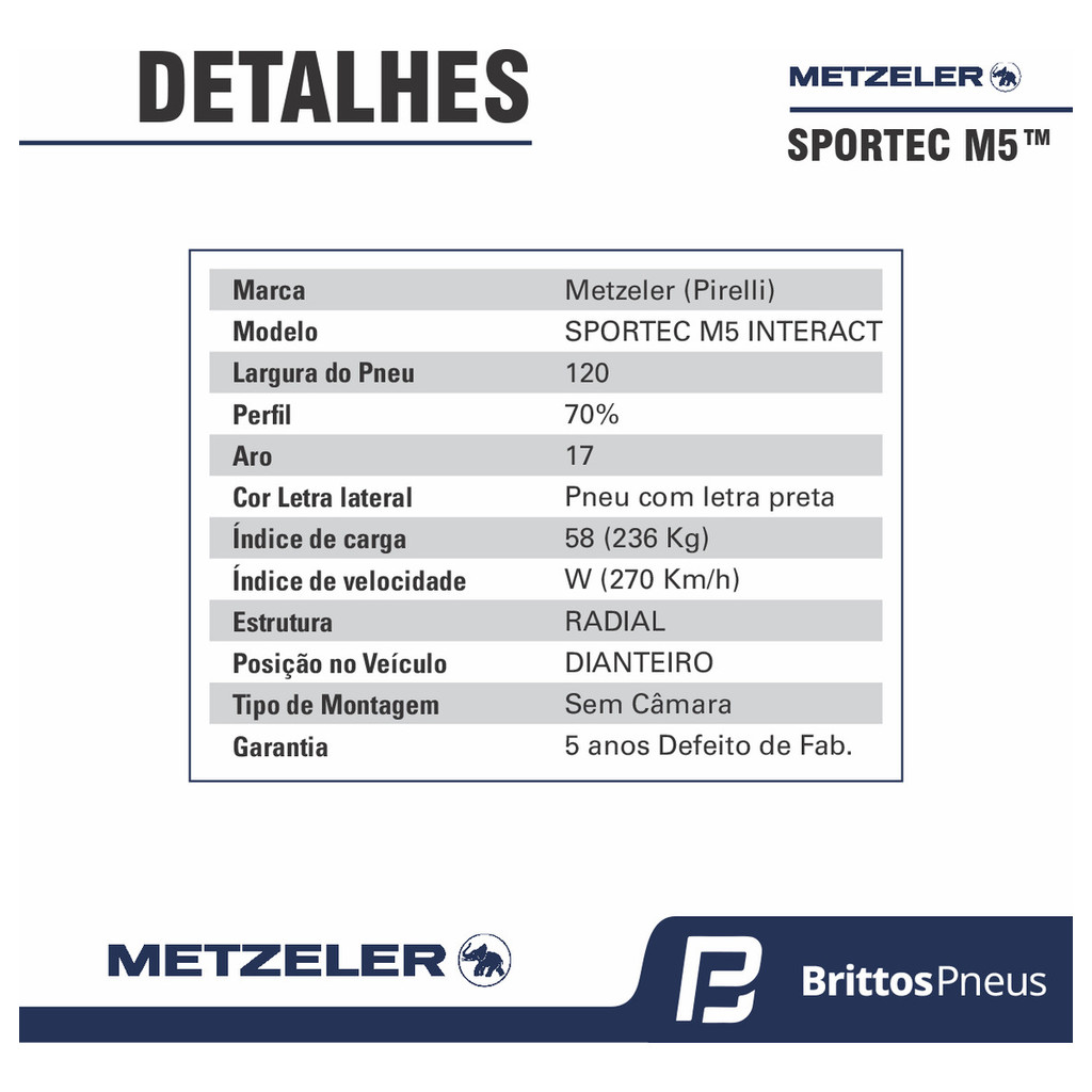 Kit 2 Pneus Aro 17 Metzeler Sportec M5 120/70 R17+180/55 R17