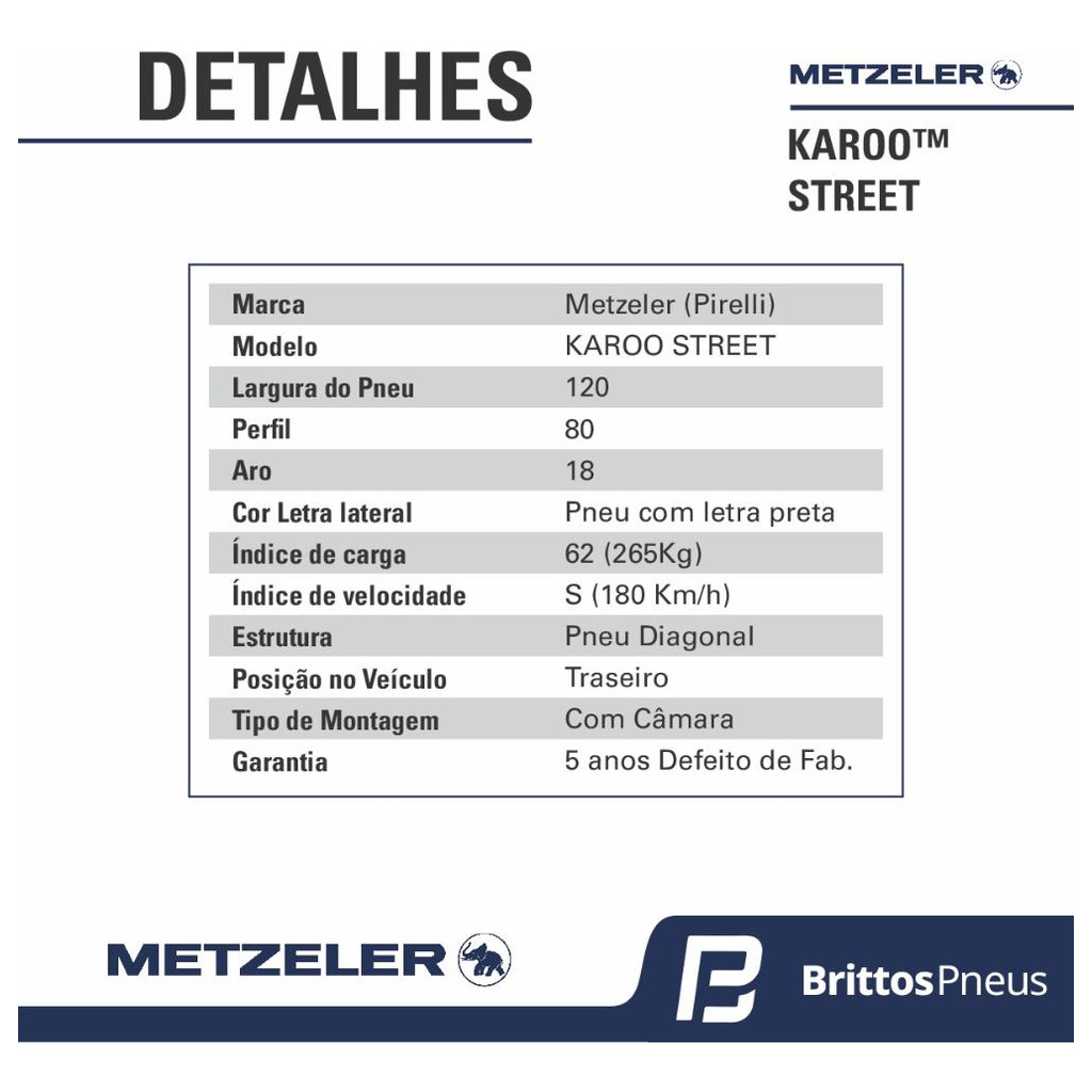 Pneu Moto Metzeler Aro 18 Karoo Street 120/80-18 62S TT - Traseiro