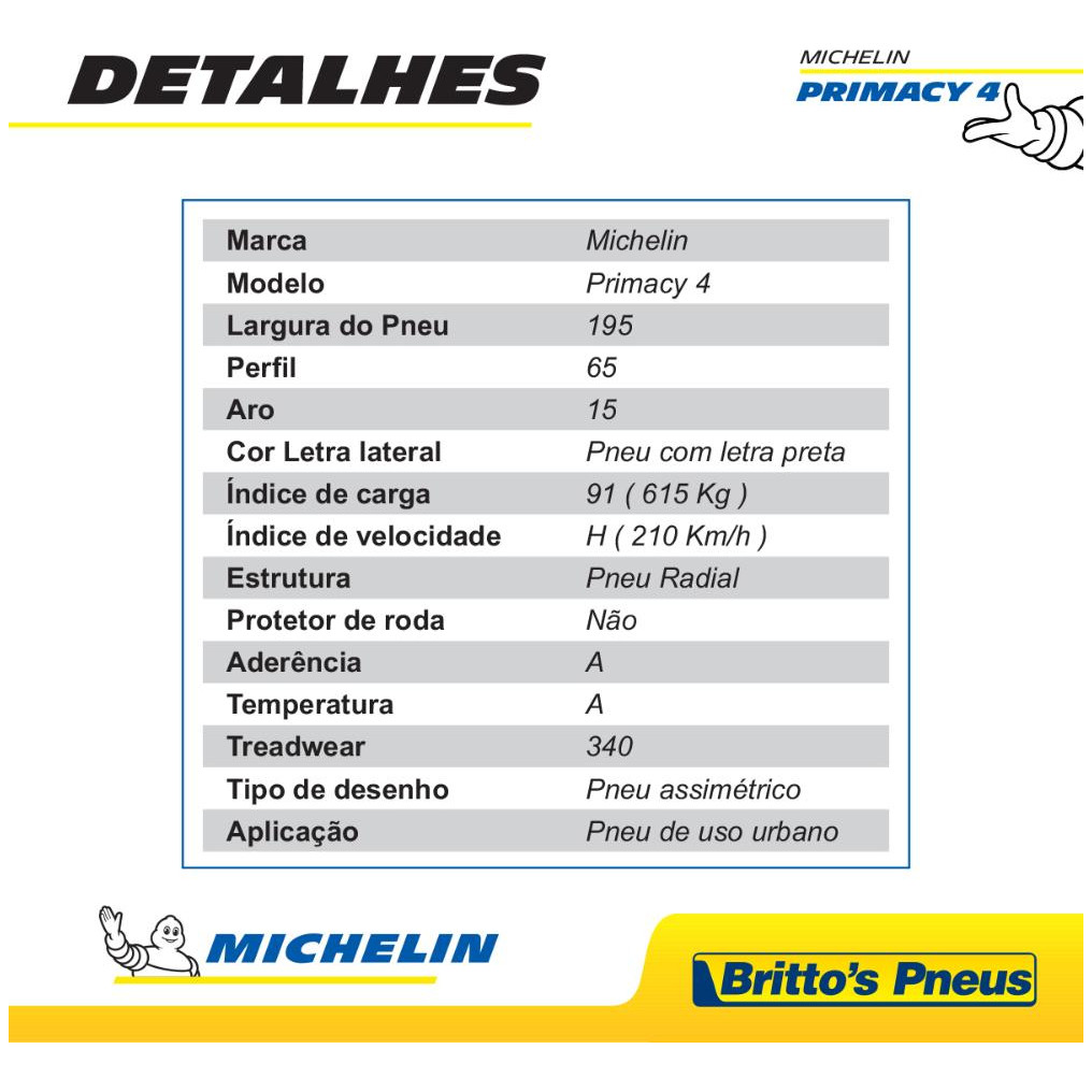 Kit 2 Pneus Michelin Aro 15 Primacy 4 195/65 R15 91H