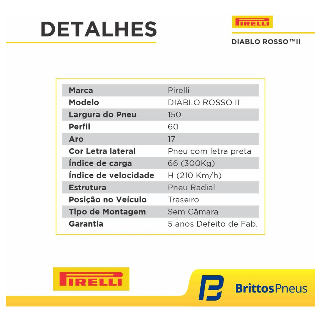 Pneu Moto Pirelli Aro 17 Diablo Rosso II 150/60R17 66H TL -Traseiro