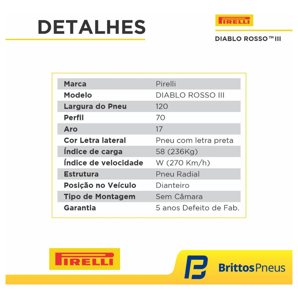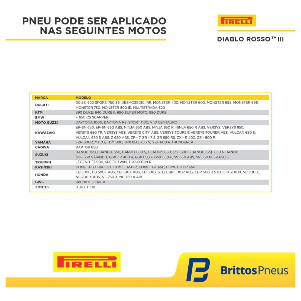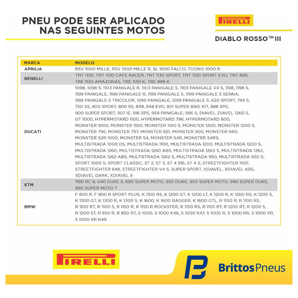 Kit 2 Pneus Moto Pirelli Aro 17 Diablo Rosso III 120/70 R17 58W + 160/60 R17 69W