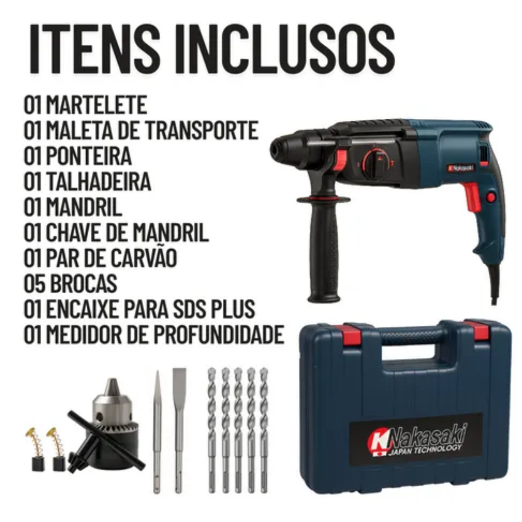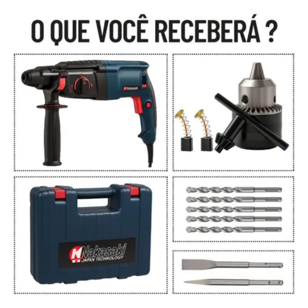 Martelete Rompedor 1600w Furadeira Reversível Super Potente + Maleta