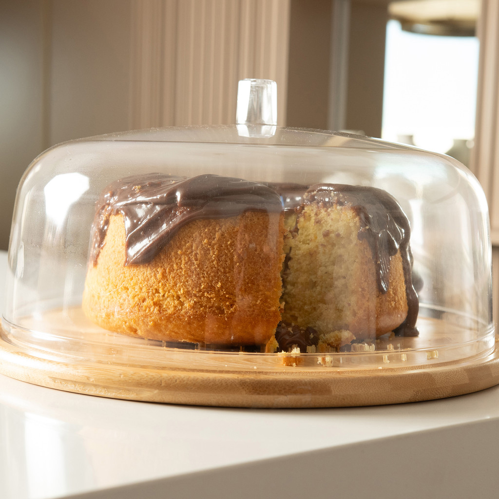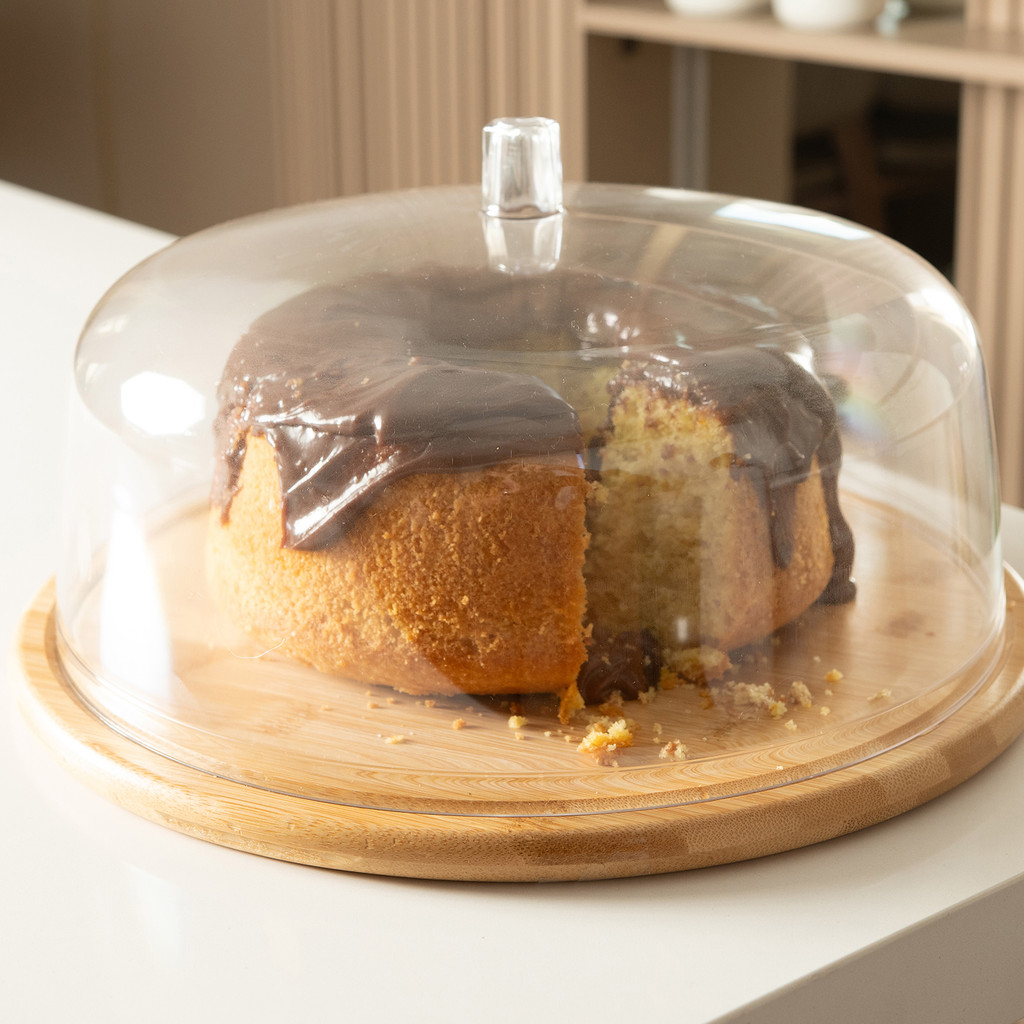 Boleira Cúpula 27,5cm Sense Bambu Natural Tampa Acrílico Transparente Decoração Mesa Bolos Doces Ou