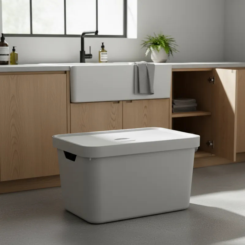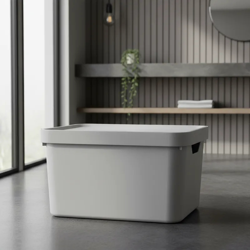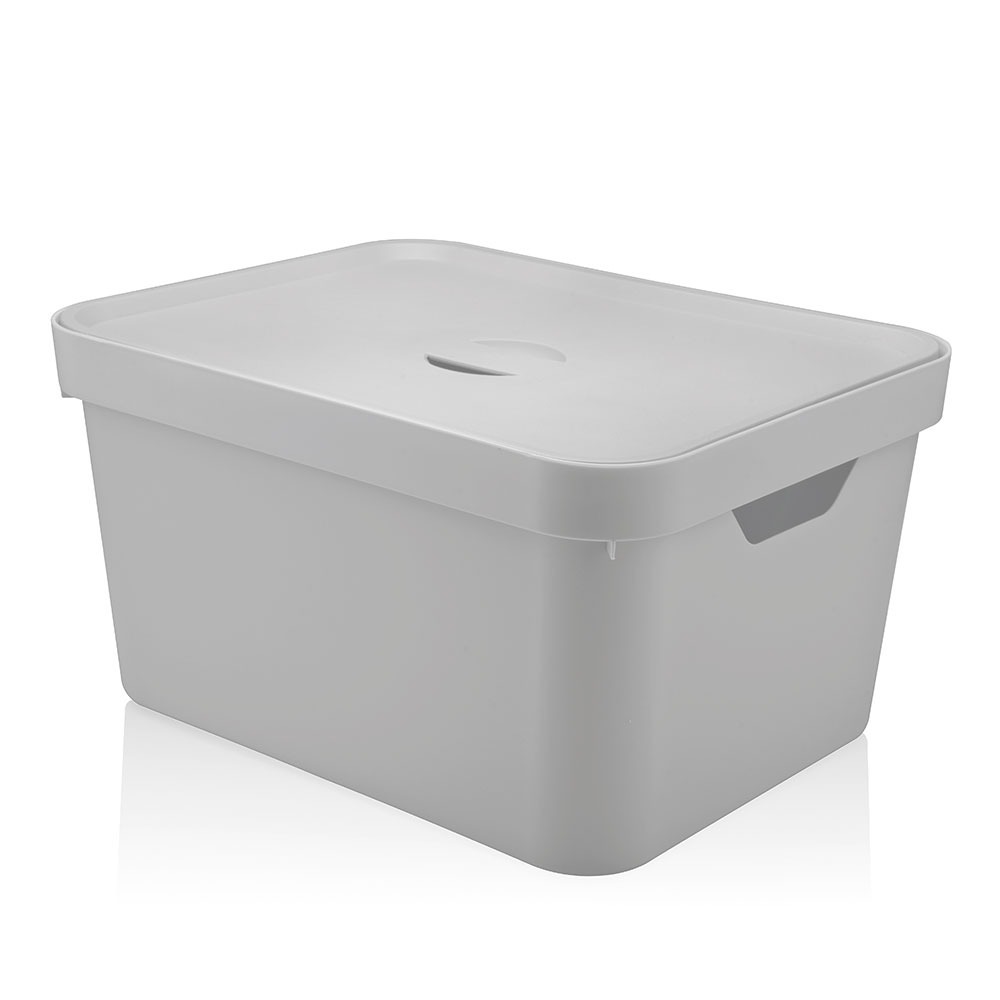 Caixa Organizadora Cube Retangular Alça Cinza Tampa 32L Branca Leve Polipropileno Martiplast