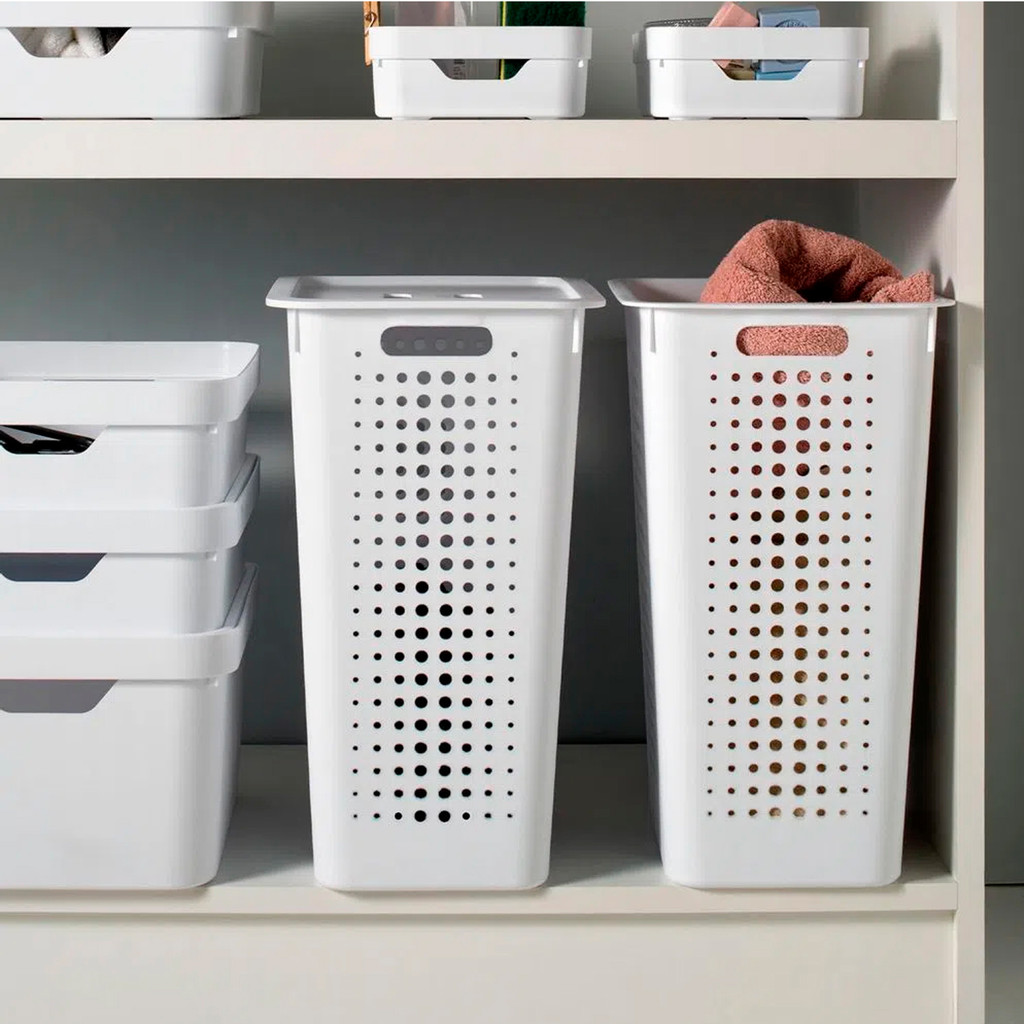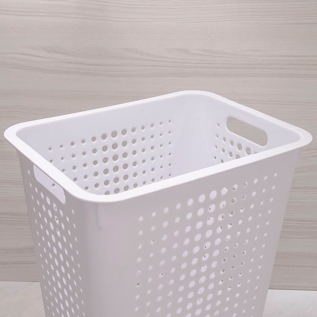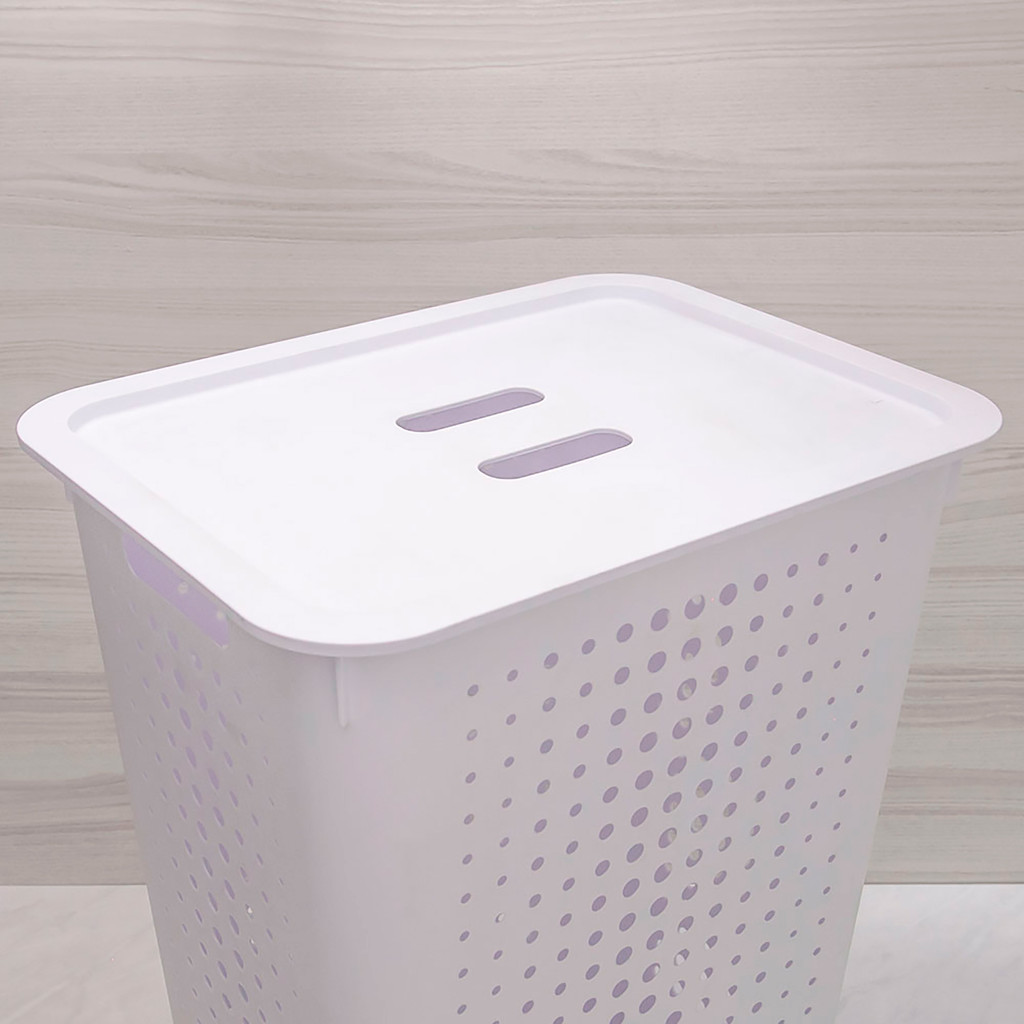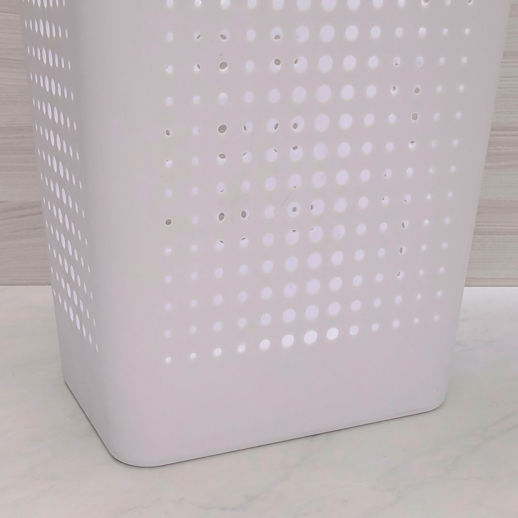 Cesto Organizador Roupa Suja 47L Branco Tampa Alças Ventilado Multiuso Organiza Casa Lavanderia Ou
