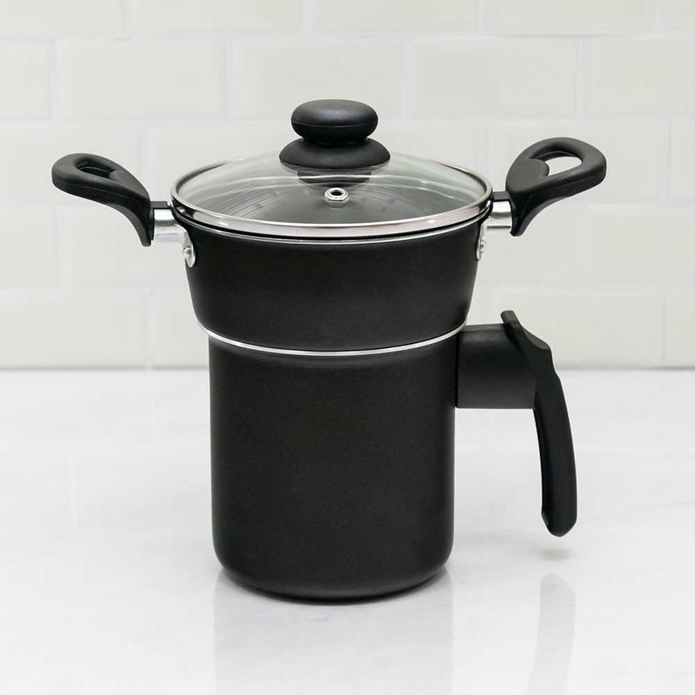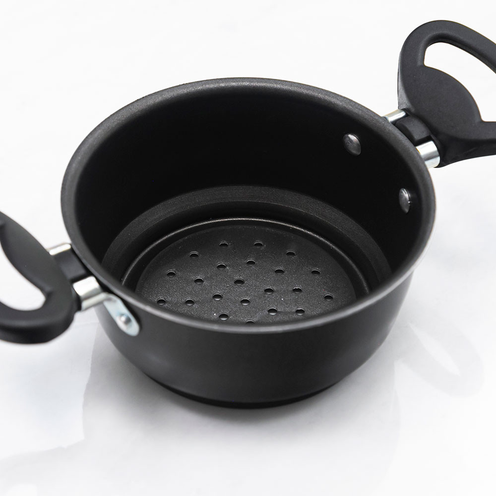 Cuscuzeira Individual 3 Em 1 Tampa Vidro Alumínio Leiteira Preta Panela Cuscuz Prático Meridional