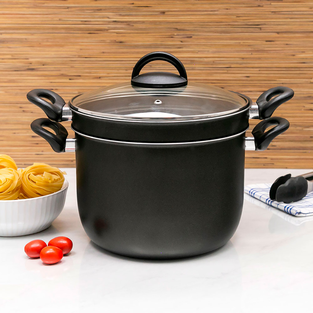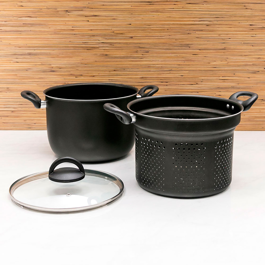 Panela Macarrão Espagueteira 2em1 Escorredor Tampa Vidro Temperado Alumínio Antiaderente Meridional