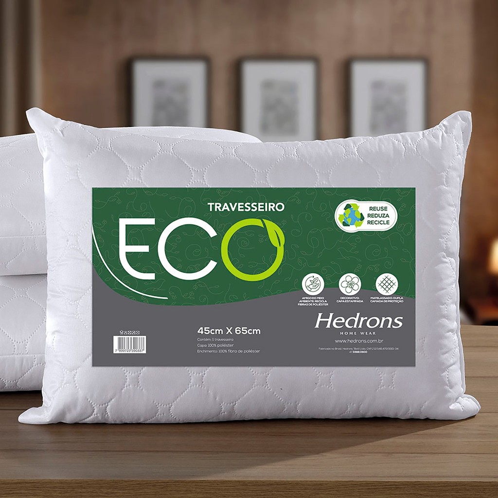 Kit 2 Travesseiros Eco Maxxi Impermeável 45x65cm Branco Poliéster Ecologicamente Lavável Hedrons