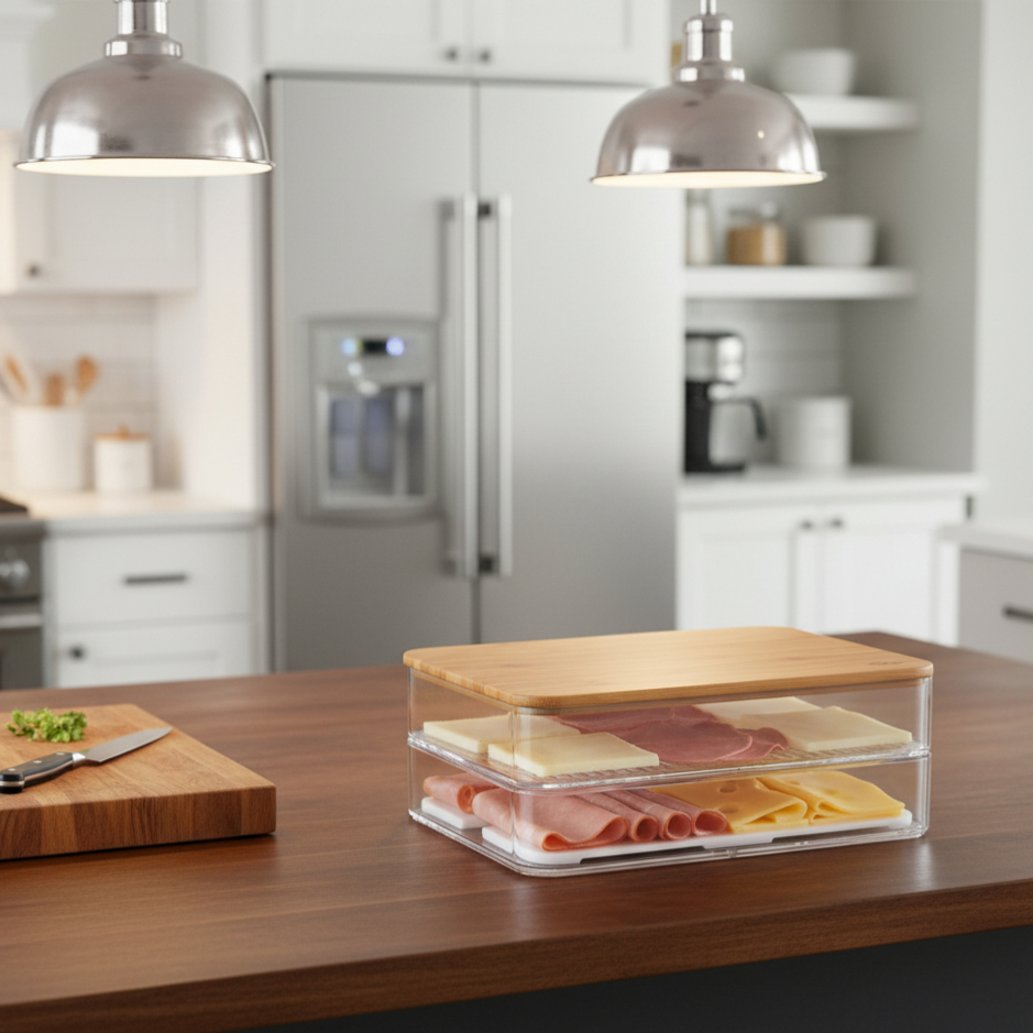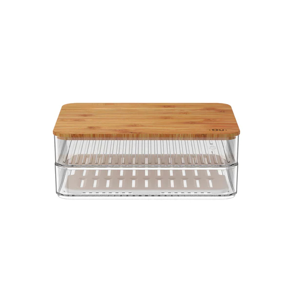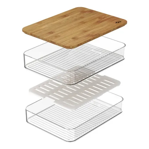 Porta Frios Duplo Tampa Bambu Natural Clear Fresh Transparente Organizador Geladeira Mesa Ou
