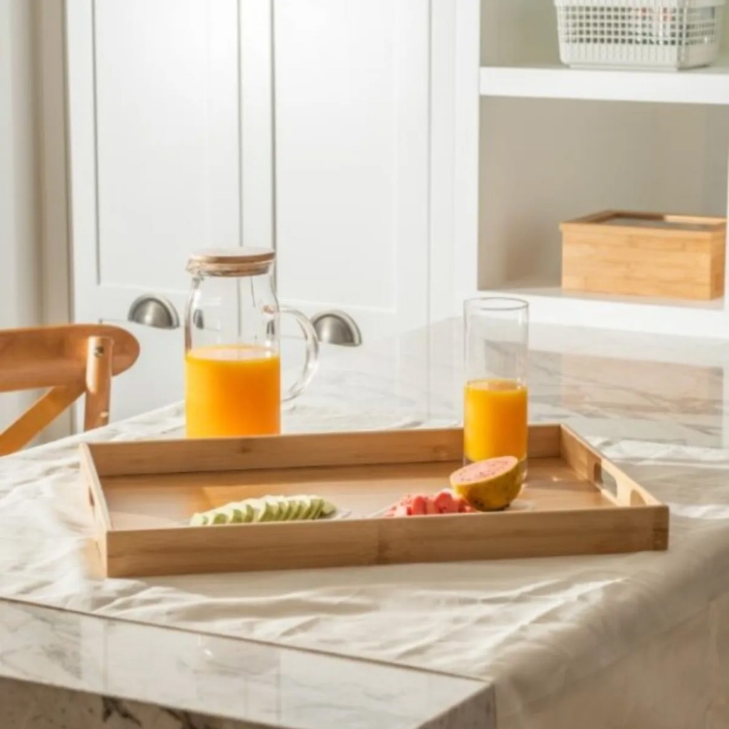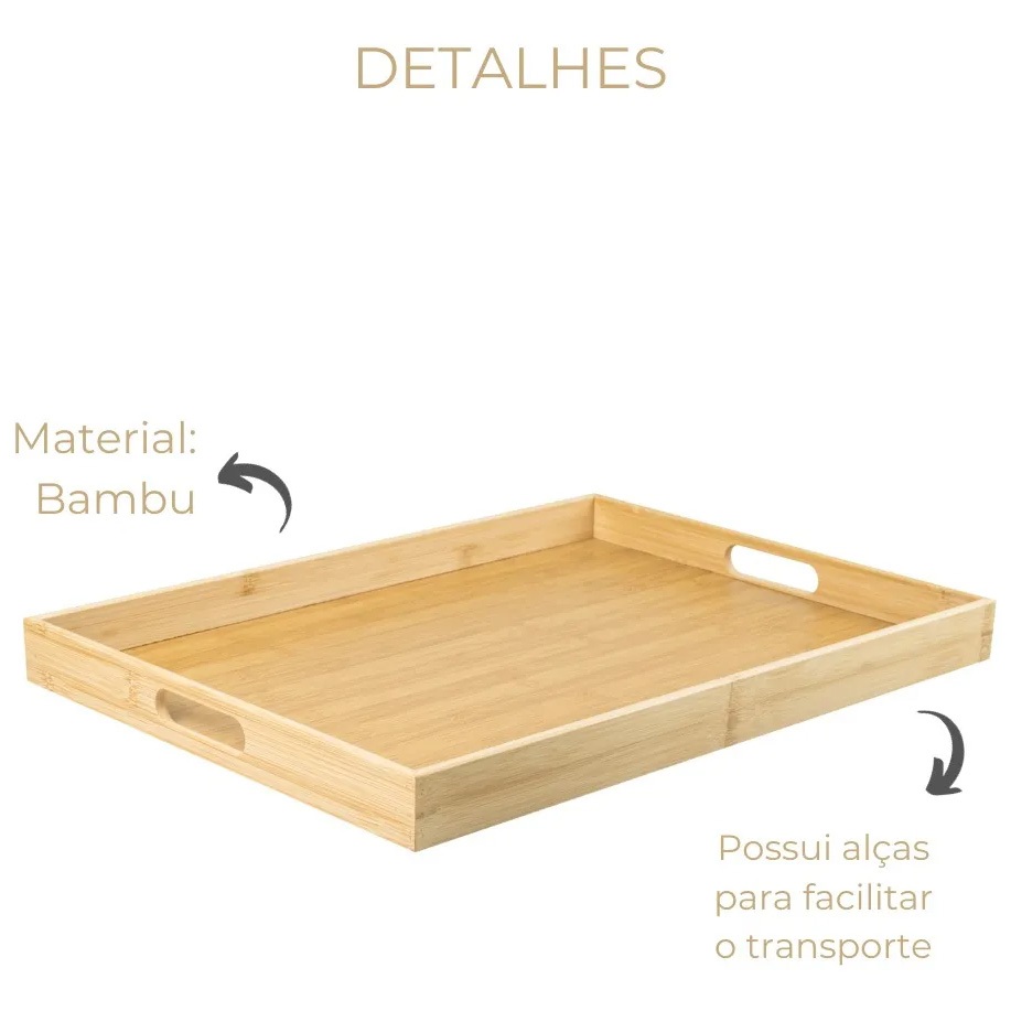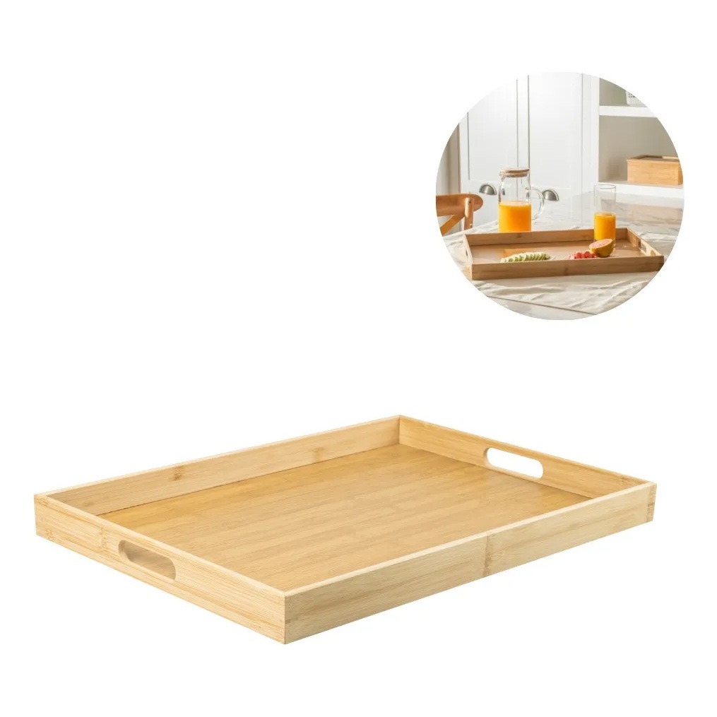 Bandeja Decorativa Grande Sense Bambu Natural Alças Servir Café Manhã Chá Decoração Organiza Mesa Ou