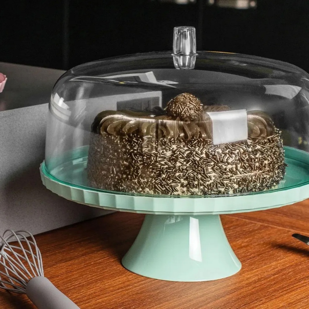 Boleira Redonda com Pé e Tampa 30cm Festa de Branco Martiplast