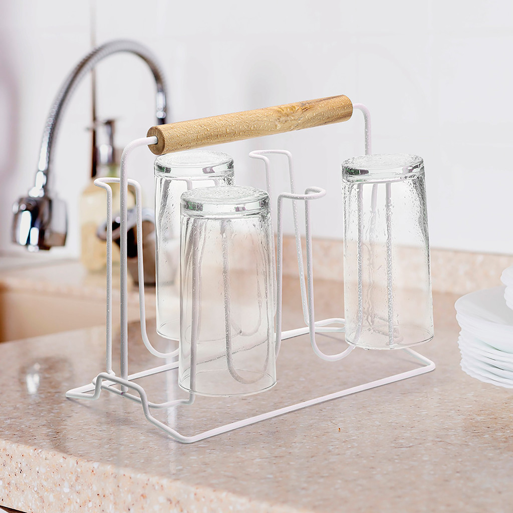 Porta Copo Mesa Suporte Copos 6 Lugares Eco Design Utensílio Cozinha Branco Arthi