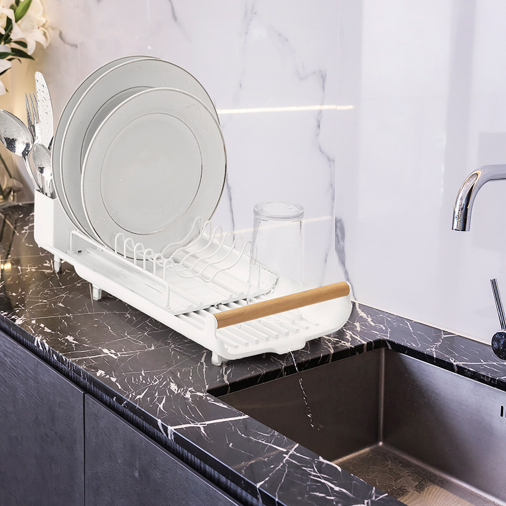 Escorredor Organizador Louça Extensível Aço Eco Design Branco Cozinha Bancada Pratos Talheres Arthi