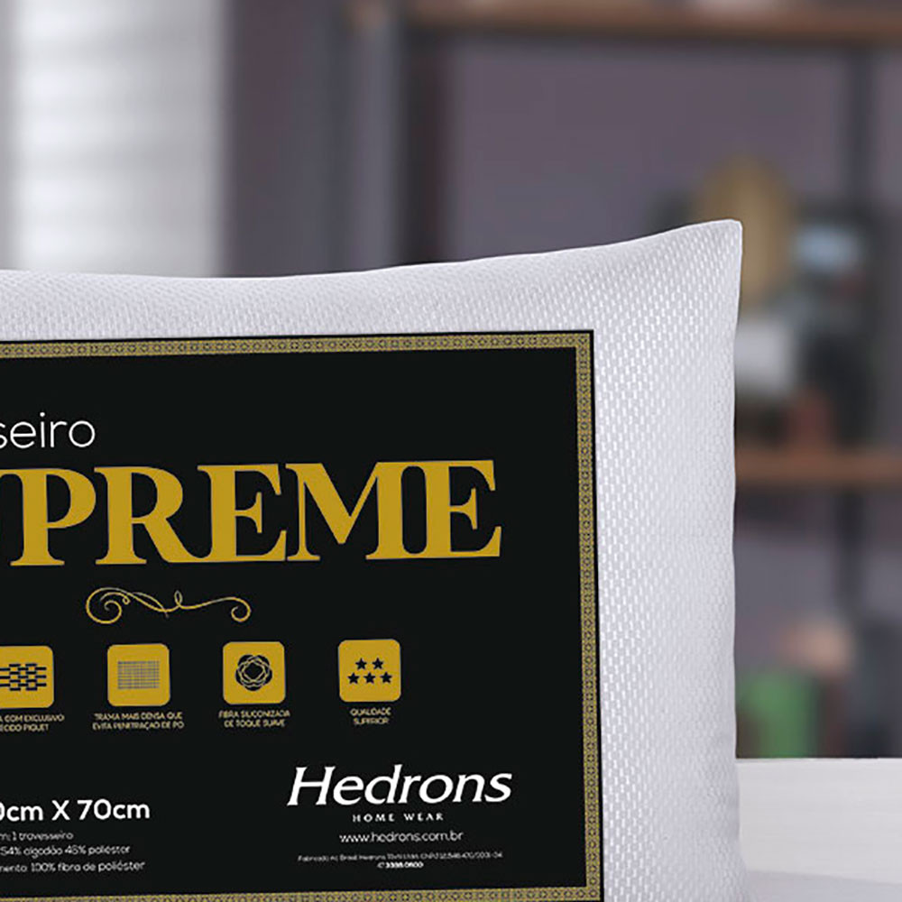 Travesseiro Suporte Firme Alto Supreme Tecido Piquet 50x70cm Conforto Qualidade Cama Branco Hedrons