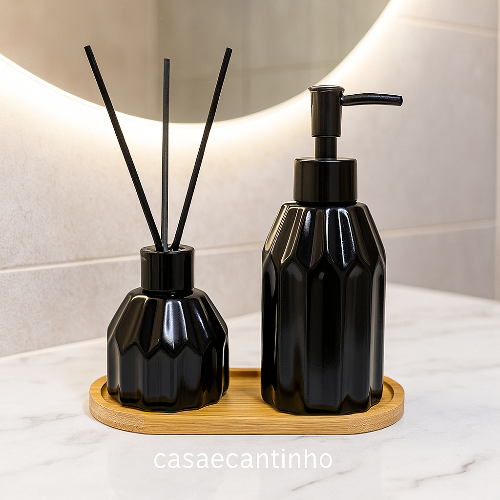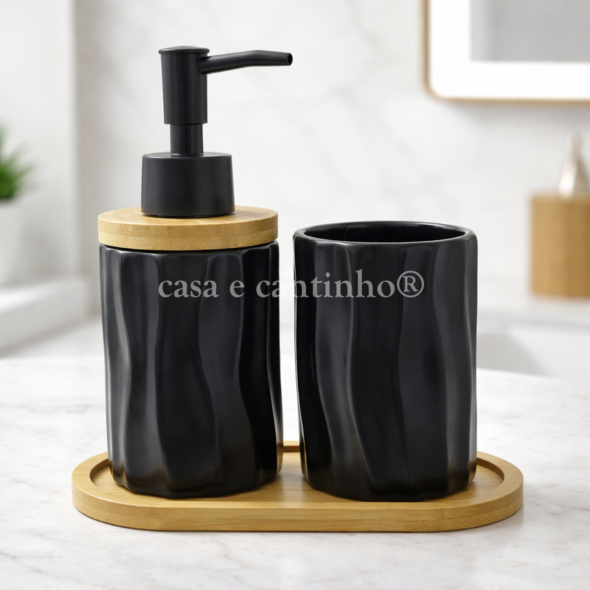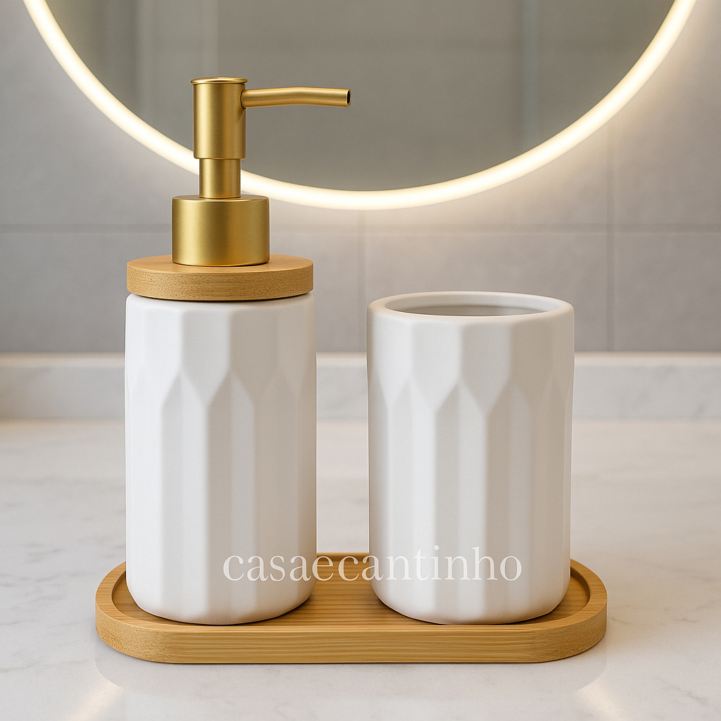 Kit Banheiro Lavabo Porta Sabonete liquido Dispenser Porta Escova Cerâmica/Porcelana Banheiro