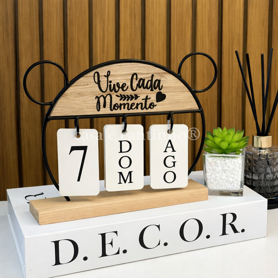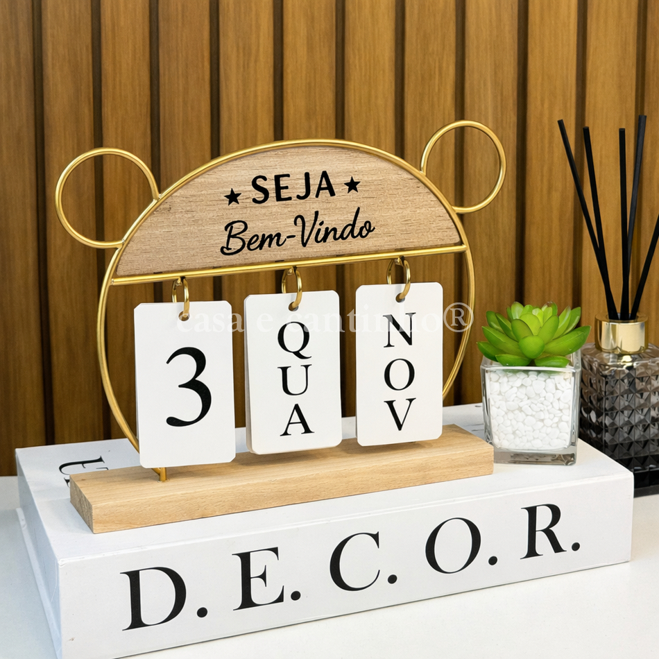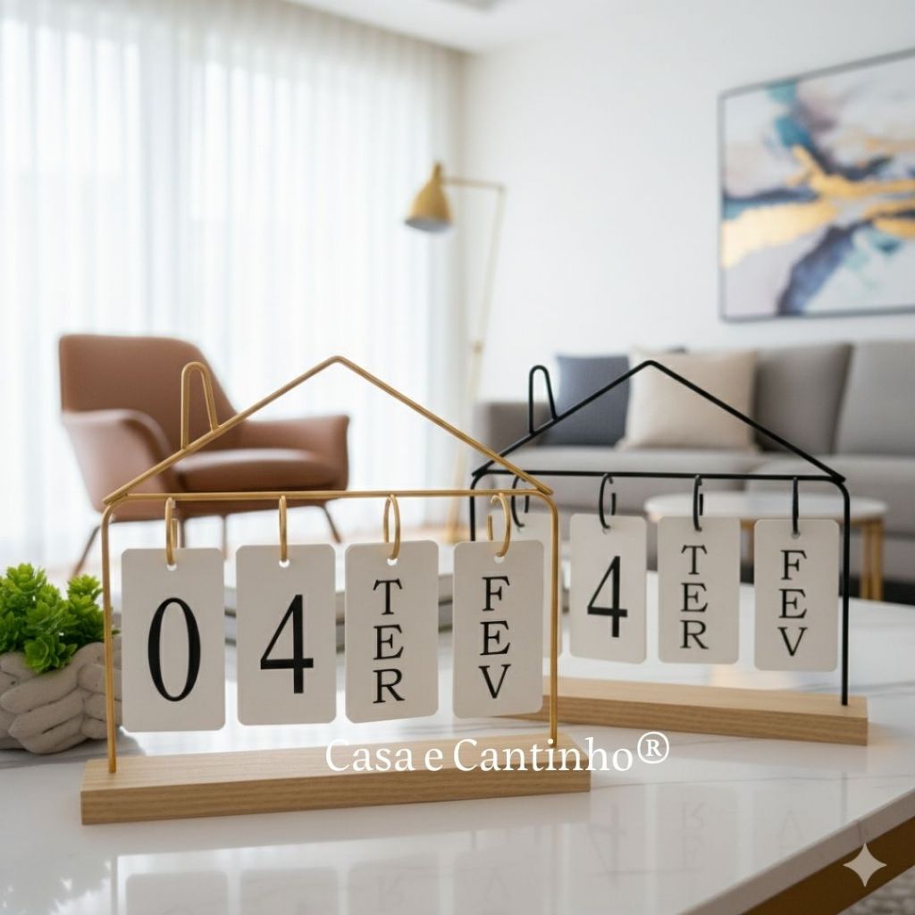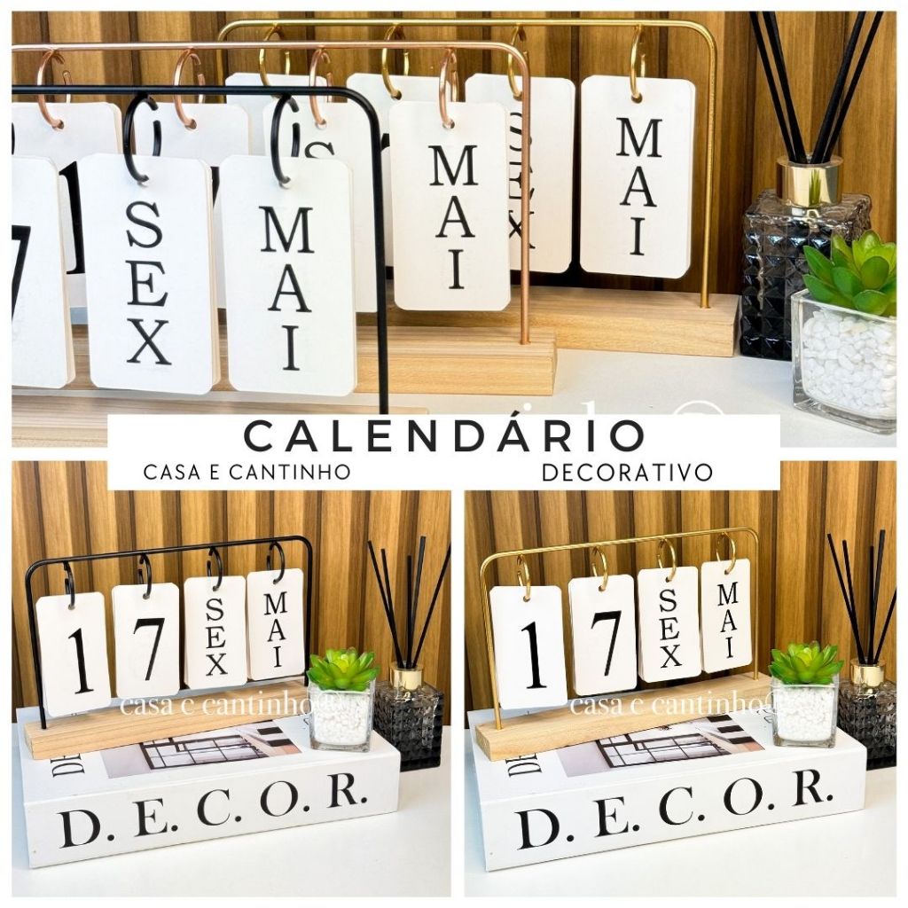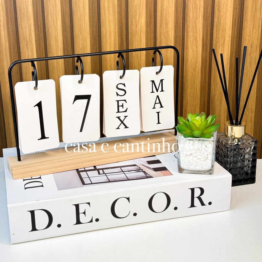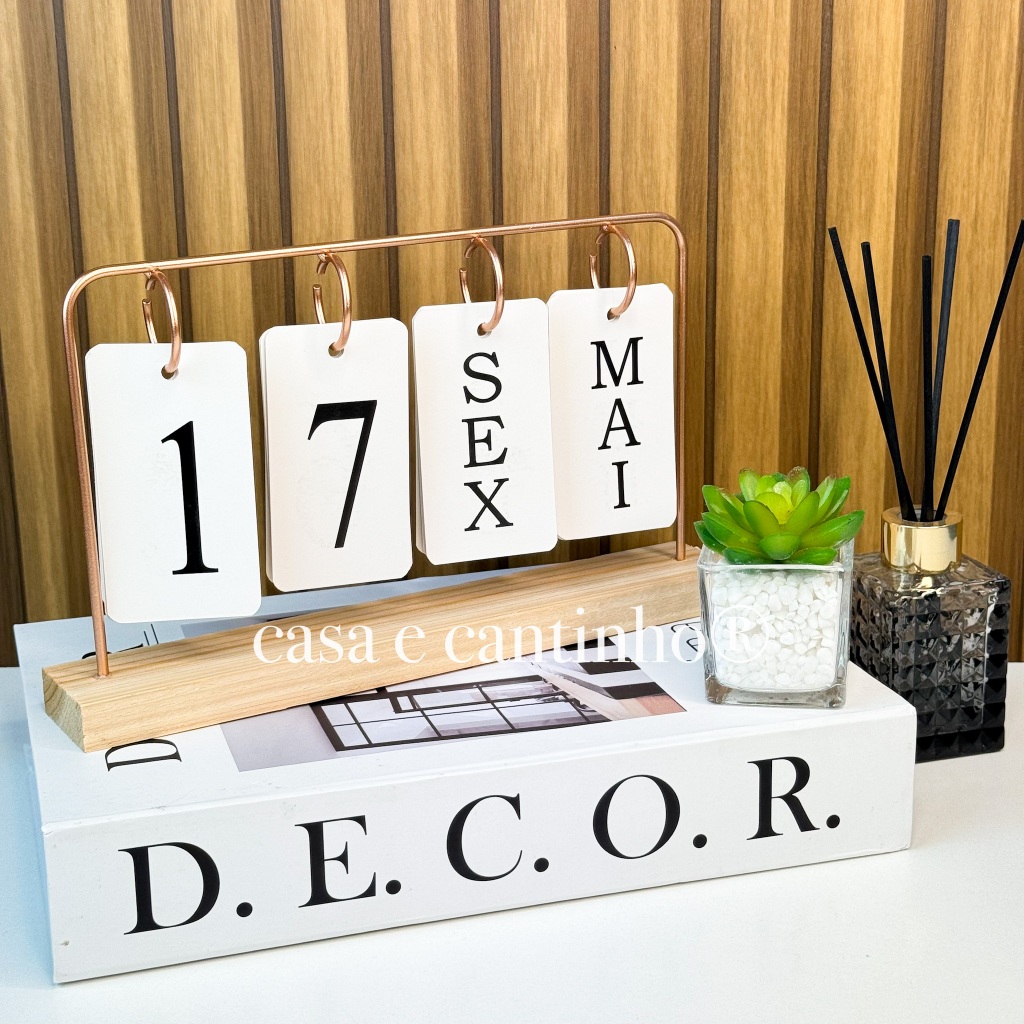 Calendário de Mesa Decorativo com Plaquinhas Preto Rose Dourado Permanente Escritório