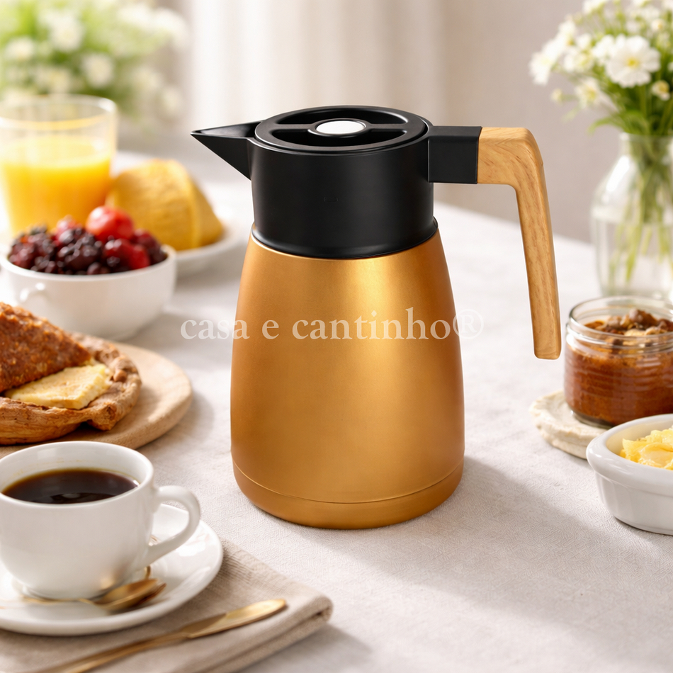 Garrafa Térmica Decorativa 1L Luxo | Café Chá Revestida com Design Elegante para Mesa Posta