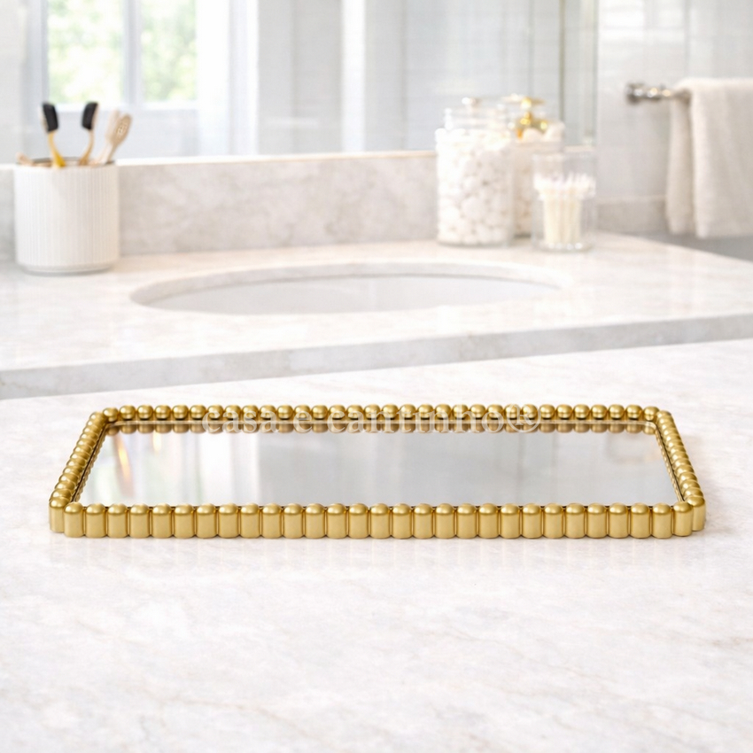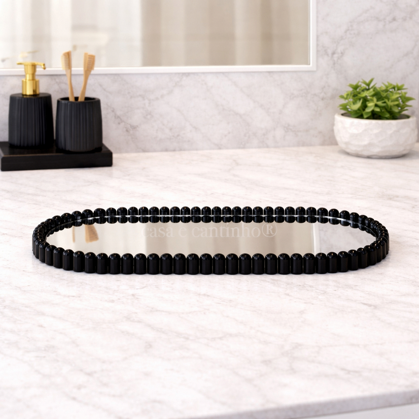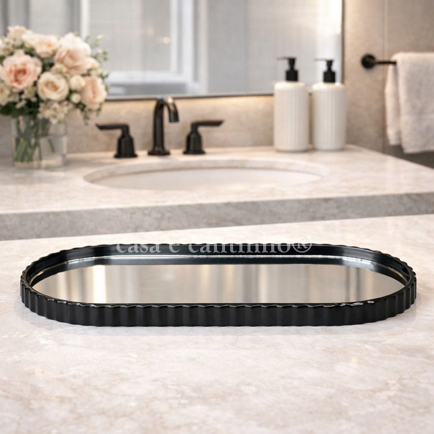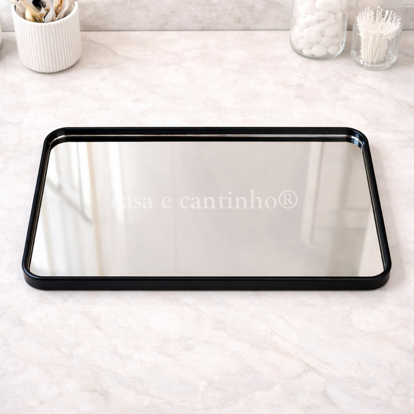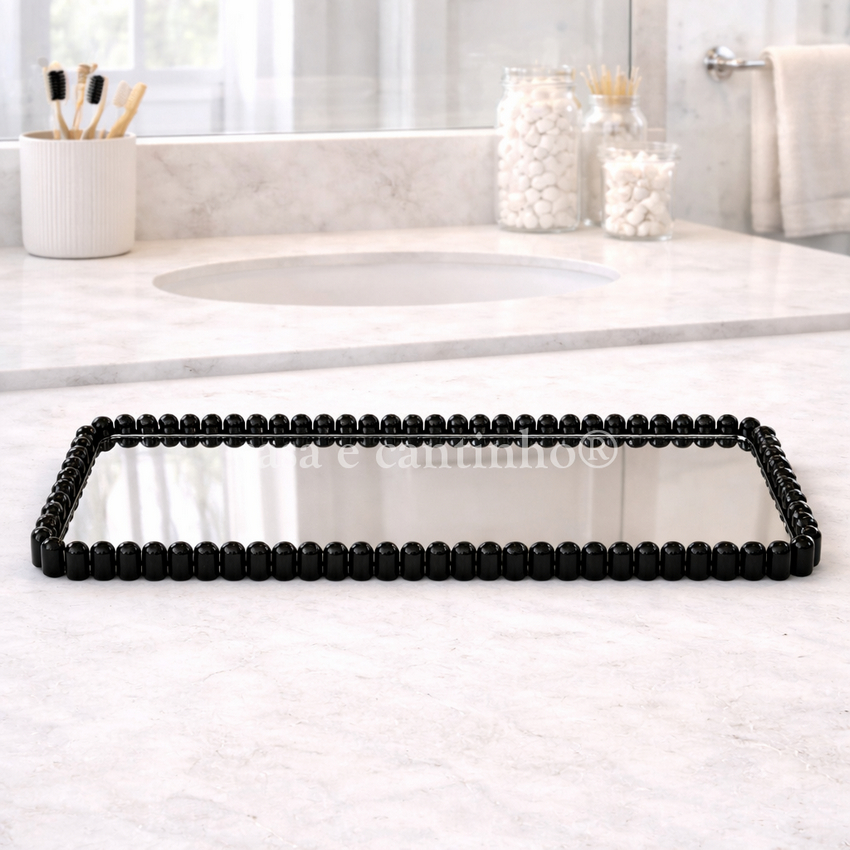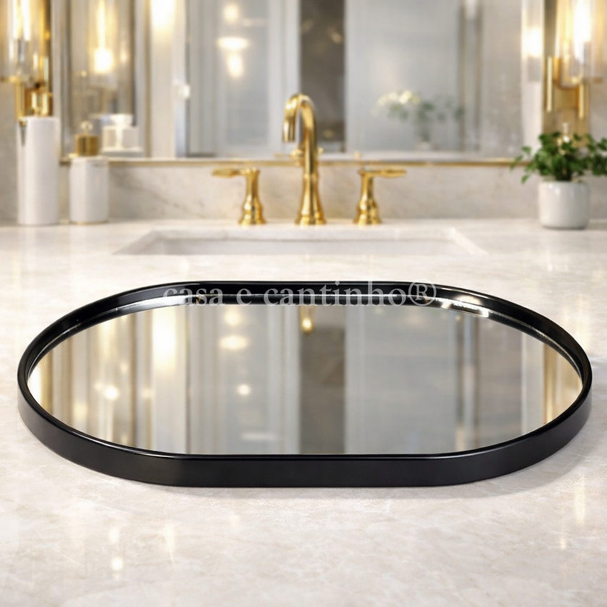 Bandeja Espelhada Banheiro Lavabo Bandeja Decorativa Multiuso Preta Dourada ou Prata