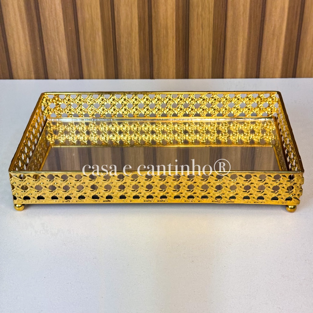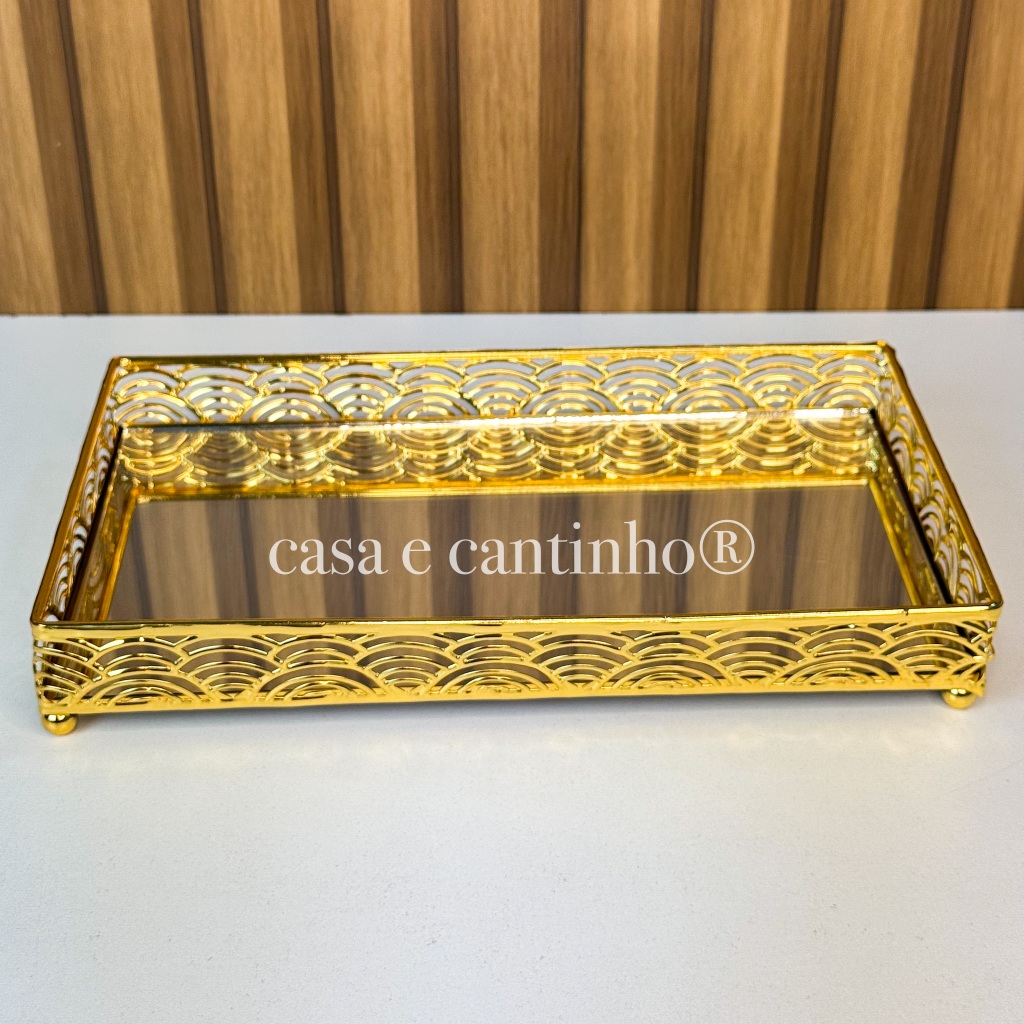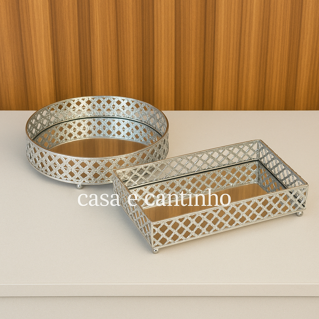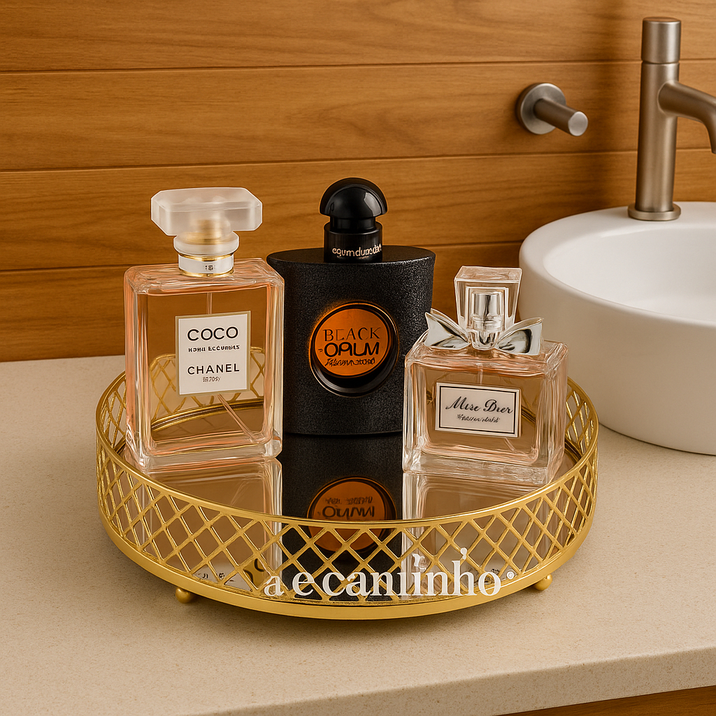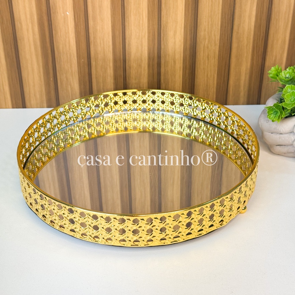 Bandeja Decorativa Espelhada Organizadora Resistente Moderna Espelhado em Metal Multiuso Redonda