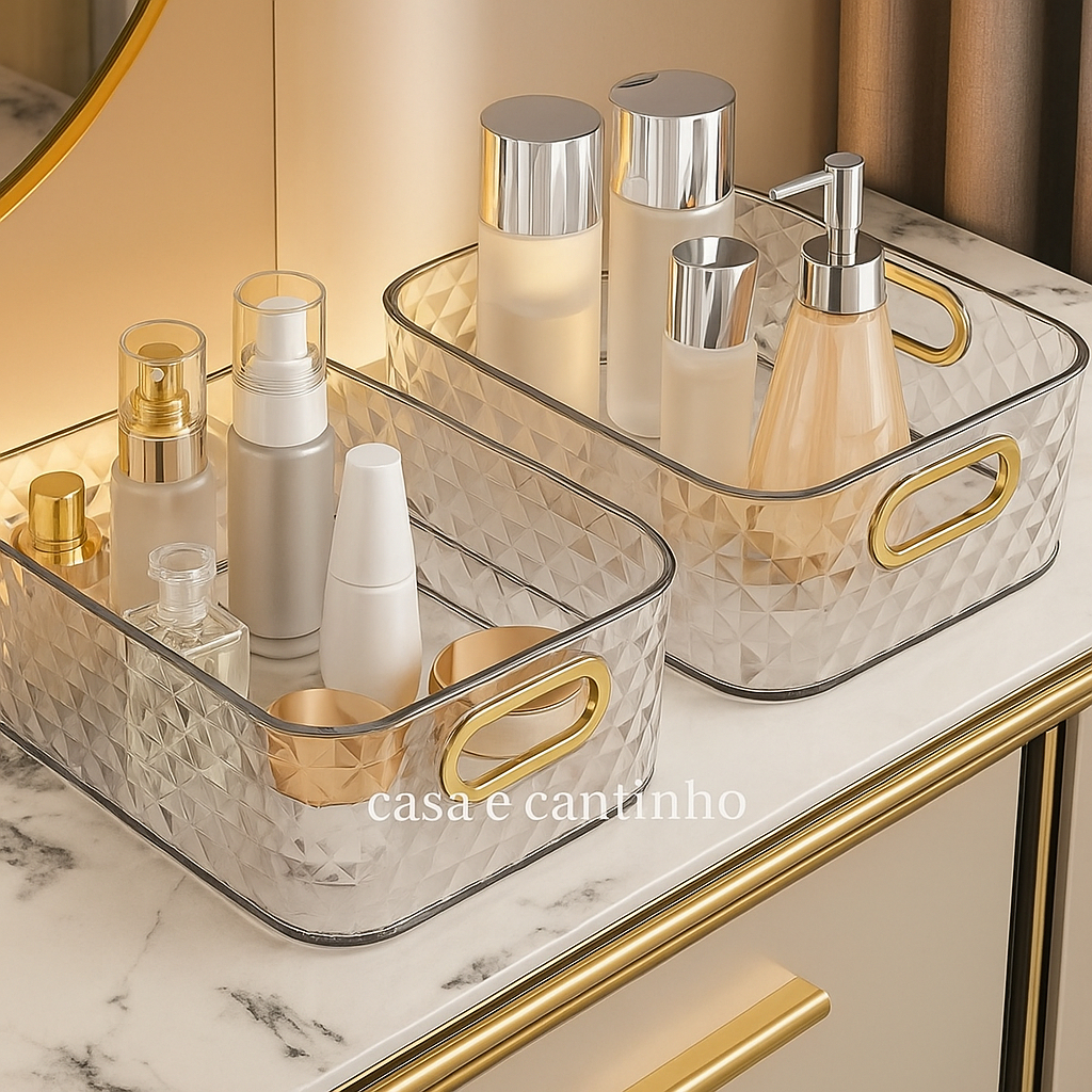 Caixa de Armazenamento Transparente Multiuso Decorativa Multiuso Casa Cozinha Closet Banheiro Gaveta