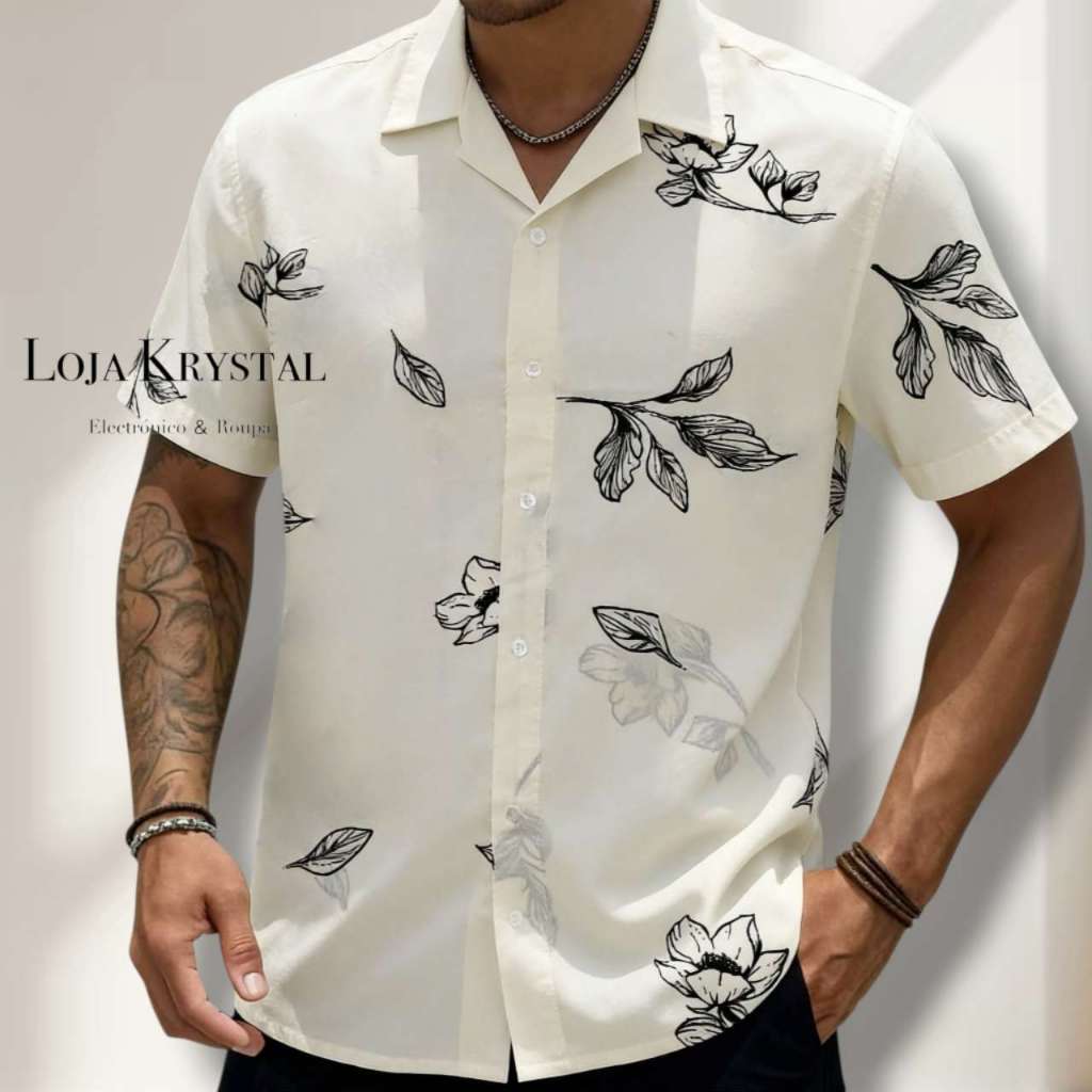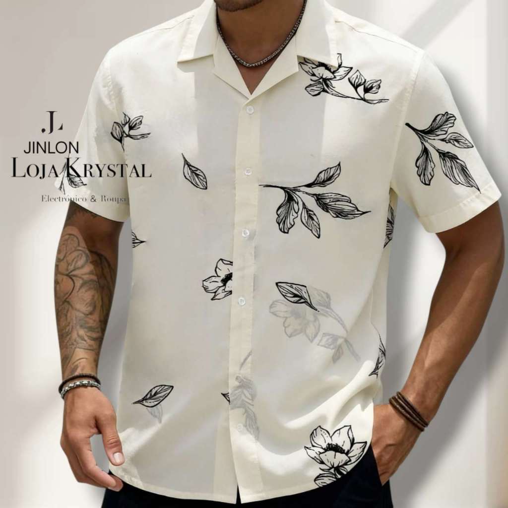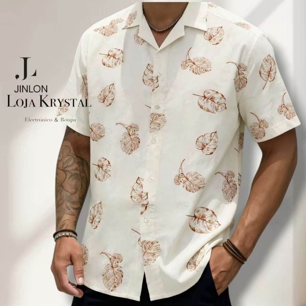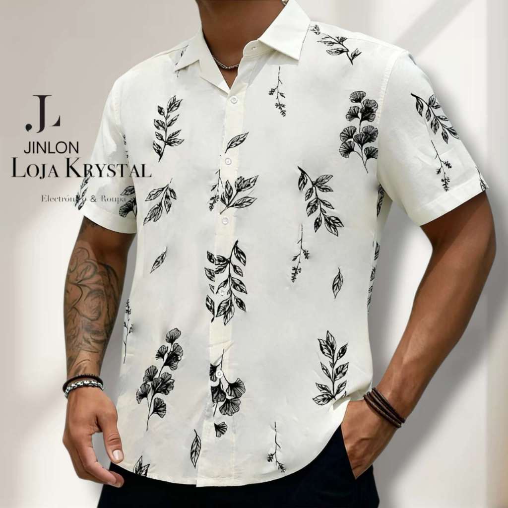 Floral Camisa Havaiana Praia Verão Masculino Manga Curta De Botão Tecido Viscose