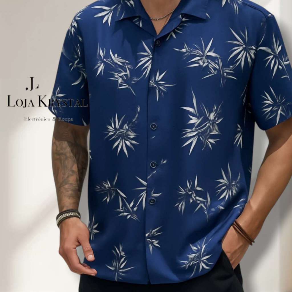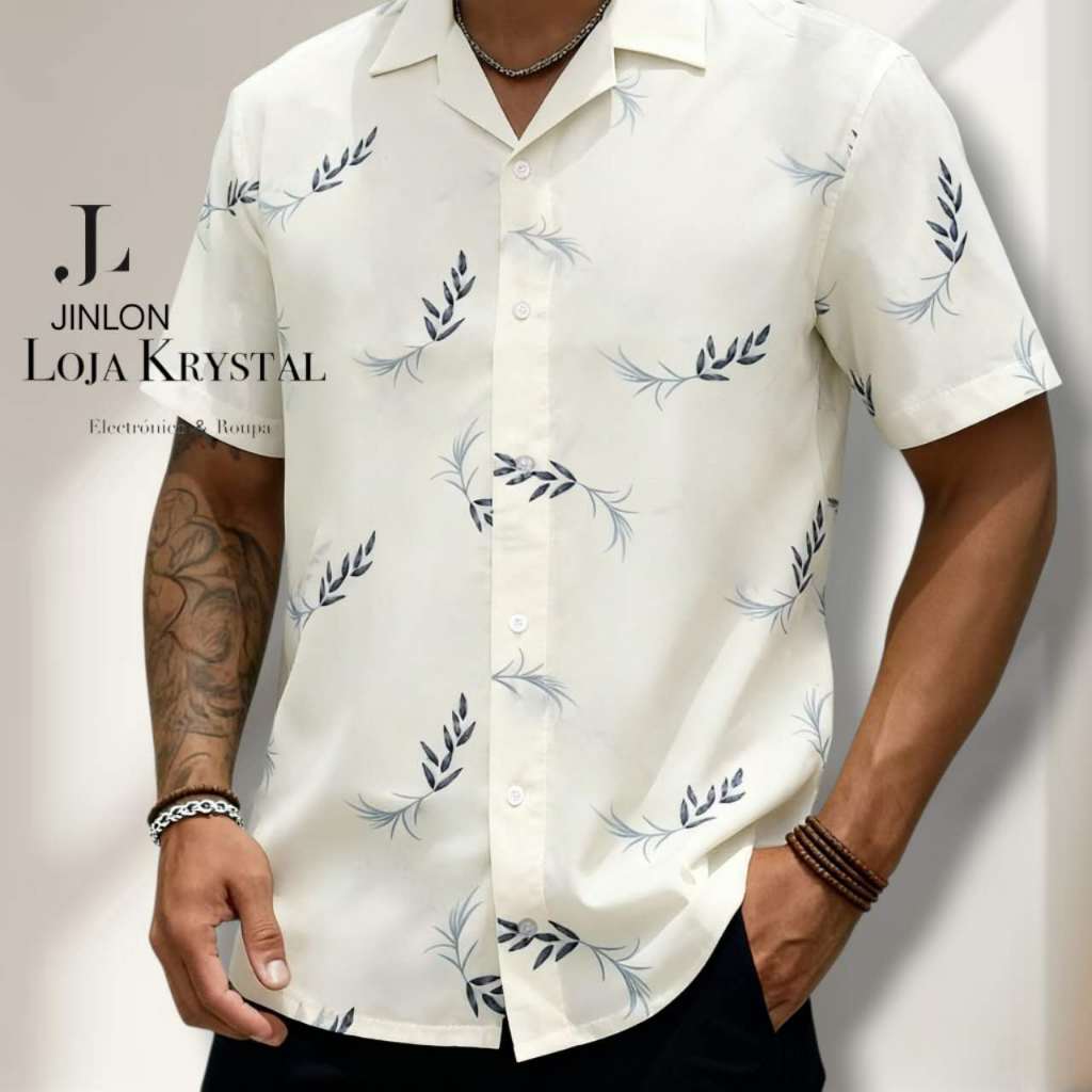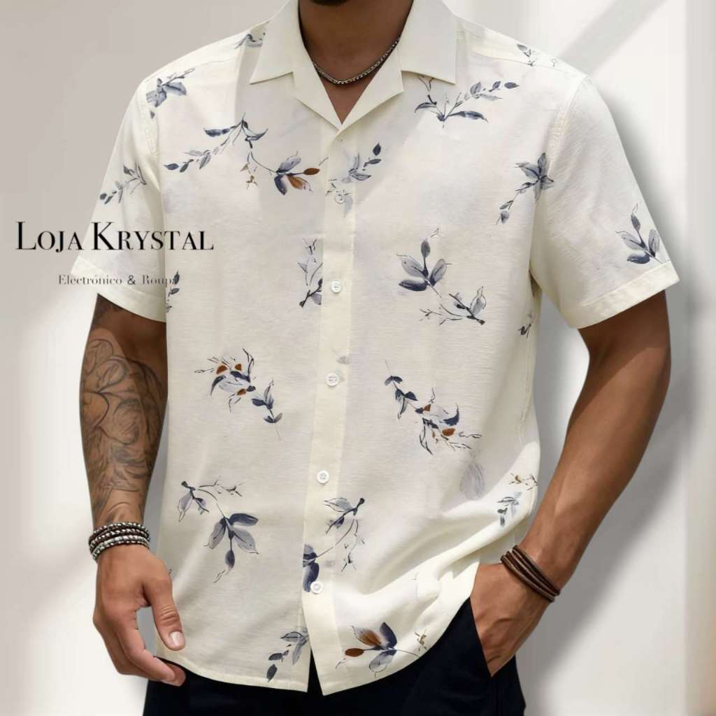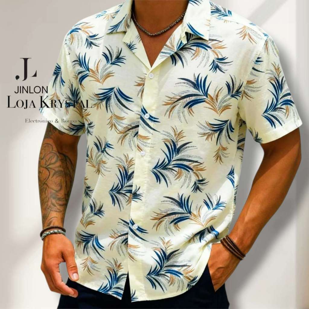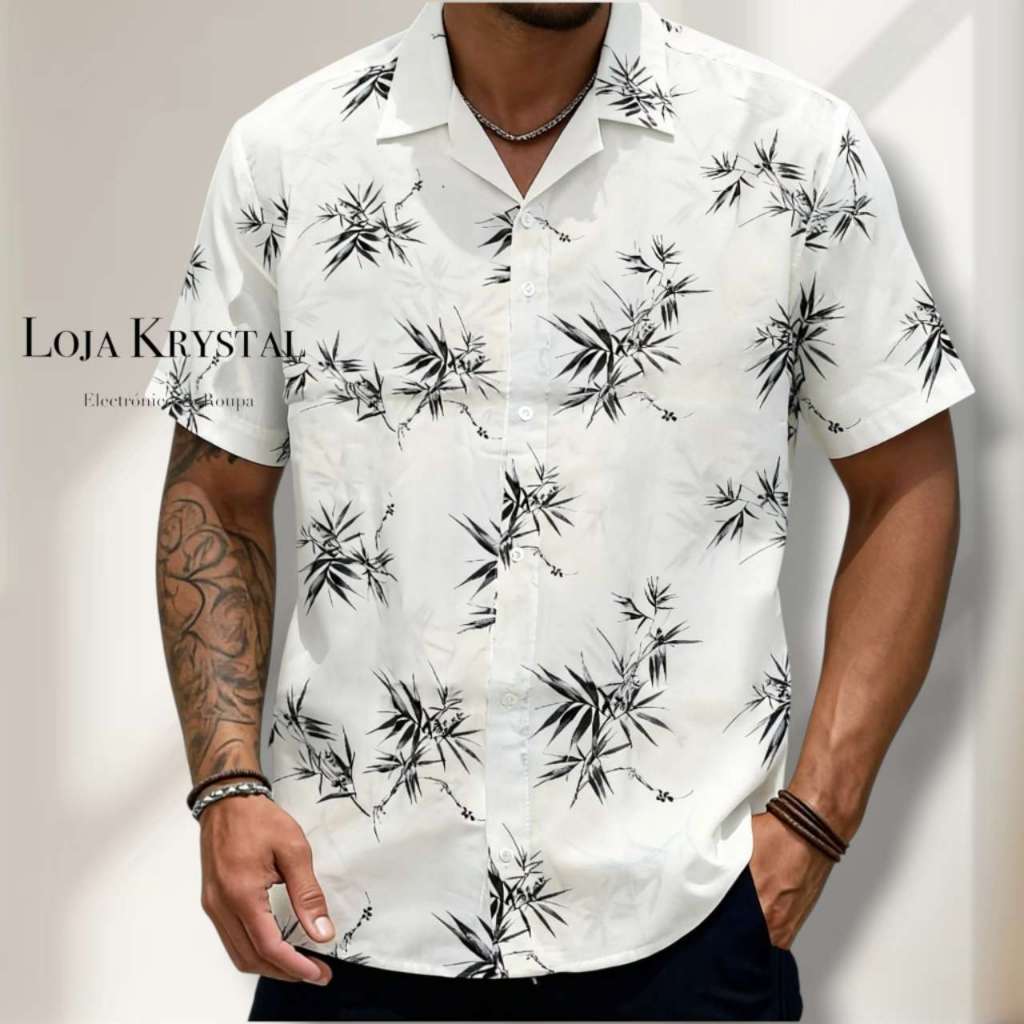 Floral Camisa Havaiana Praia Verão Masculino Manga Curta De Botão Tecido Viscose