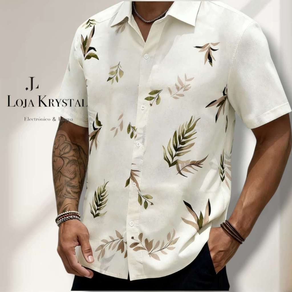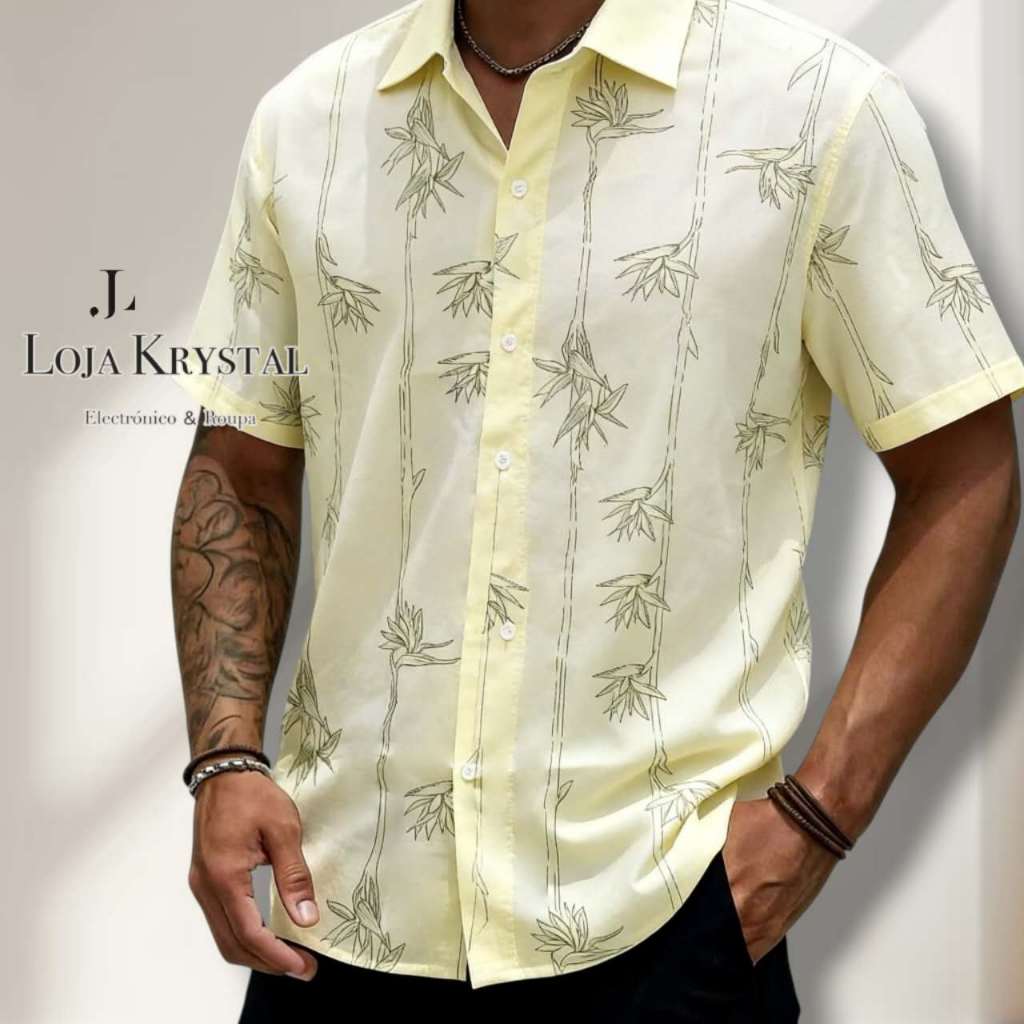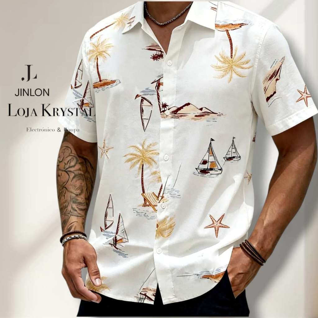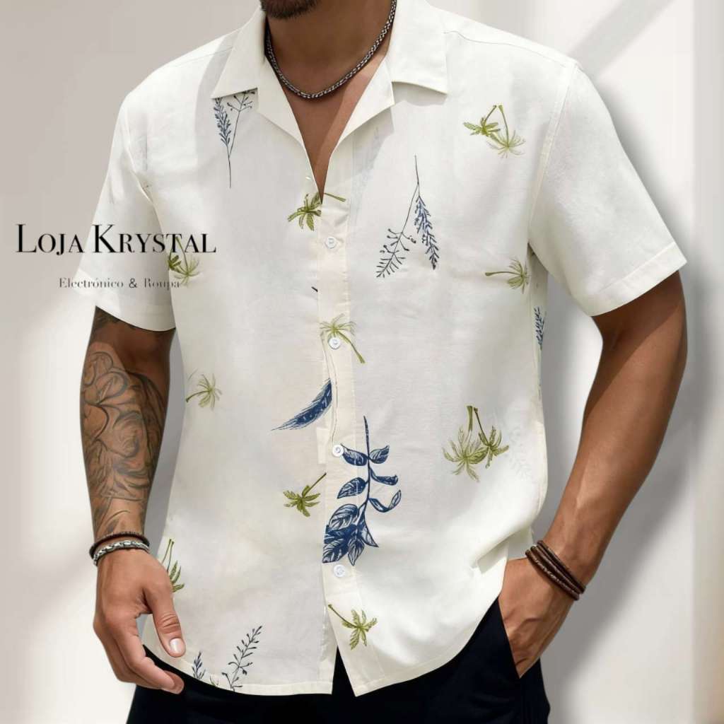 Floral Camisa Havaiana Praia Verão Masculino Manga Curta De Botão Tecido Viscose