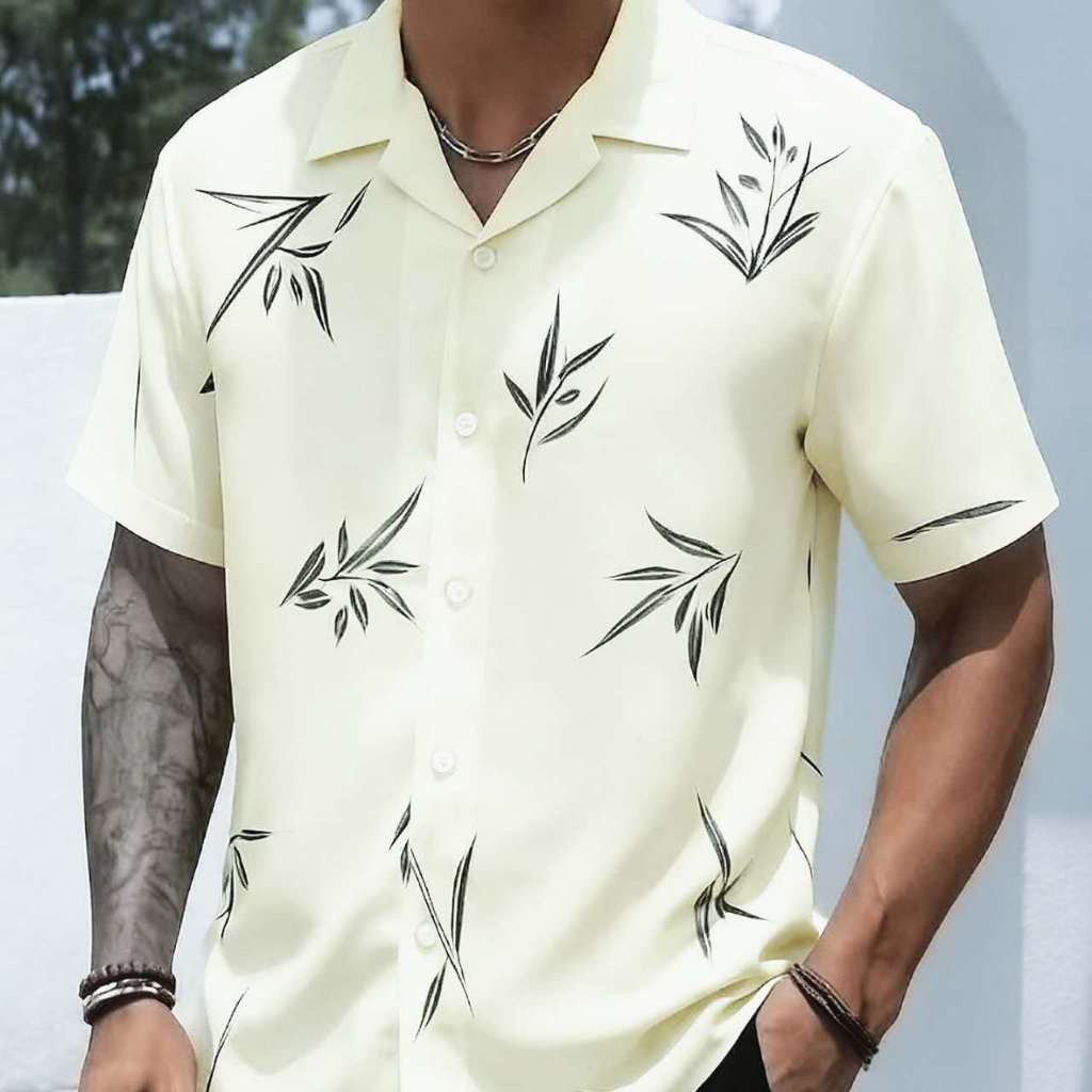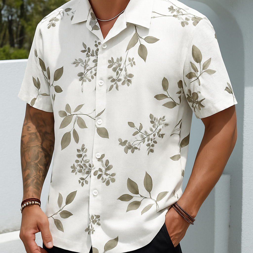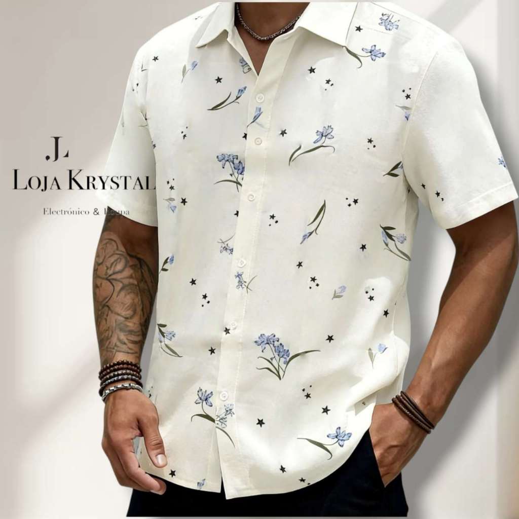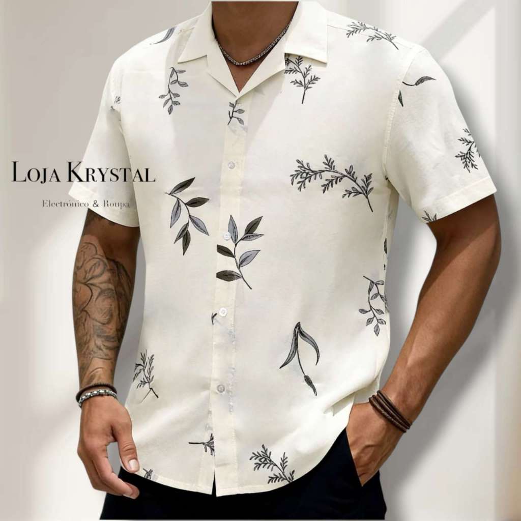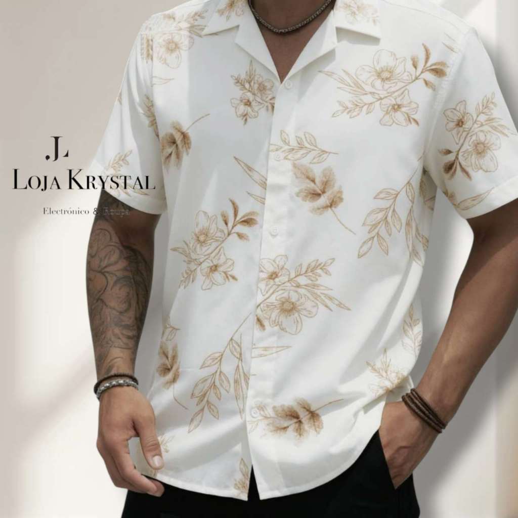 Floral Camisa Havaiana Praia Verão Masculino Manga Curta De Botão Tecido Viscose