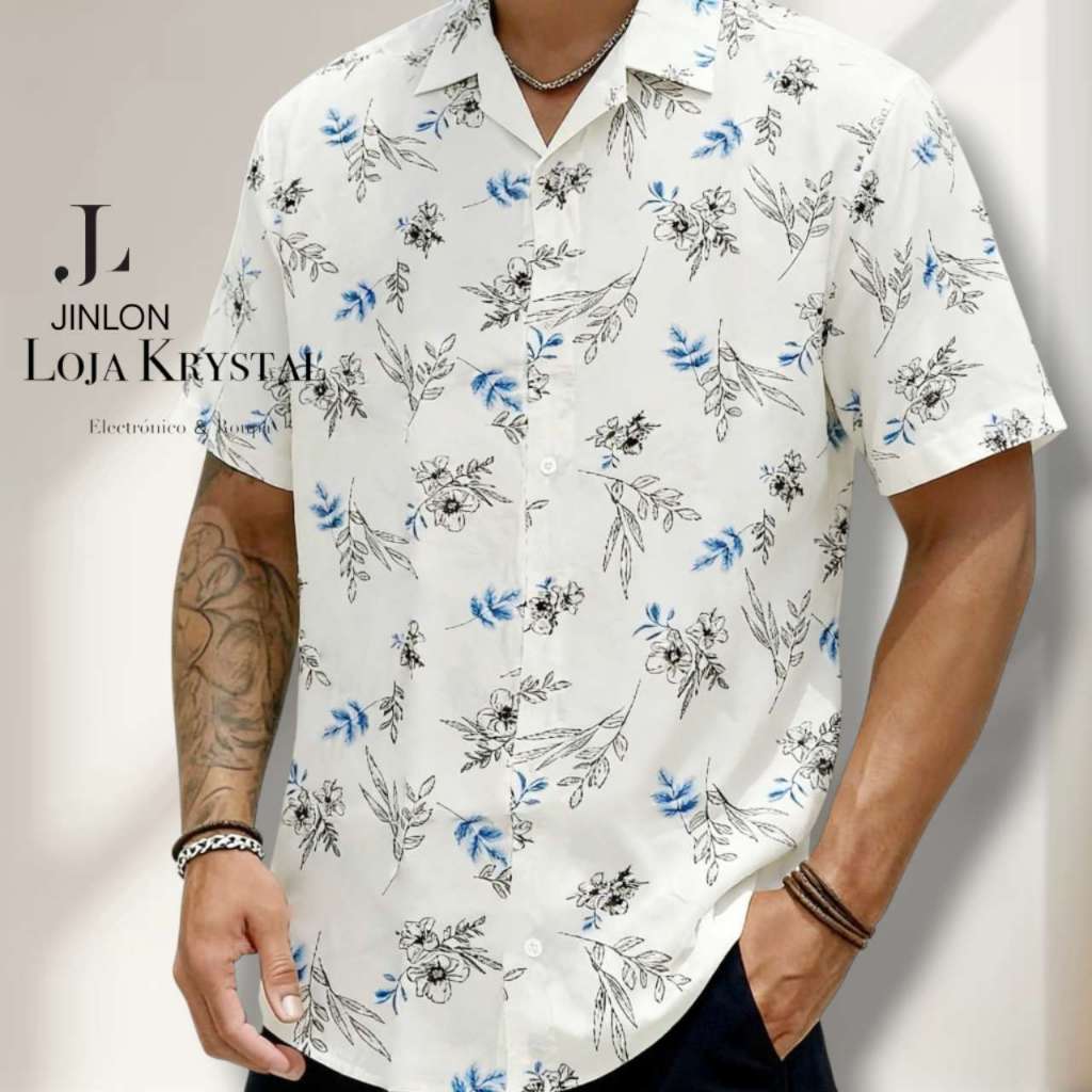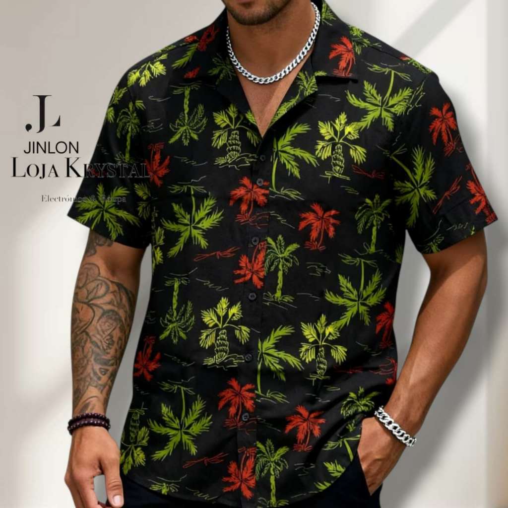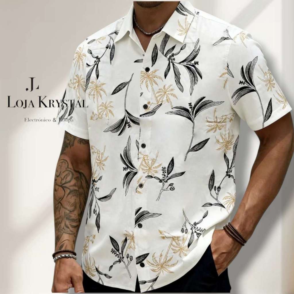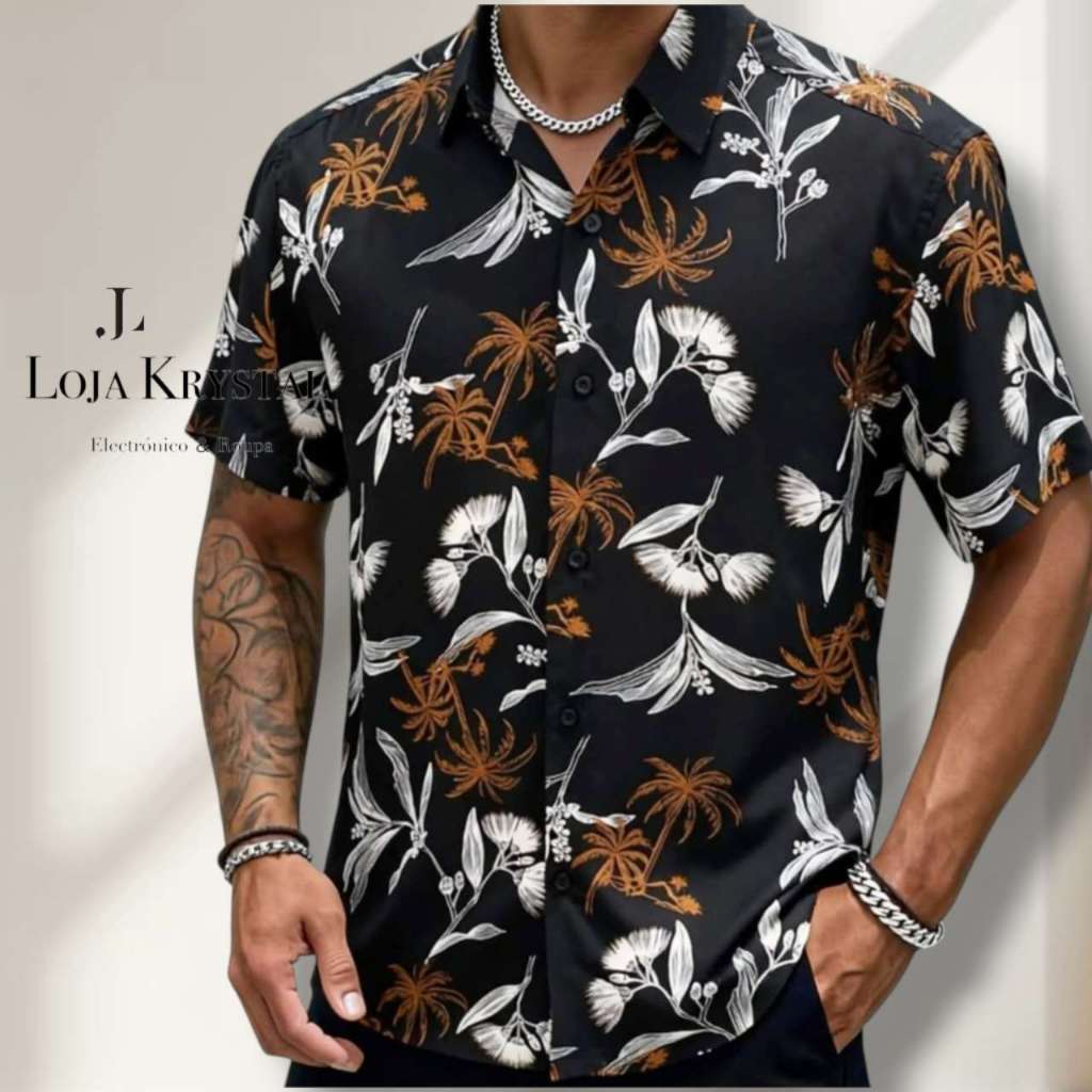 LOJA KRYSTAL floral camisa 24 havaiana praia verão masculino manga curta de botão tecido viscose