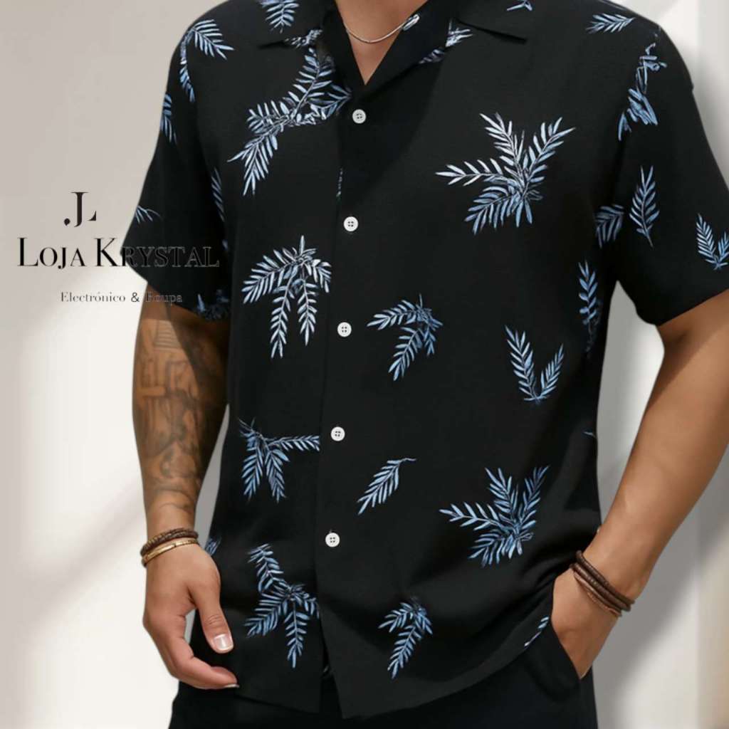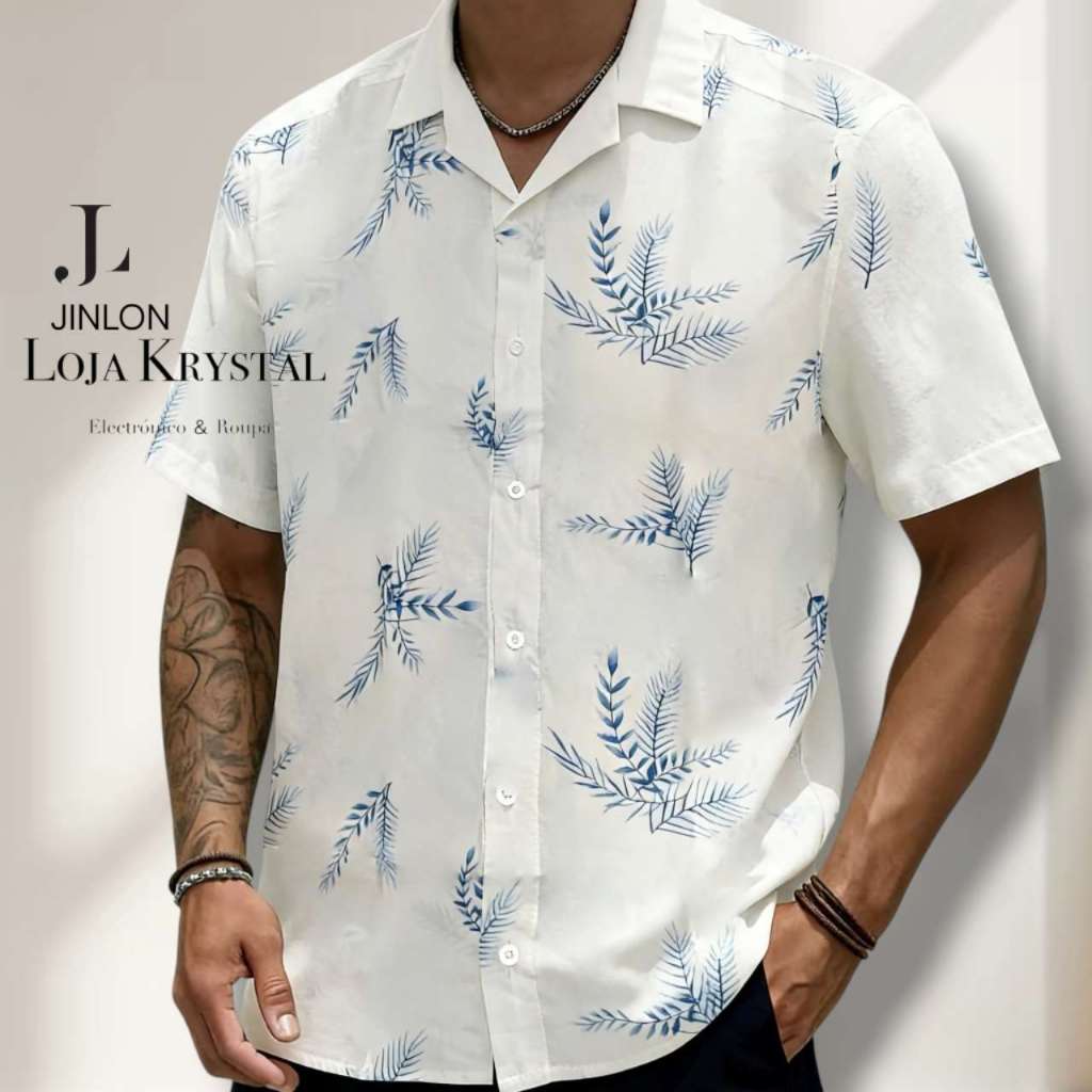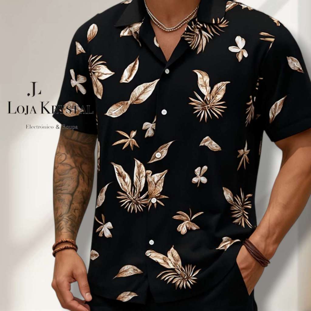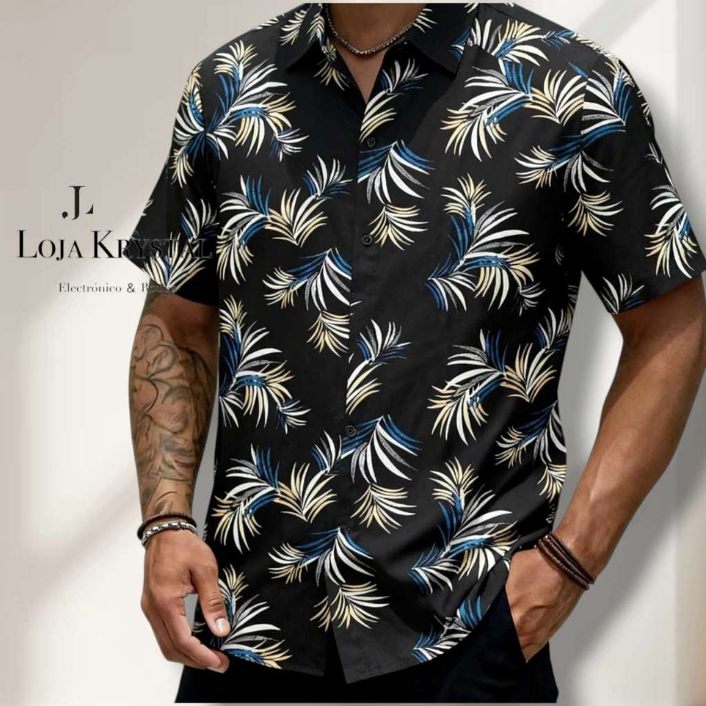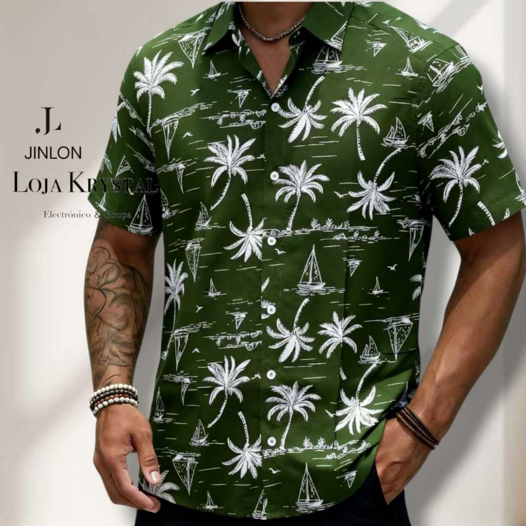 LOJA KRYSTAL floral camisa 24 havaiana praia verão masculino manga curta de botão tecido viscose