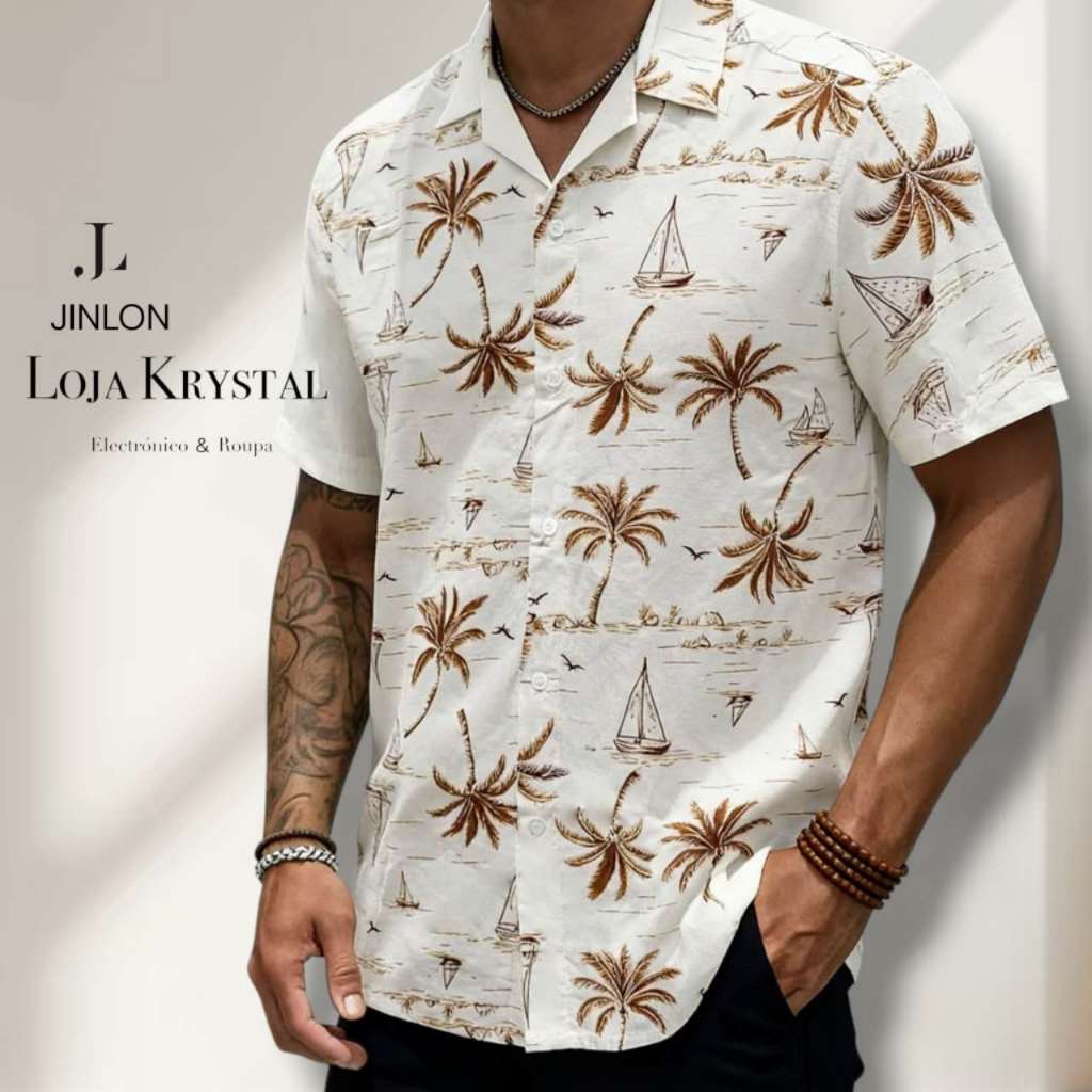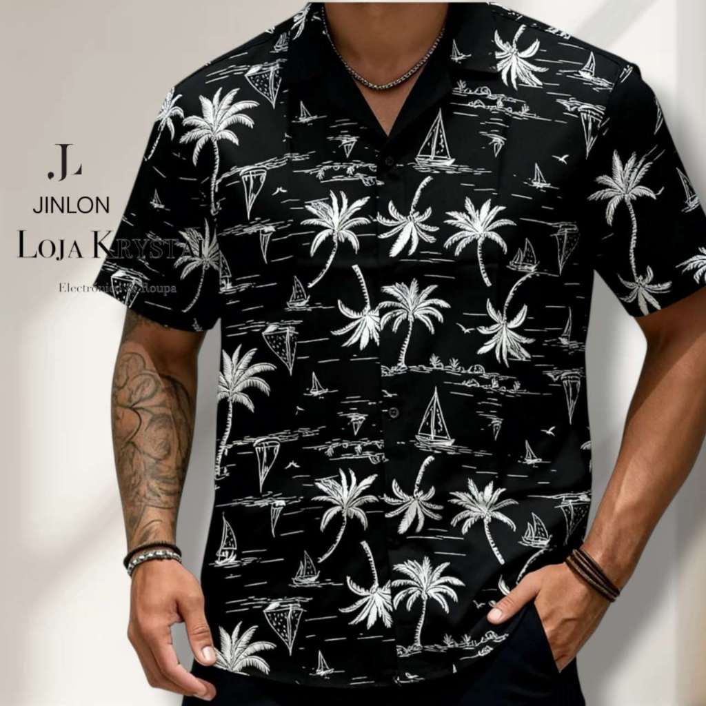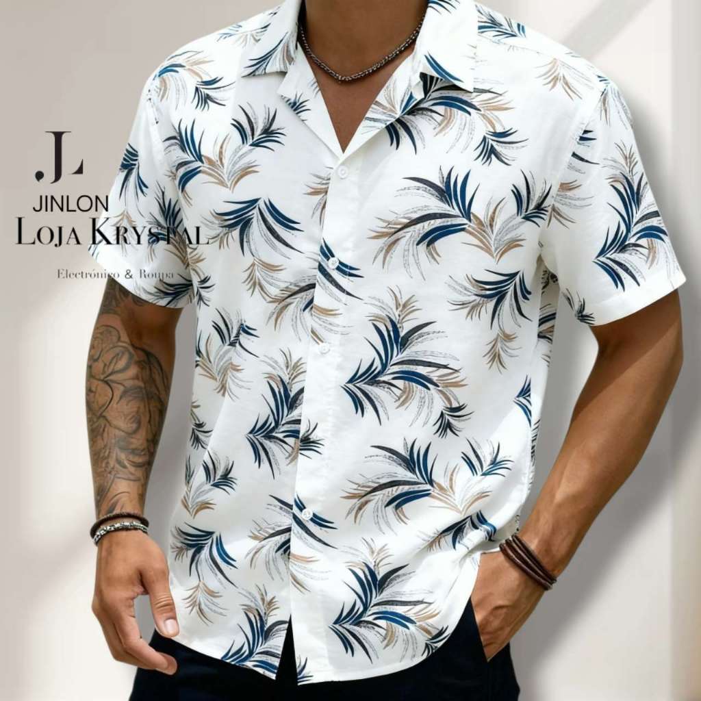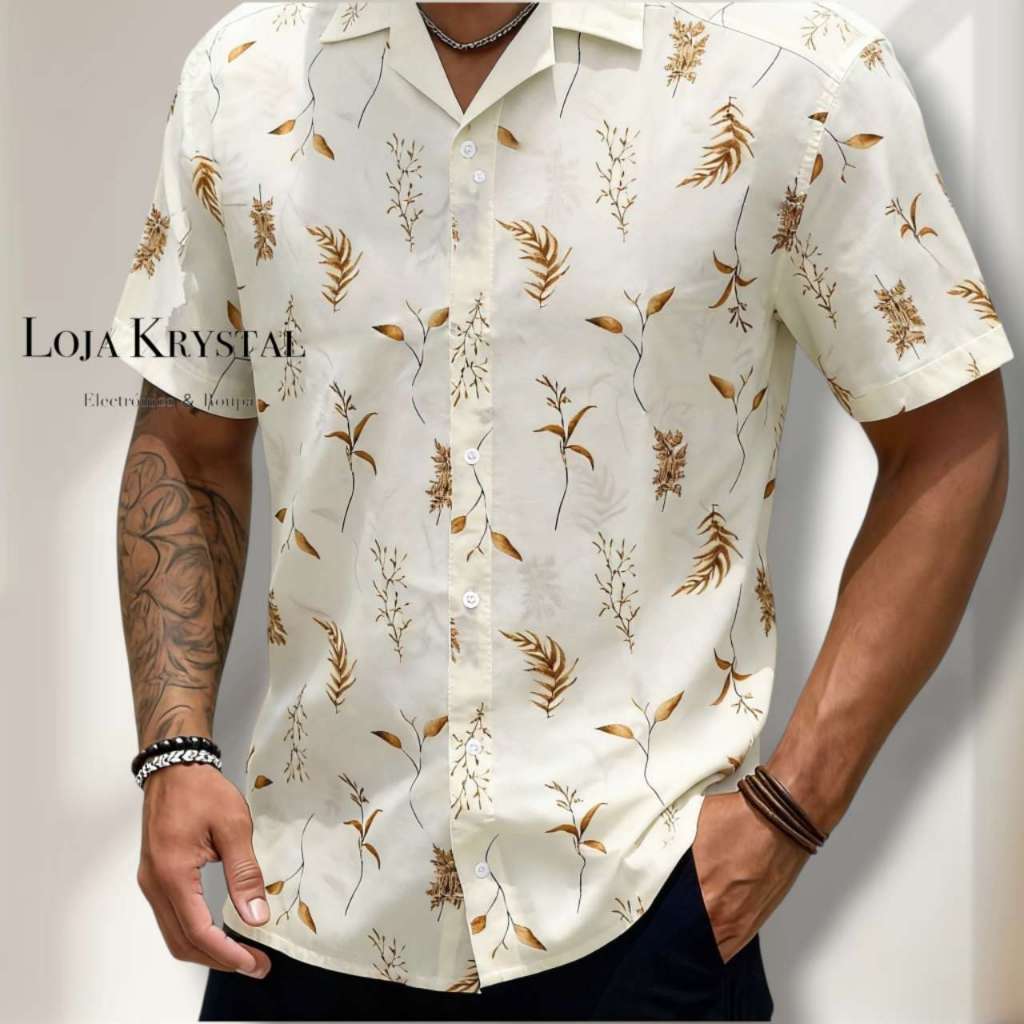 LOJA KRYSTAL floral camisa 24 havaiana praia verão masculino manga curta de botão tecido viscose