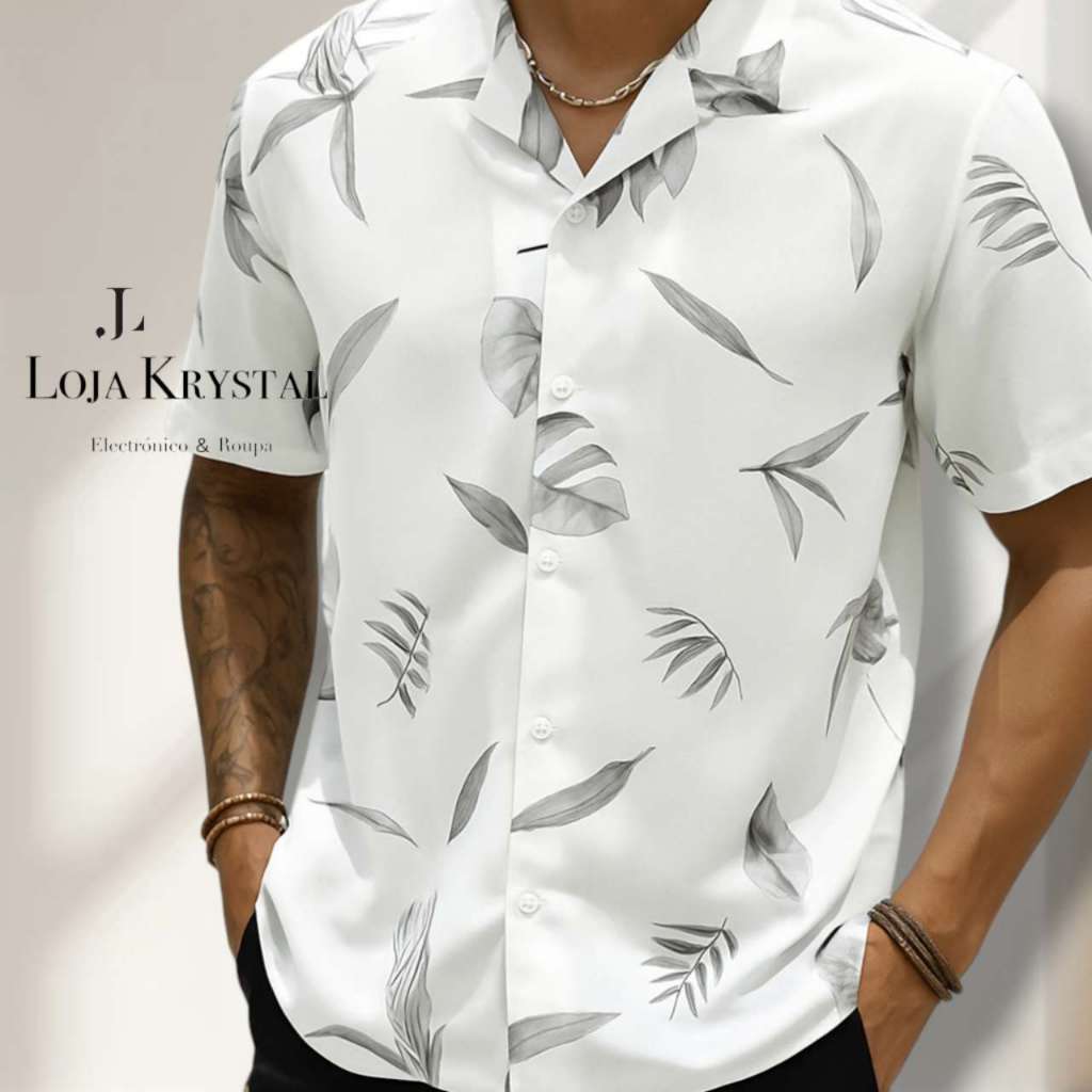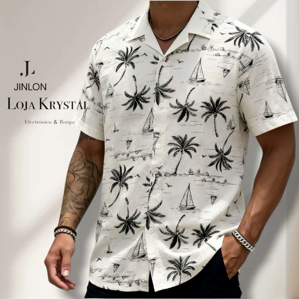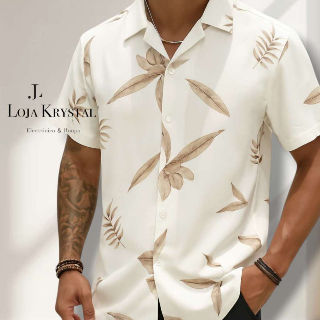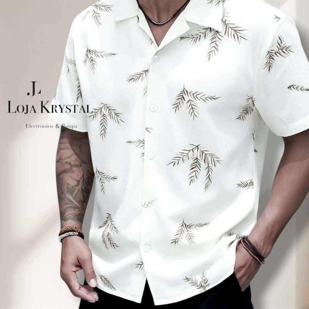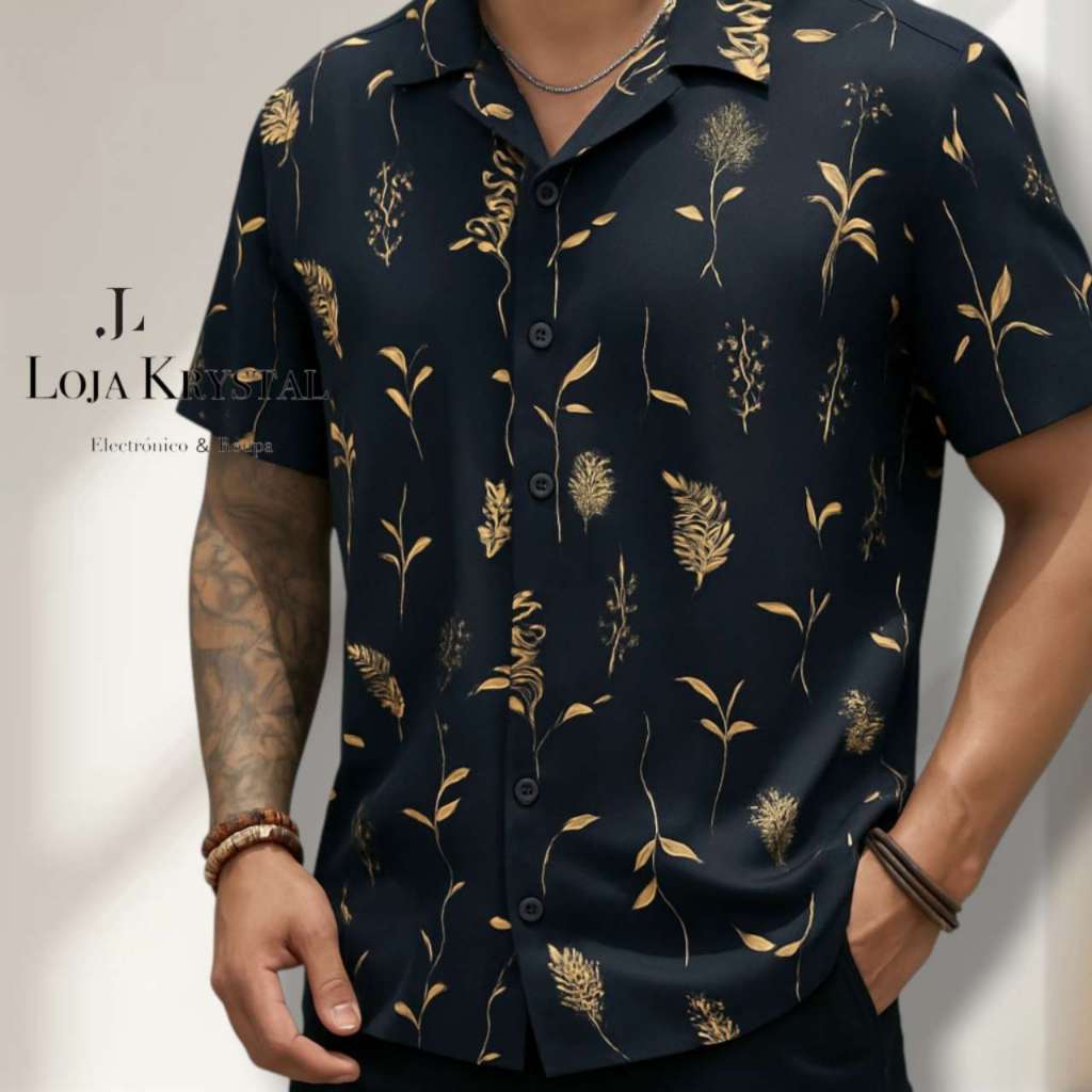 LOJA KRYSTAL floral camisa 24 havaiana praia verão masculino manga curta de botão tecido viscose